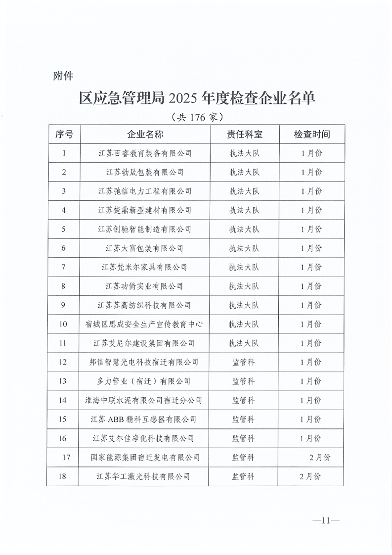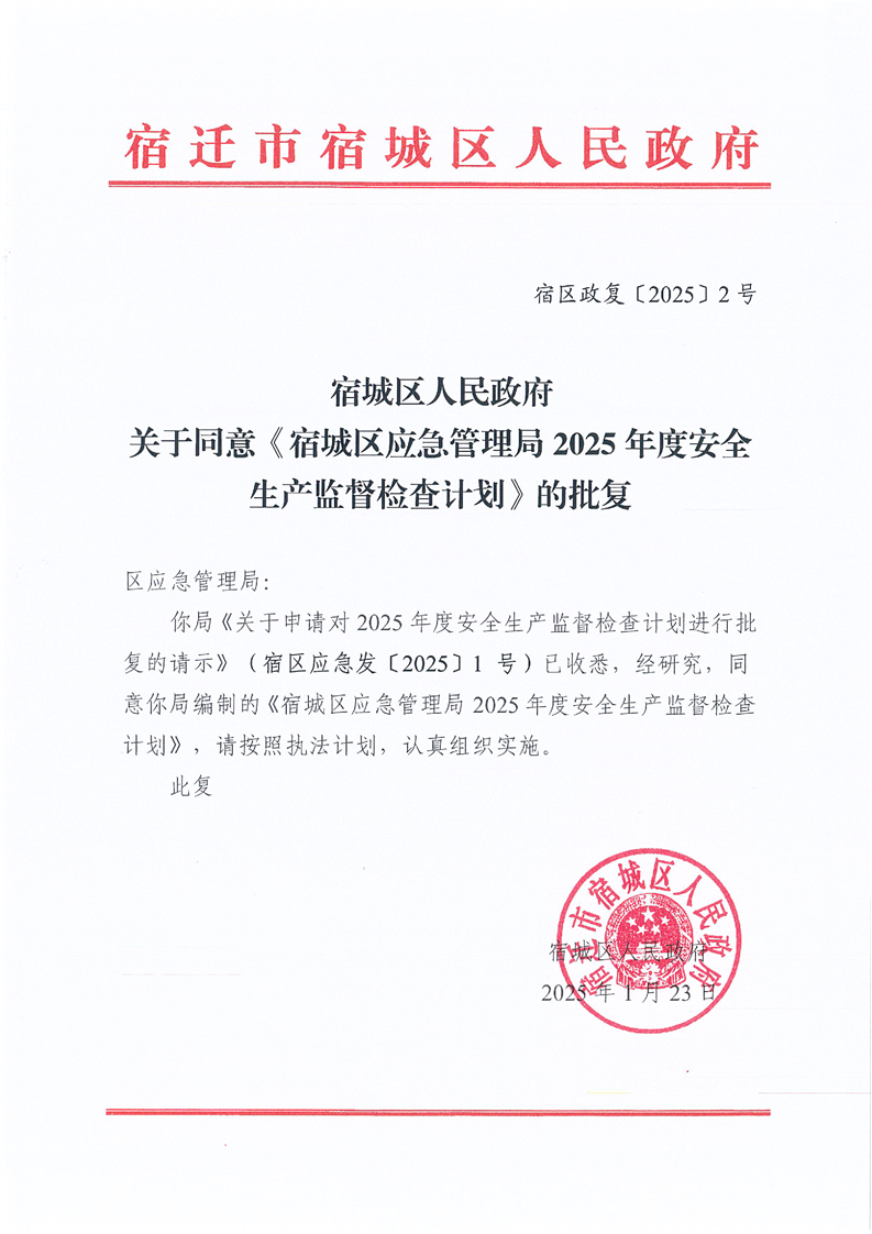 宿城區應急管理局2025年度安全生產監督檢查計劃