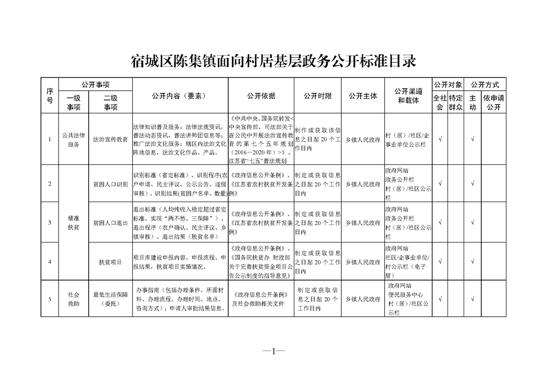 宿城區(qū)陳集鎮(zhèn)面向村居基層政務(wù)公開標(biāo)準(zhǔn)目錄(2022版)