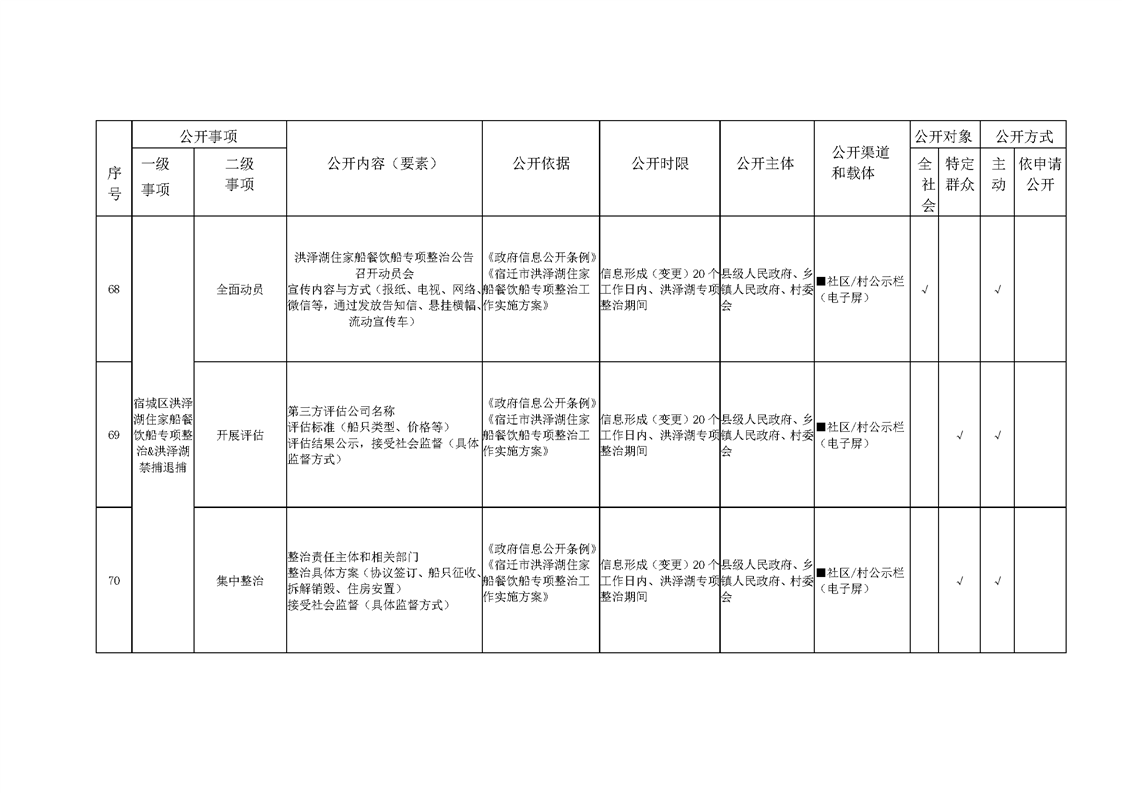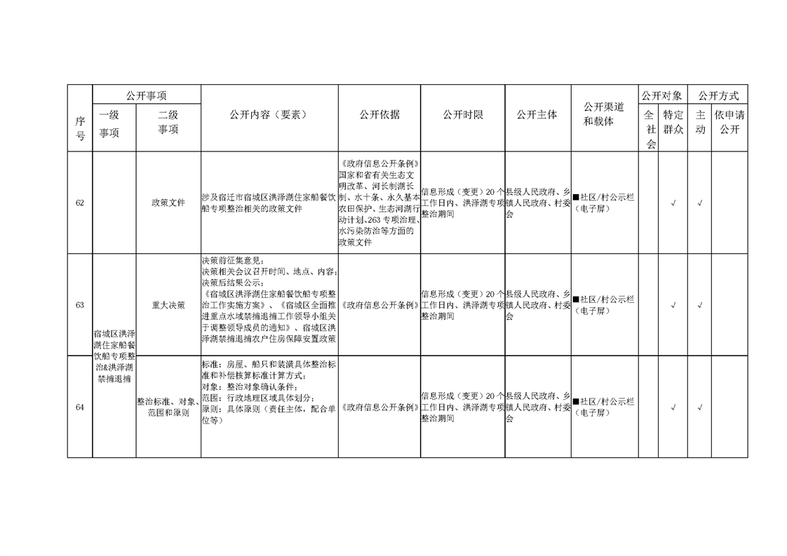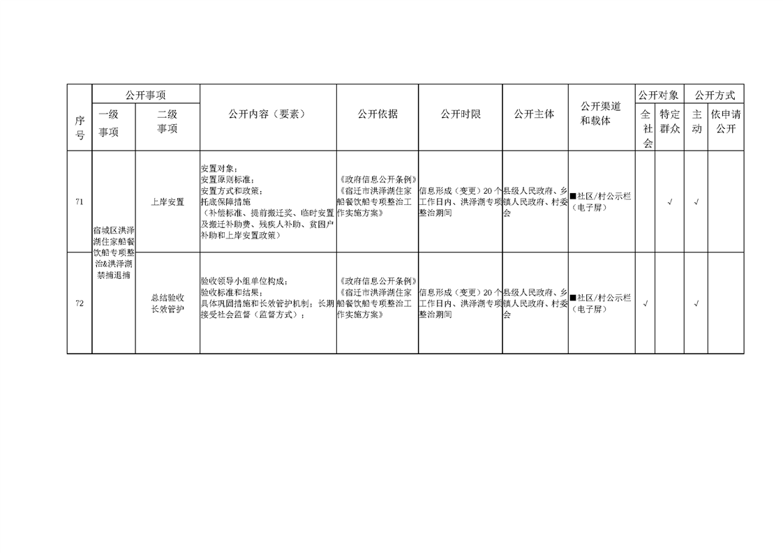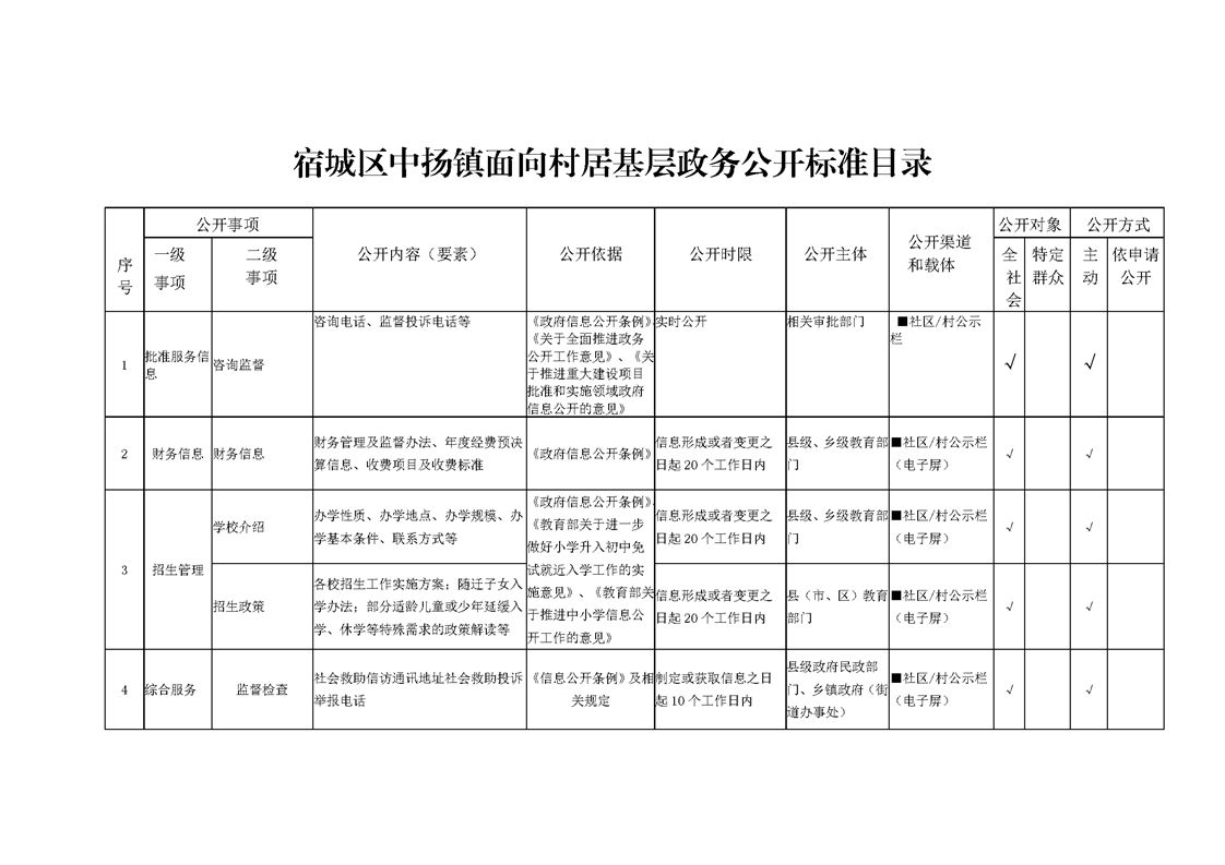宿城區中揚鎮面向村居基層政務公開標準目錄(2022版)