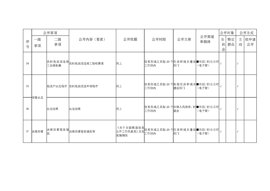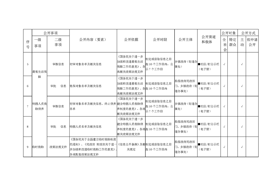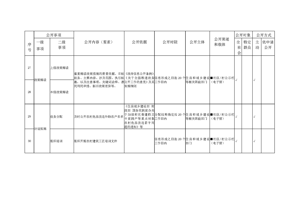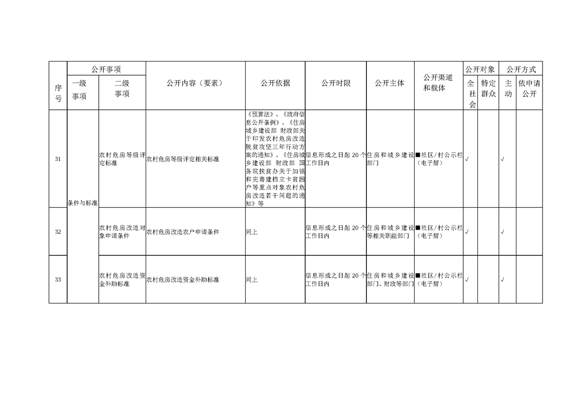 宿城區中揚鎮面向村居基層政務公開標準目錄(2022版)