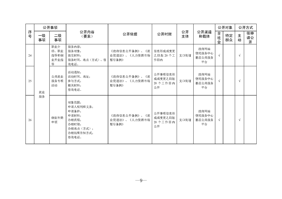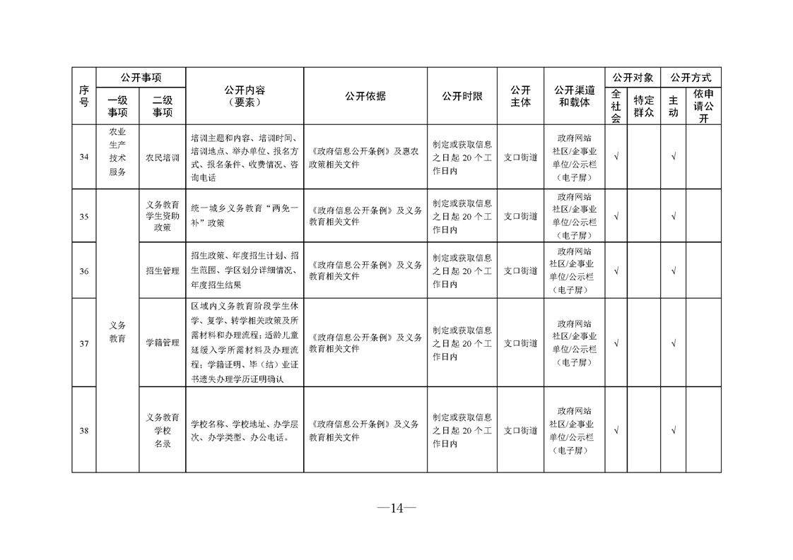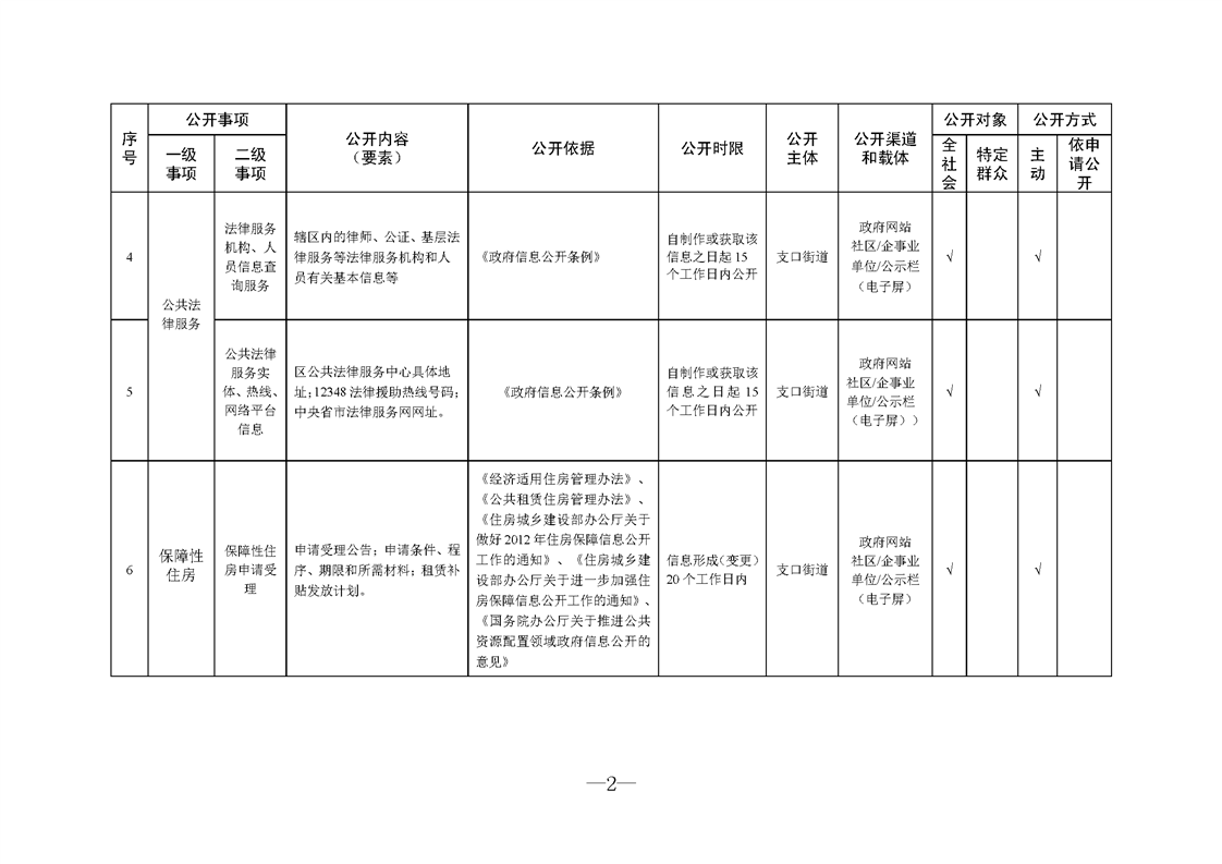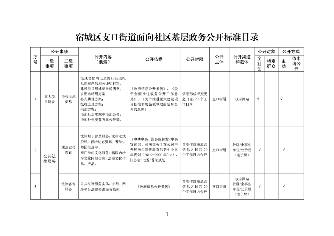 宿城區支口街道面向社區基層政務公開標準目錄(2022版)