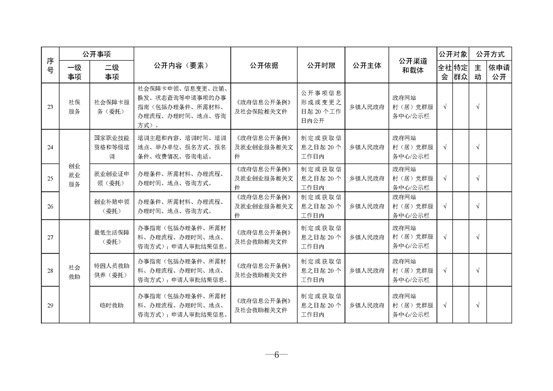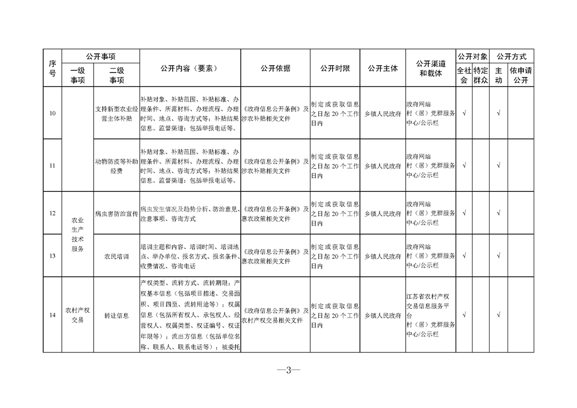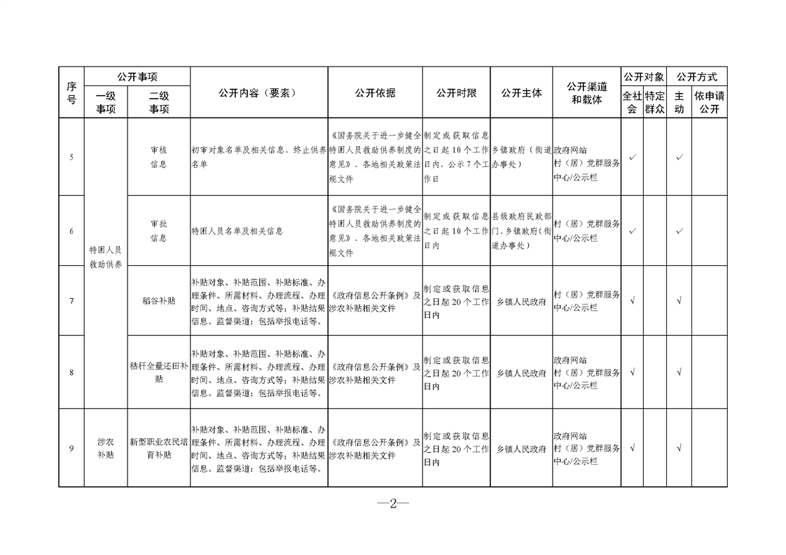 面向村居政務公開標準目錄