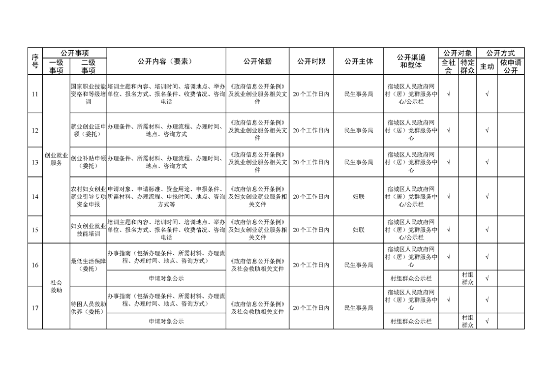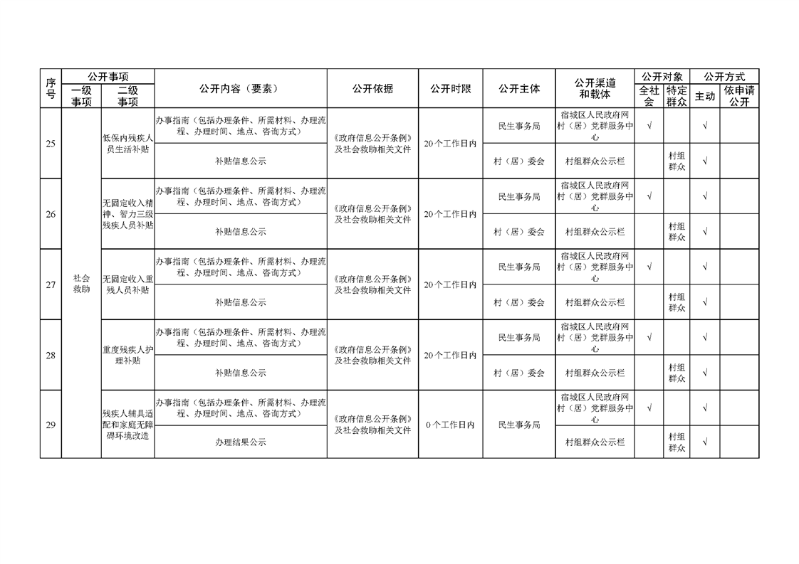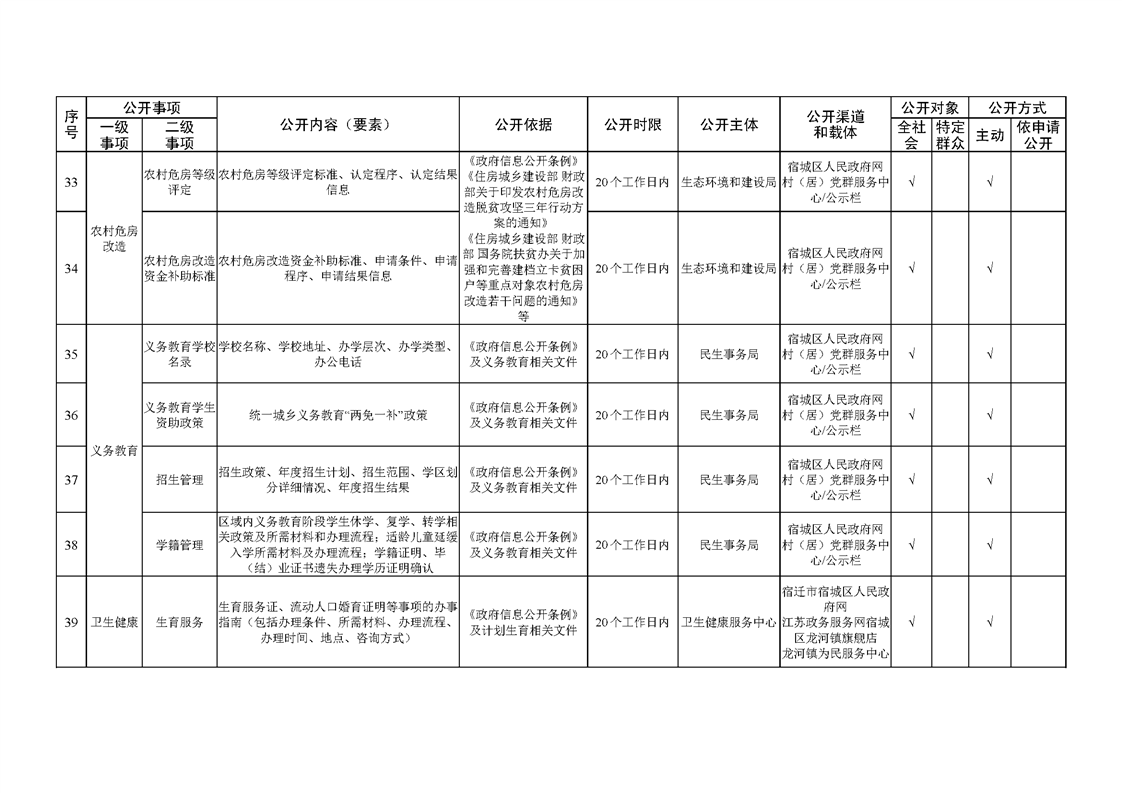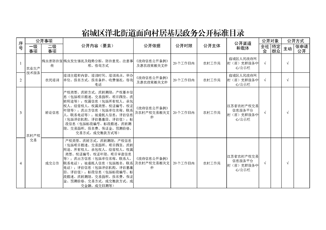 宿城區(qū)洋北街道面向村居基層政務公開標準目錄(2022版)