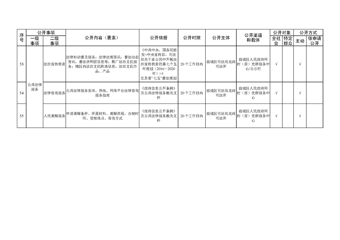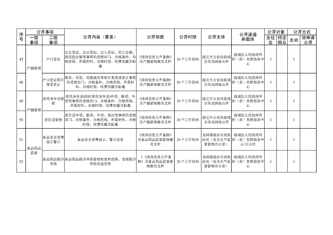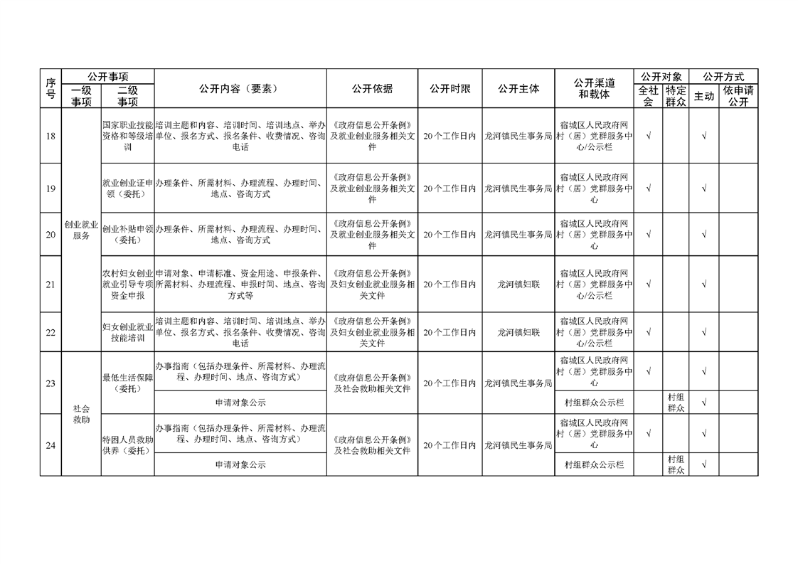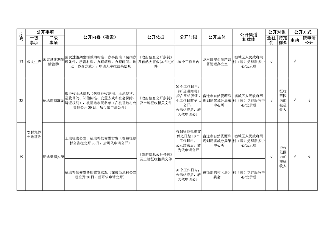 宿城區龍河鎮面向村居基層政務公開標準目錄(2022版)