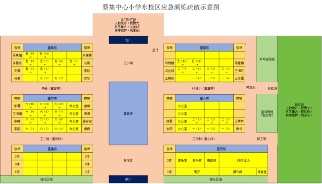 各班進入疏散地點迅速核實各班人數,由班長到楊勇(小)主任處上報人數。楊勇(小)、楊勇(大)、主任負責維持操場學生秩序,邢印良老師負責全程拍照攝像。