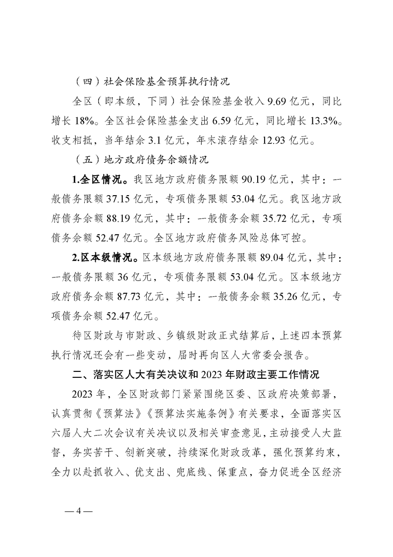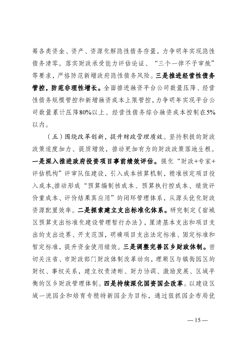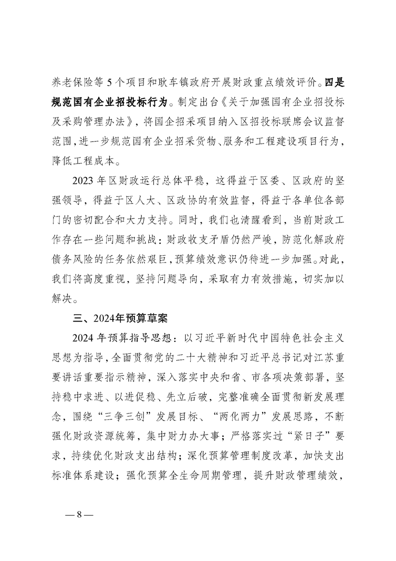 關(guān)于宿城區(qū)2023年預(yù)算執(zhí)行情況和2024年預(yù)算草案的報告