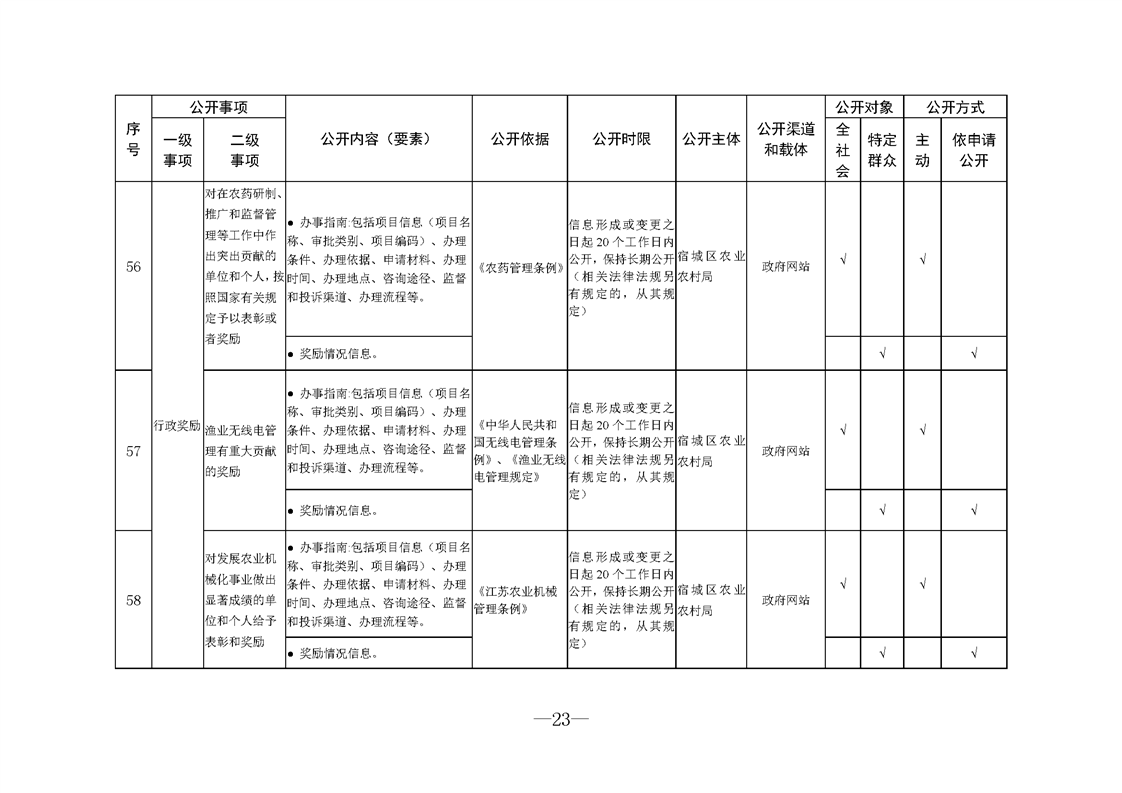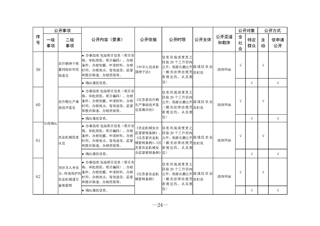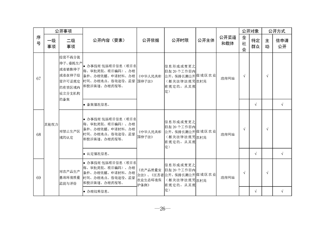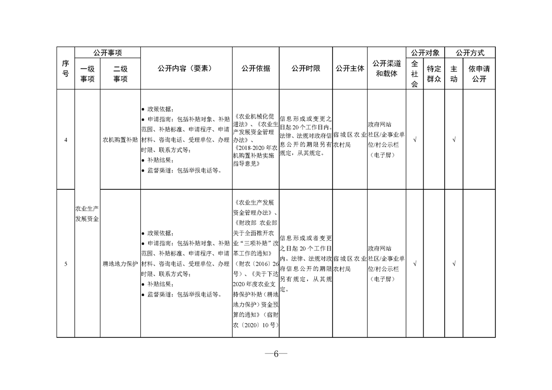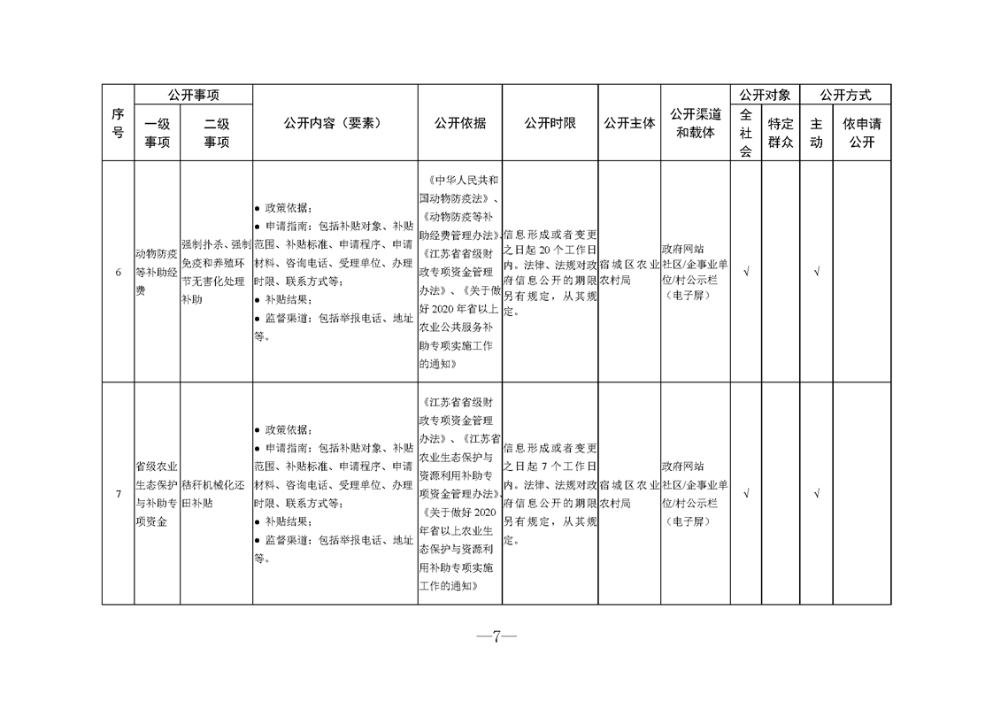 宿城區農業農村局基層政務公開標準目錄2024版(鄉村振興領域)