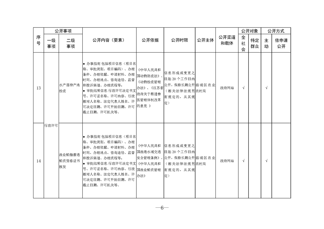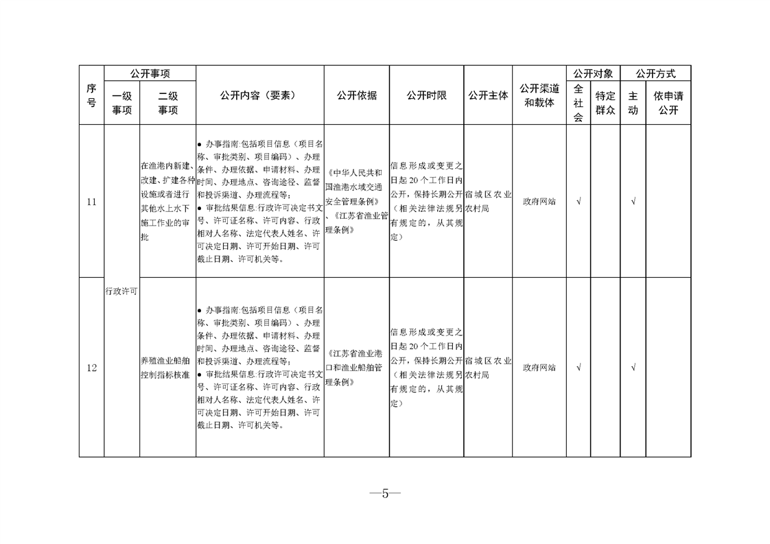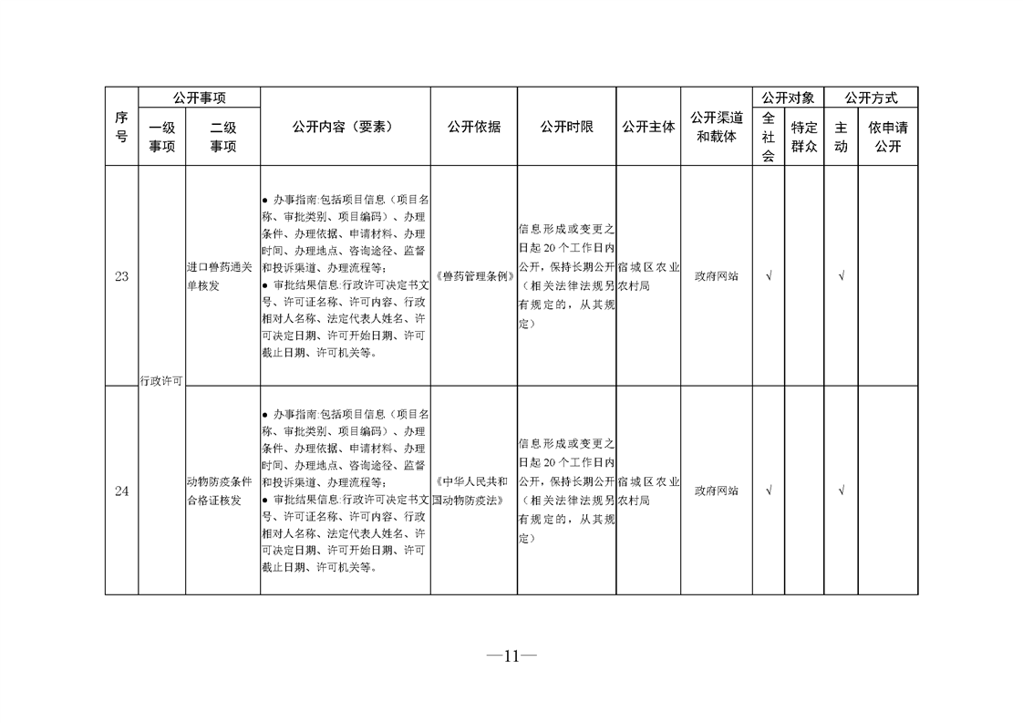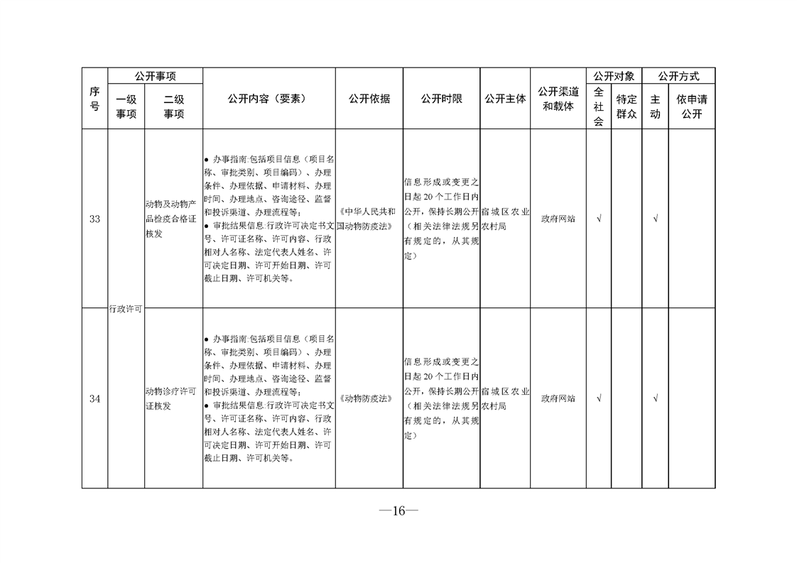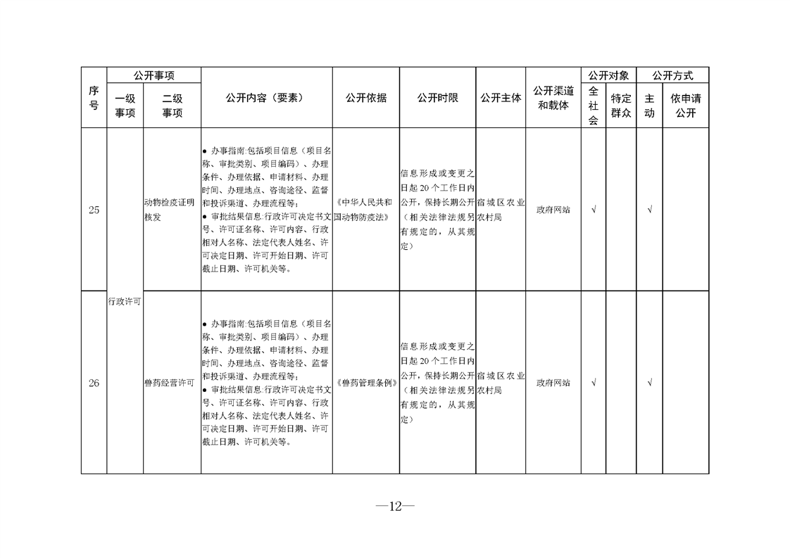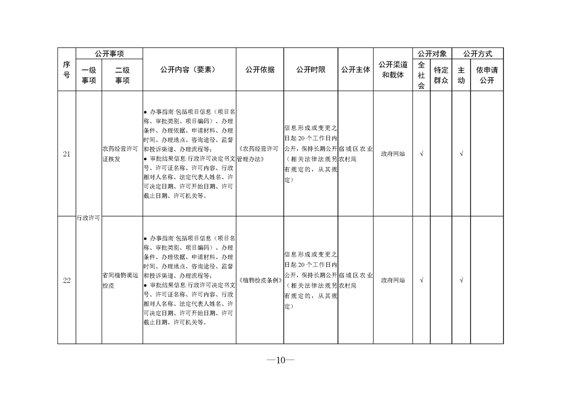 宿城區農業農村局基層政務公開標準目錄2024版(鄉村振興領域)