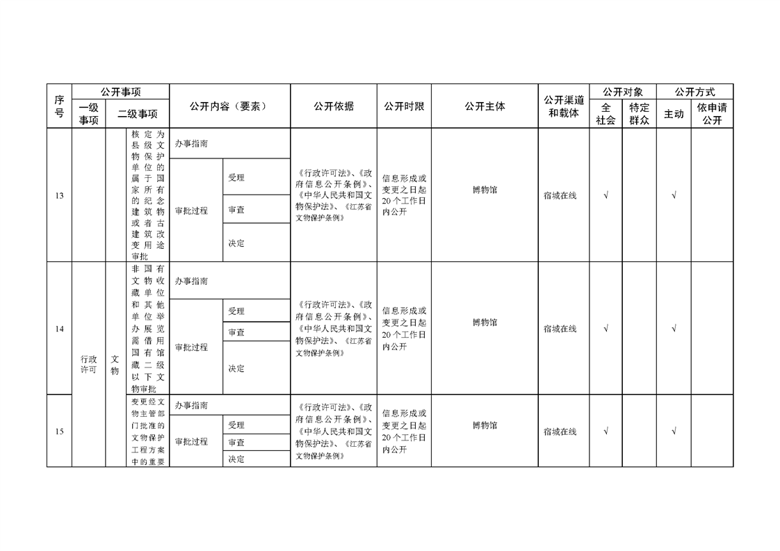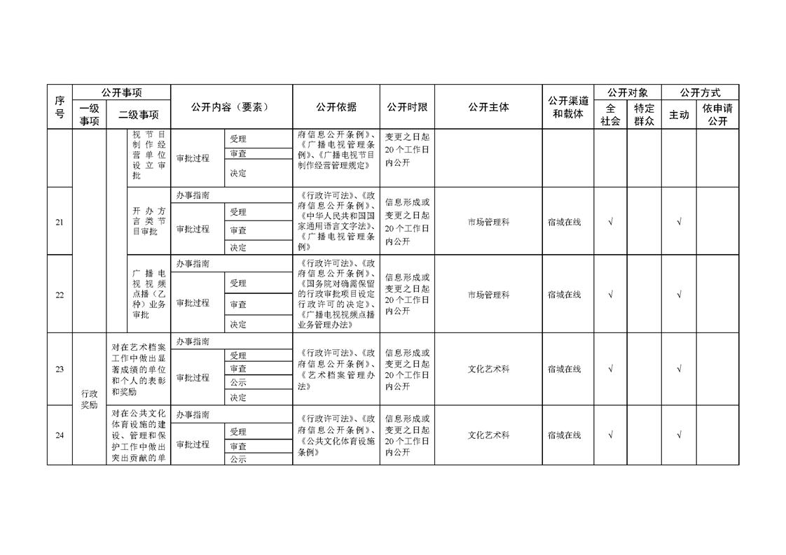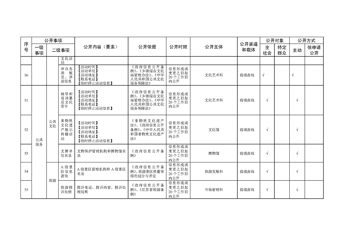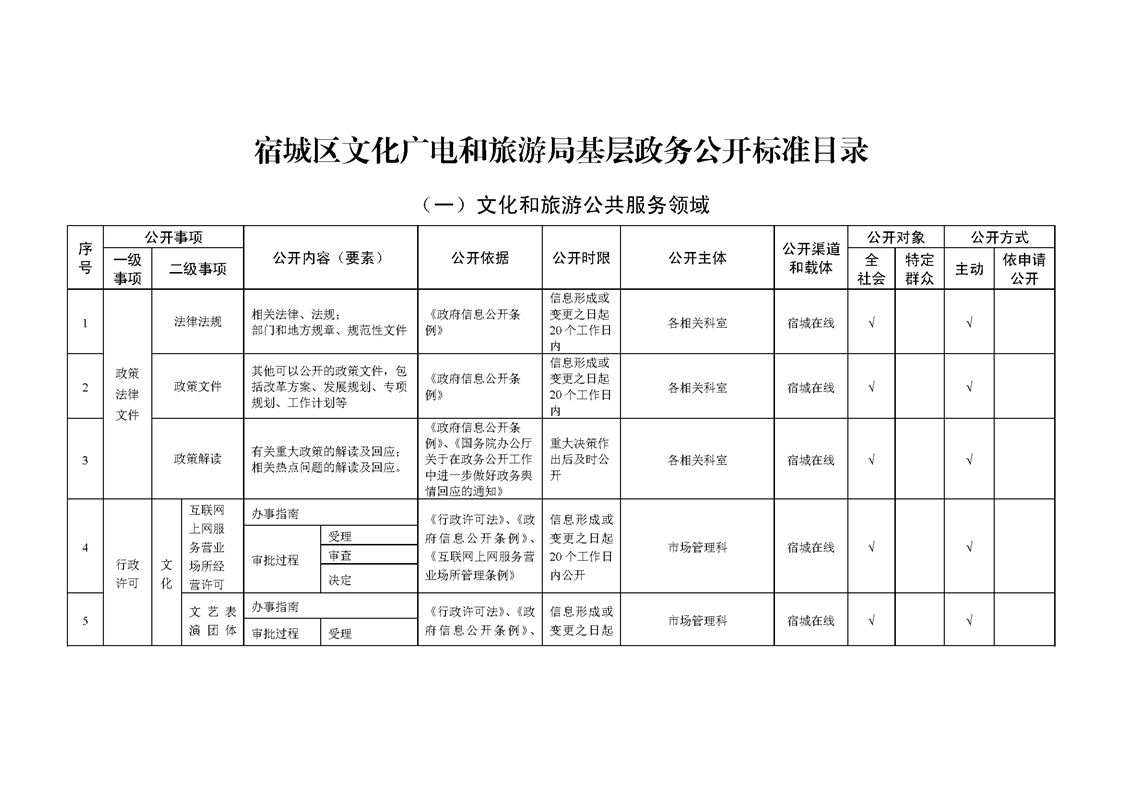 宿城區文化廣電和旅游局基層政務公開標準目錄2024版(公共文化服務領域)
