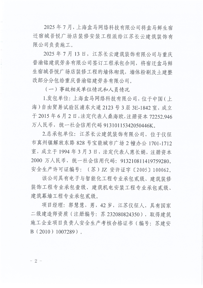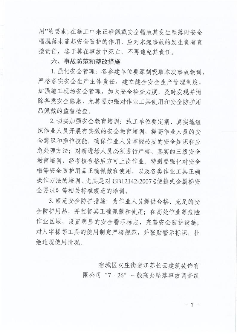 宿城區(qū)雙莊街道江蘇長云建筑裝飾有限公司“7·26”一般高處墜落事故調(diào)查報告