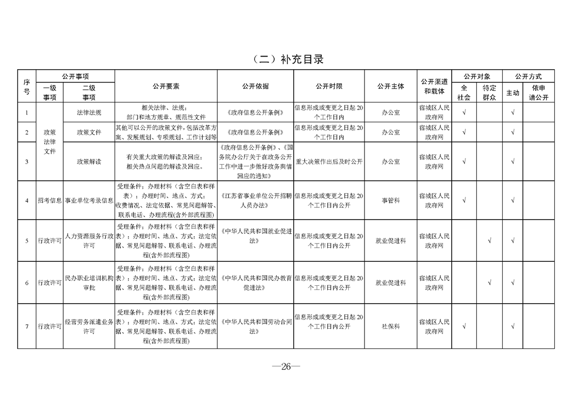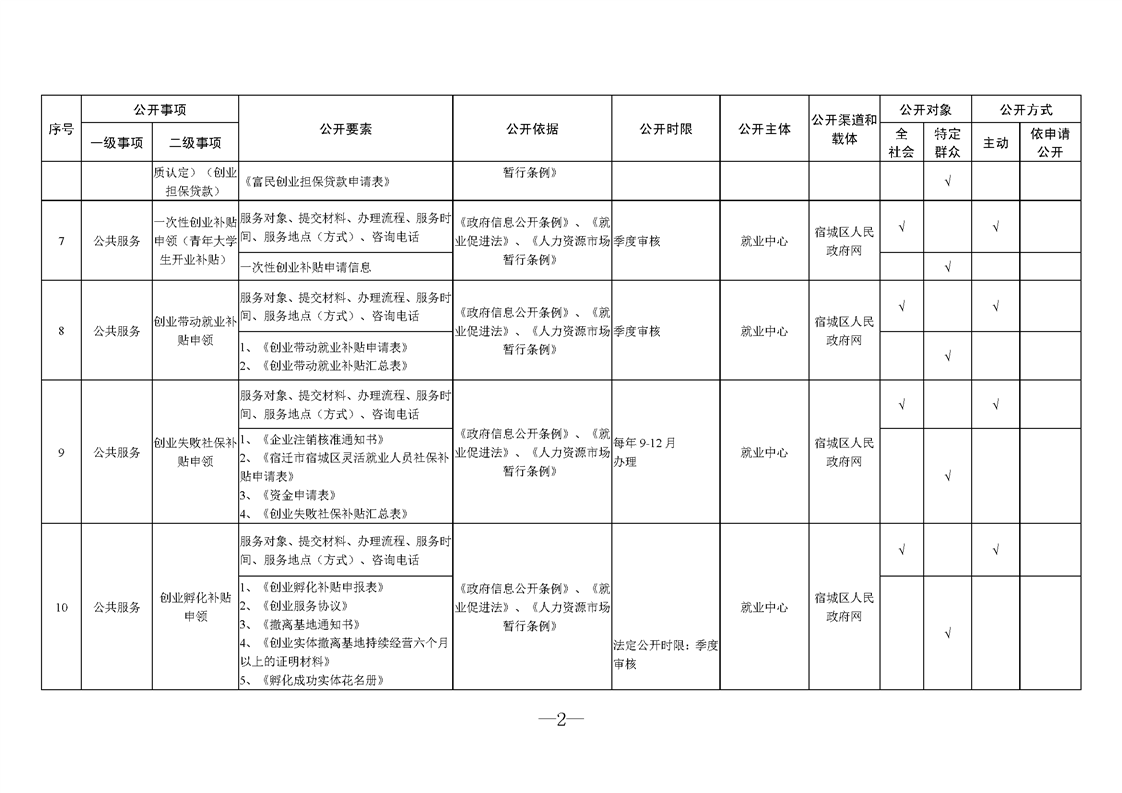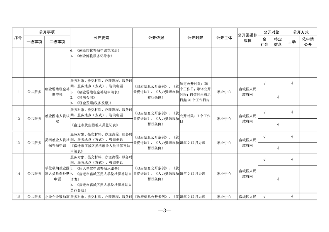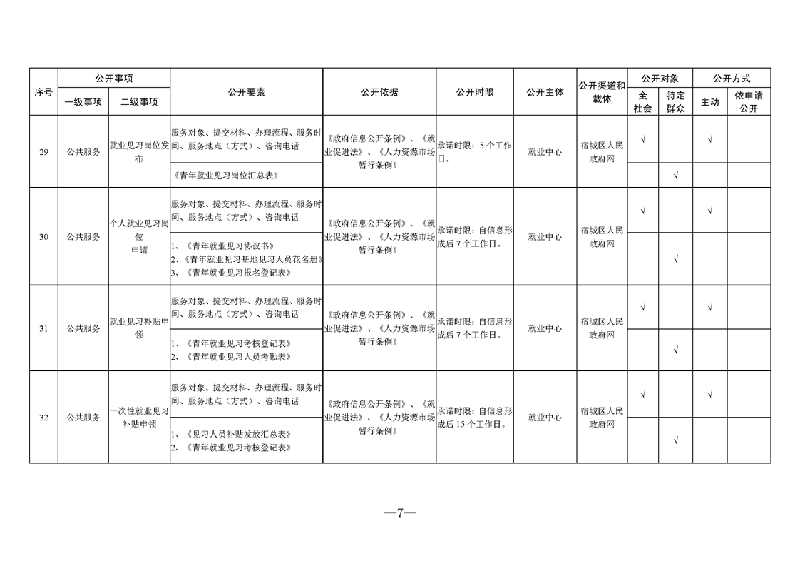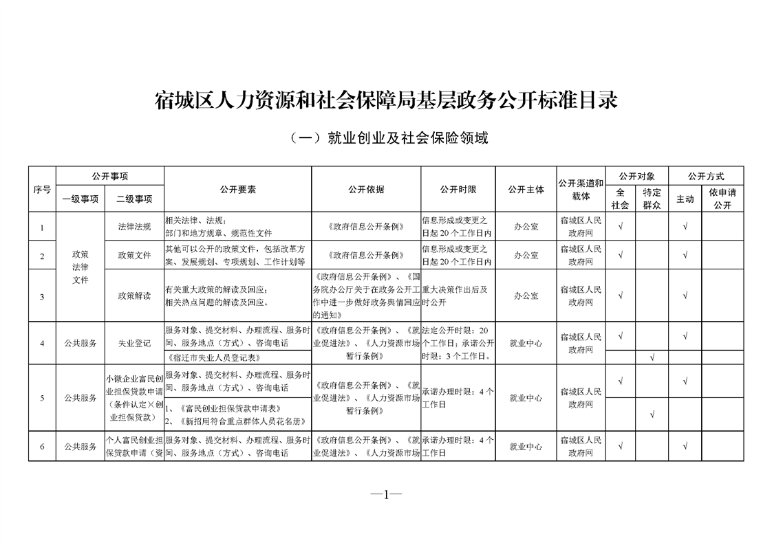 宿城區人力資源和社會保障局基層政務公開標準目錄2025版(就業領域)