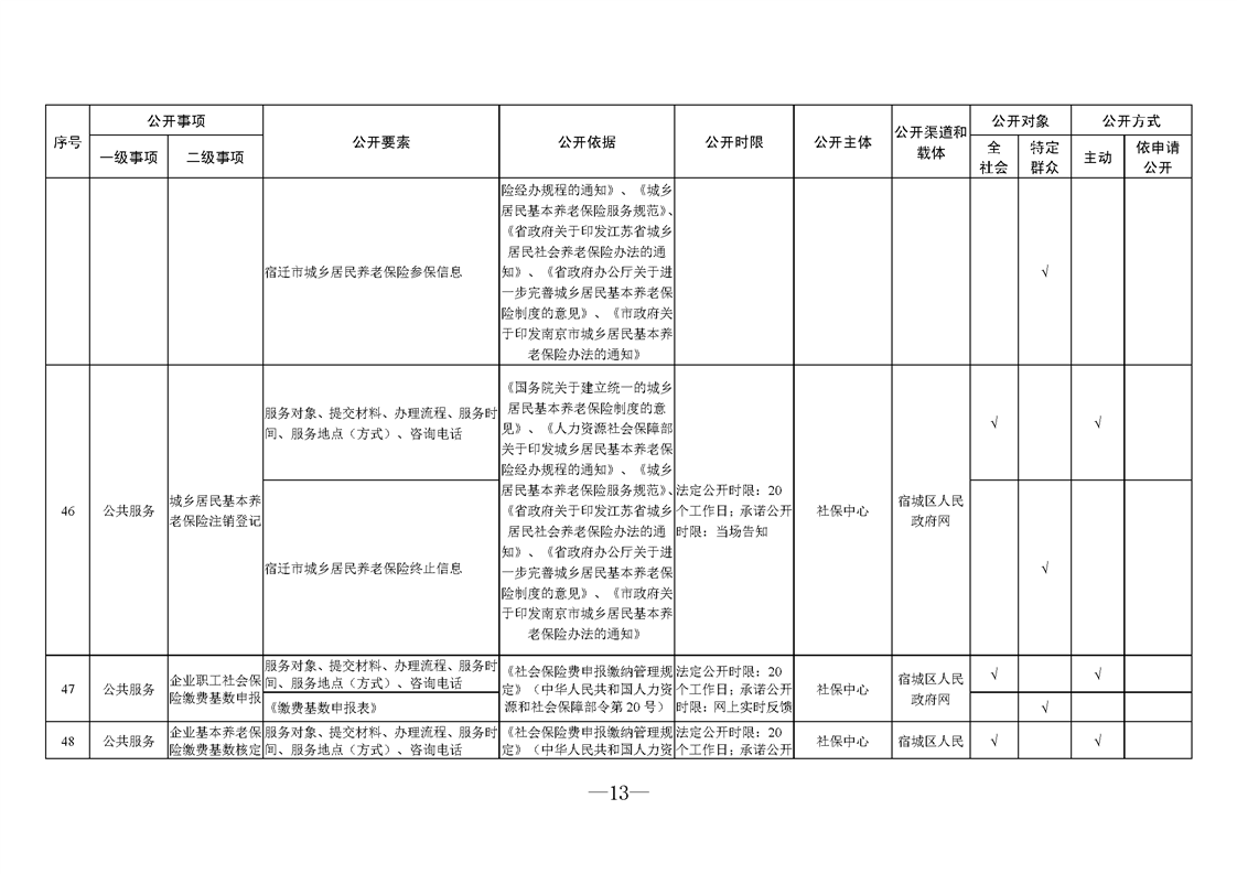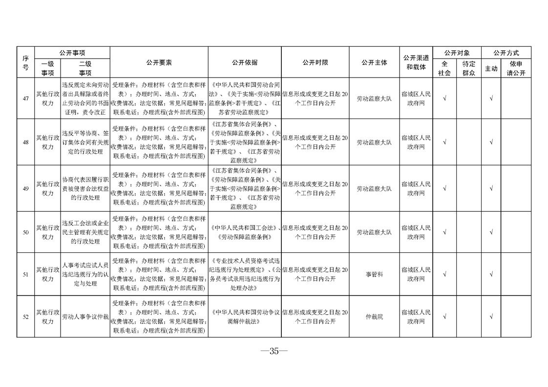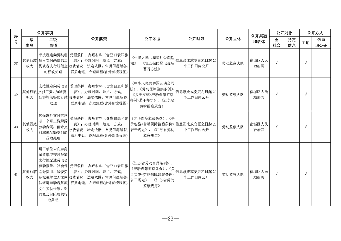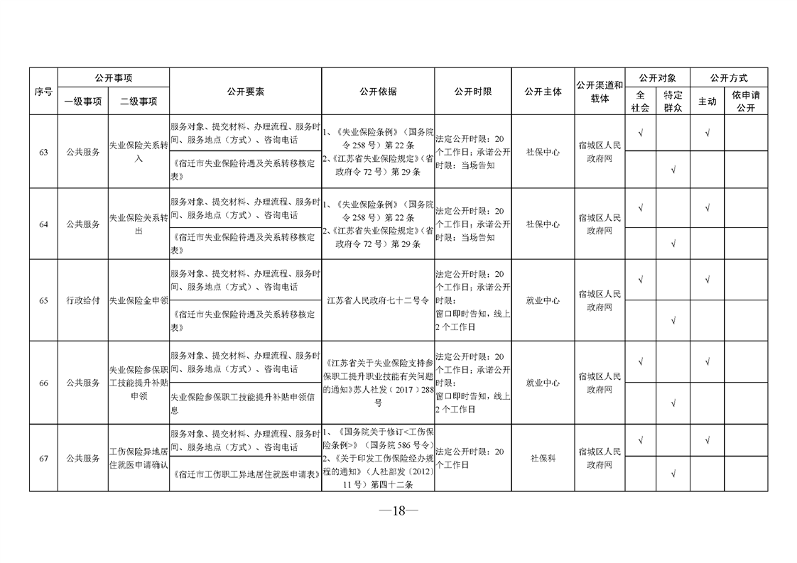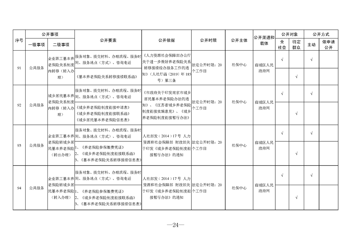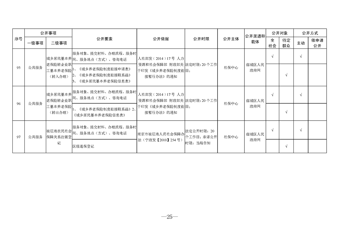 宿城區人力資源和社會保障局基層政務公開標準目錄2025版(就業領域)
