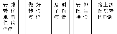 10、為轉診患者在就診流程上提供一定的方便,患者持轉診單無需門診掛號,由門診醫生初步診斷后,開具住院辦理住院手續。對轉入的急診患者,由急診科出診后,與住院科室聯系。