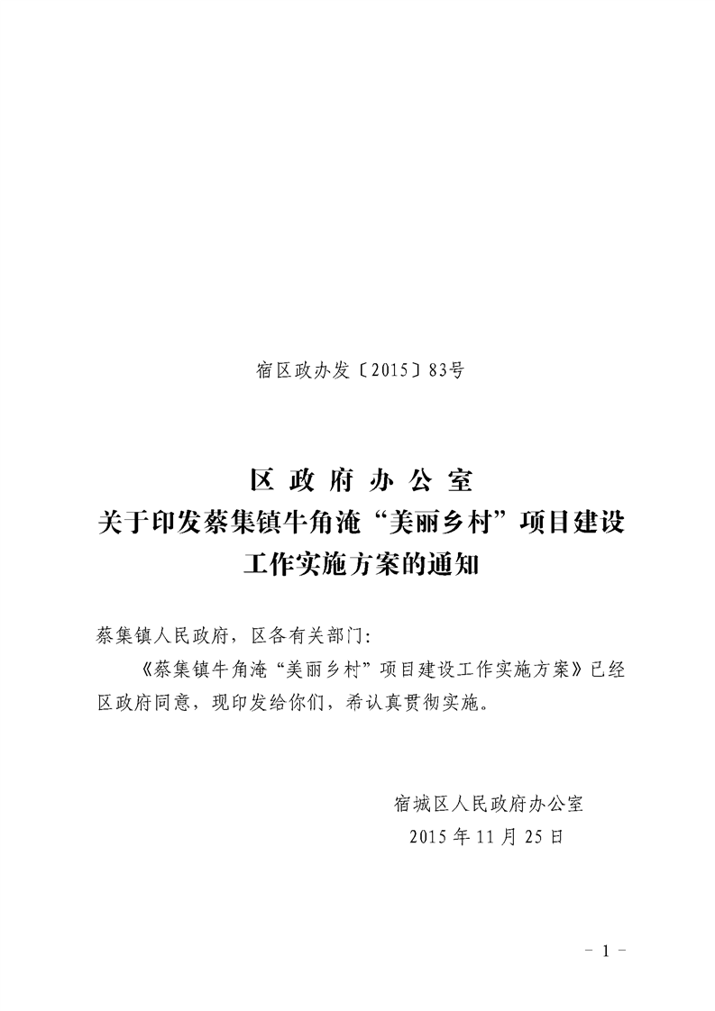 【“十三五”專項(xiàng)規(guī)劃】區(qū)政府辦公室關(guān)于印發(fā)蔡集鎮(zhèn)牛角淹“美麗鄉(xiāng)村”項(xiàng)目建設(shè)工作實(shí)施方案的通知