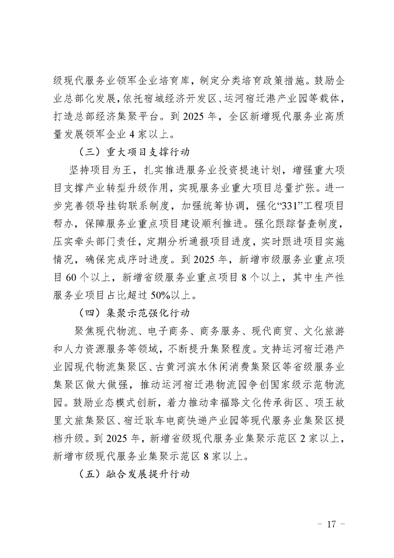 宿城區人民政府關于印發《宿城區現代服務業登高提質三年行動方案(2023-2025年)》的通知.doc