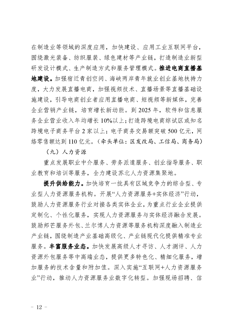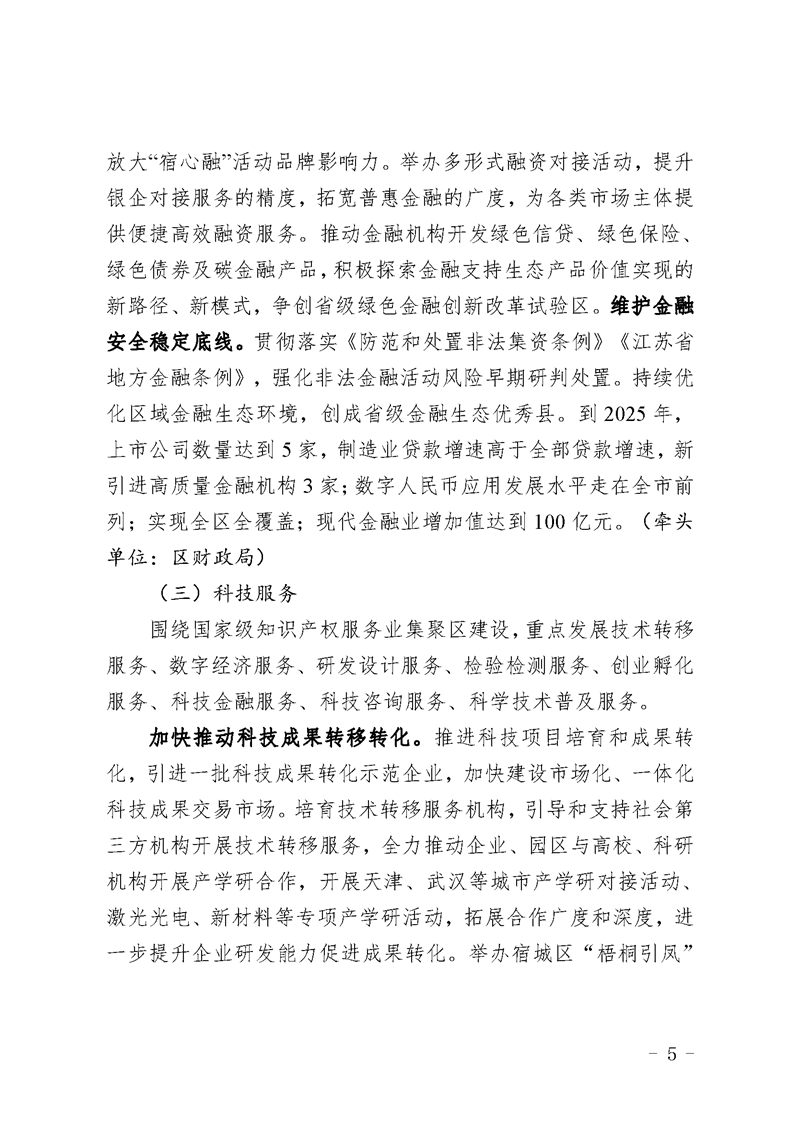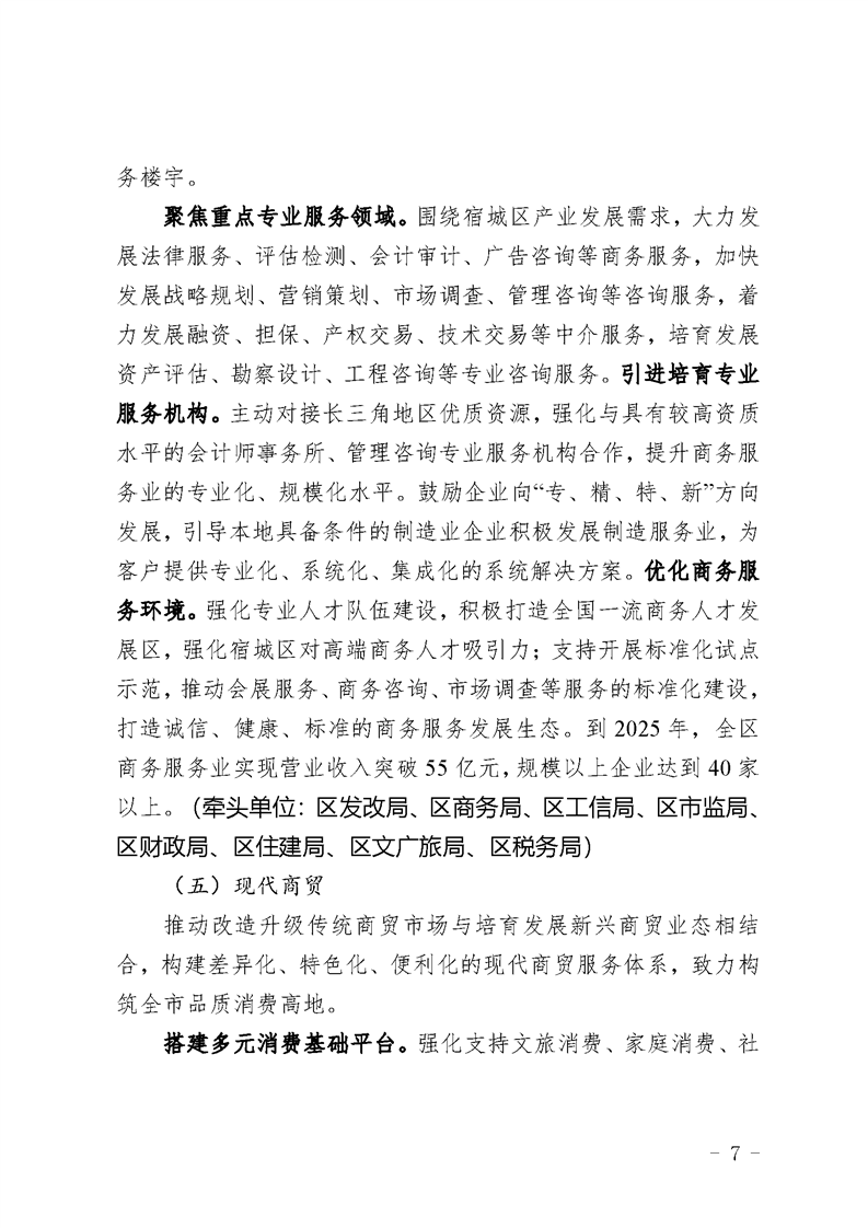宿城區人民政府關于印發《宿城區現代服務業登高提質三年行動方案(2023-2025年)》的通知