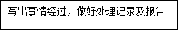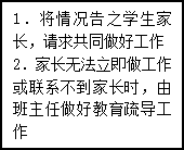 5.班主任要注意安撫學生家長,持續關心學生復原情形和跟蹤處理結果,協助相關部門分析事故產生的原因,及時落實整改措施,班主任要加強對學生宣傳安全防范知識,并及時寫出事情經過,做好處理記錄及報告。