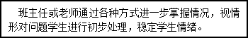 任何異常的或突發的事件發生時,班主任應首先確認事件的性質、事態的嚴重程度以及對學生身心健康可能產生的影響,從而確定事件的處理工作流程。