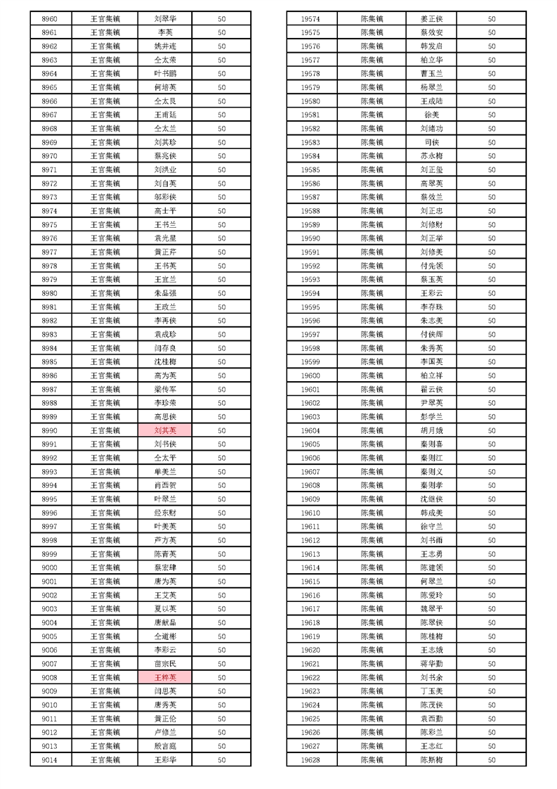 宿城區2025年8月80周歲及以上老年人尊老金長期公示