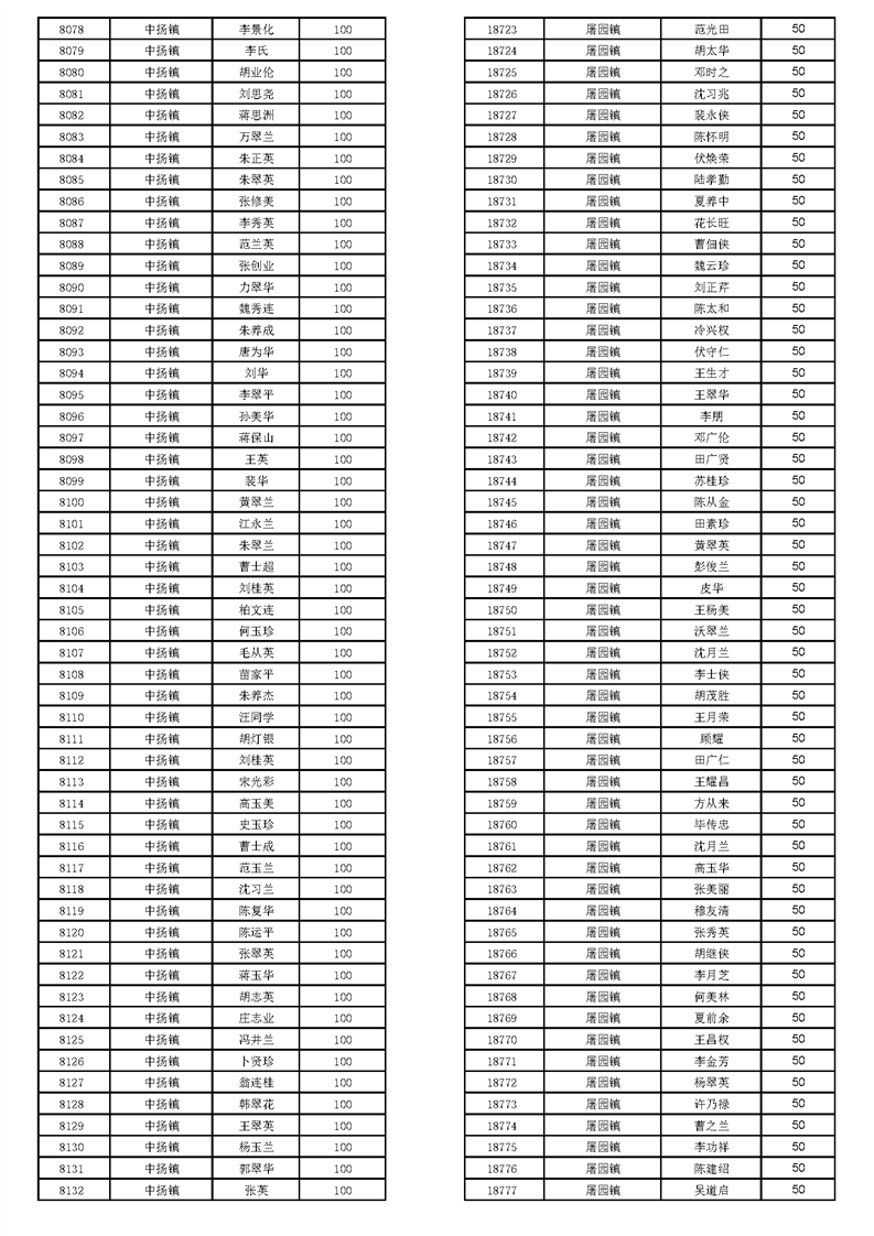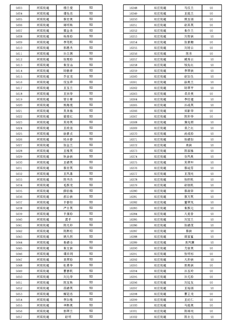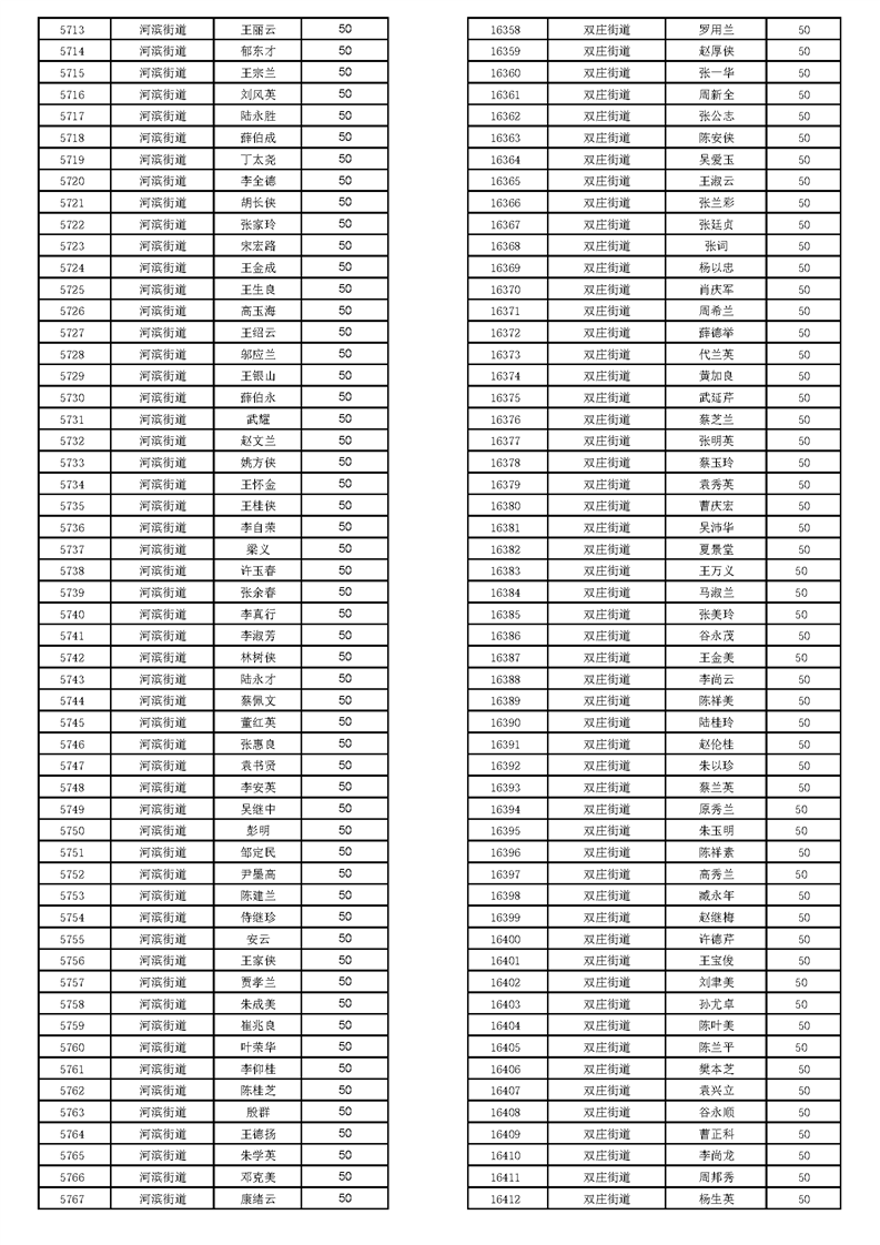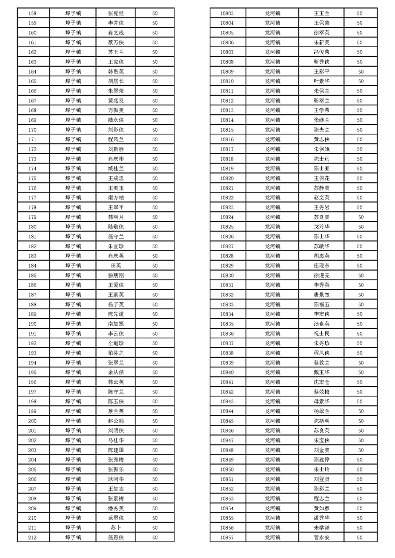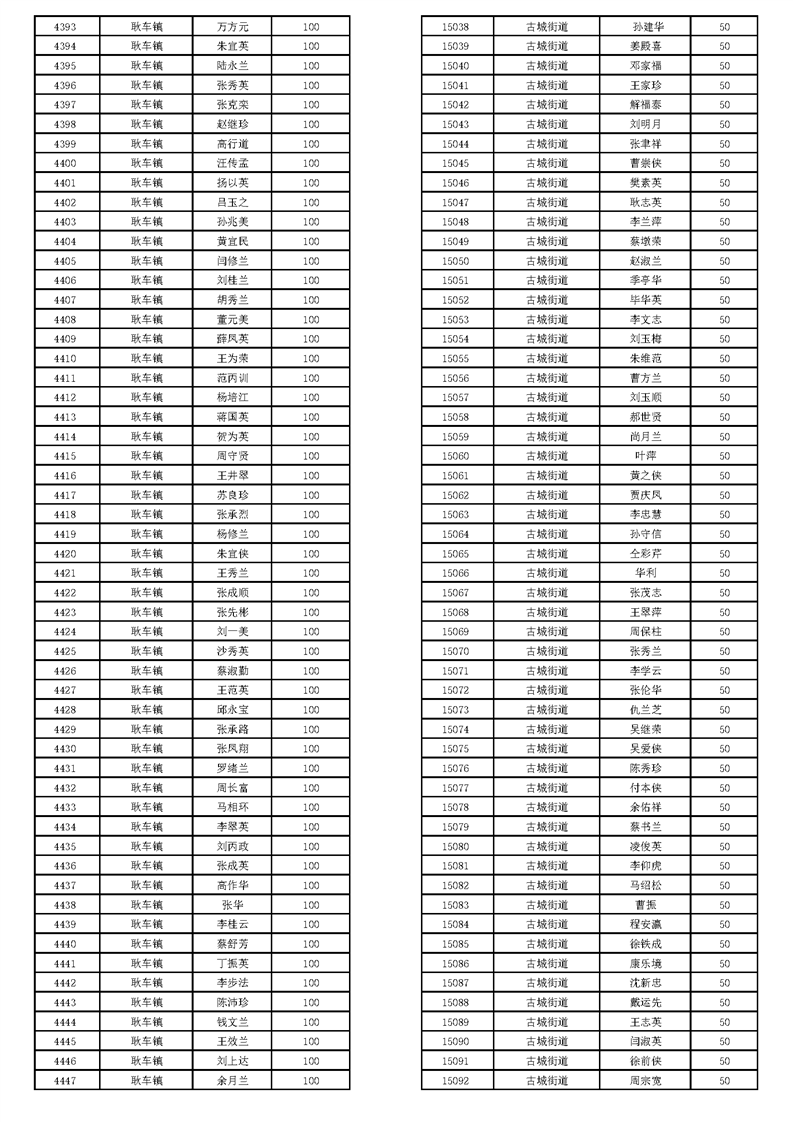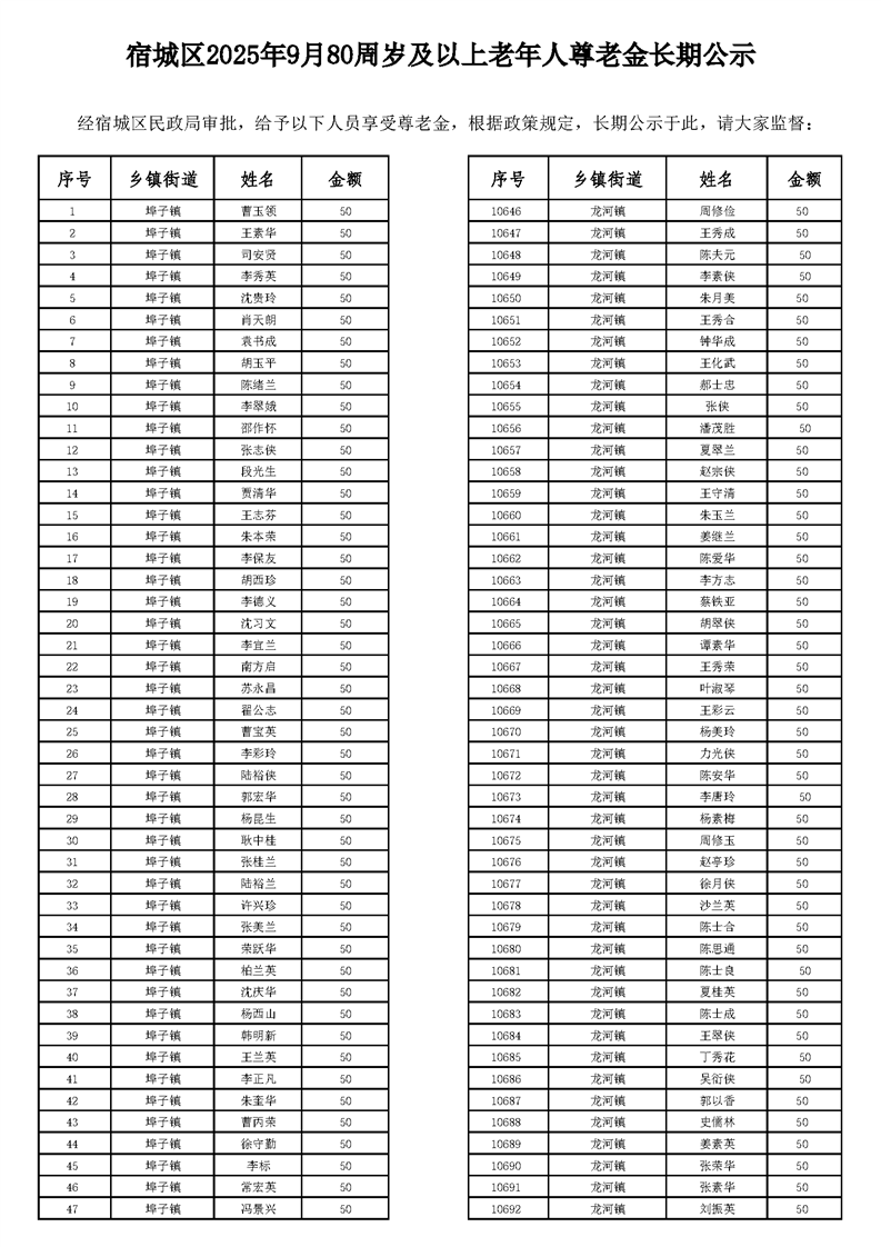 宿城區2025年9月80周歲及以上老年人尊老金長期公示