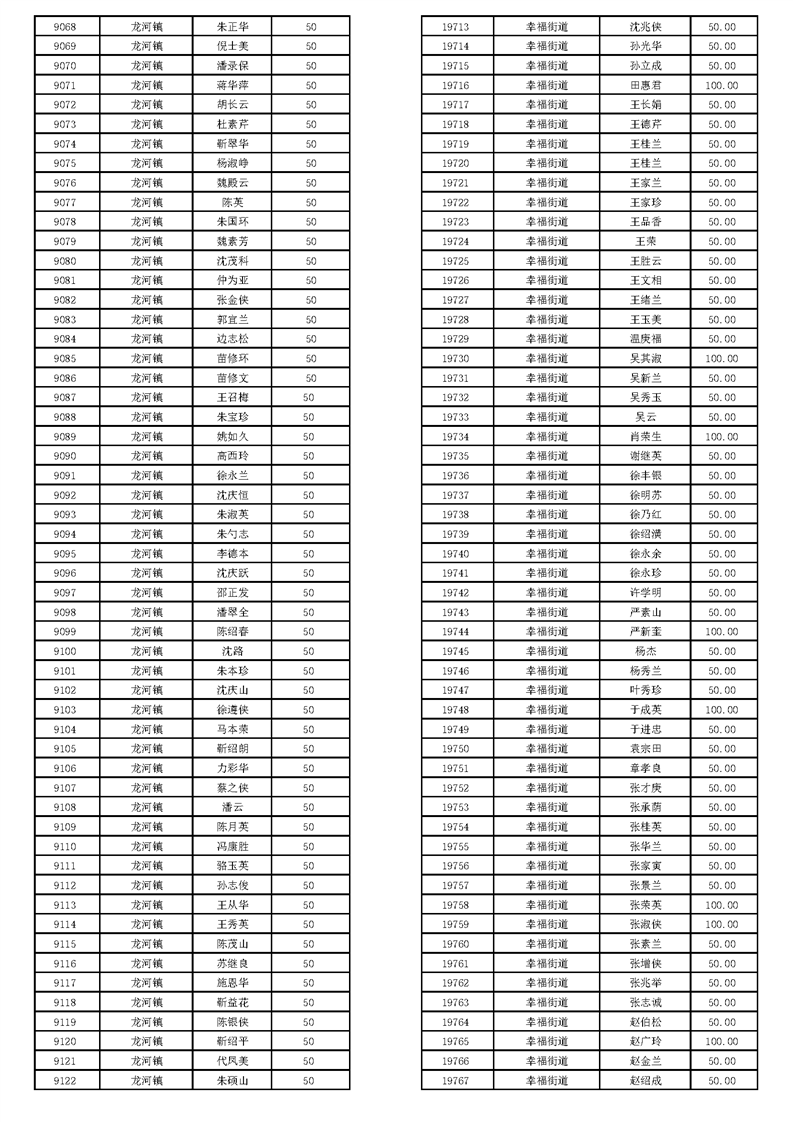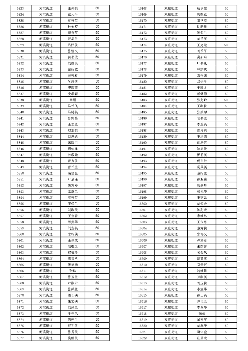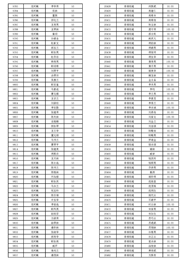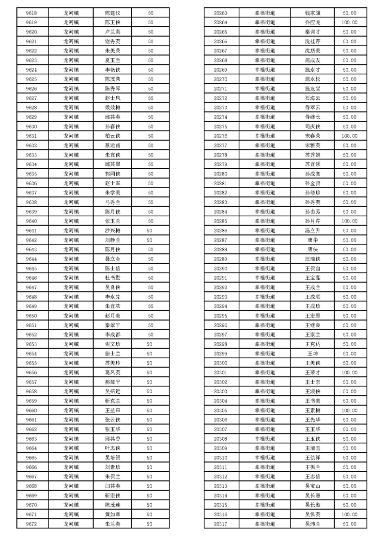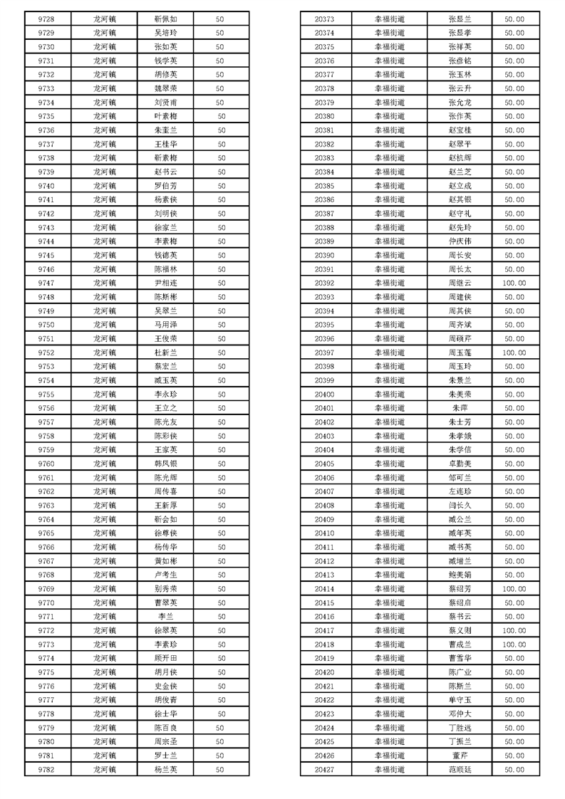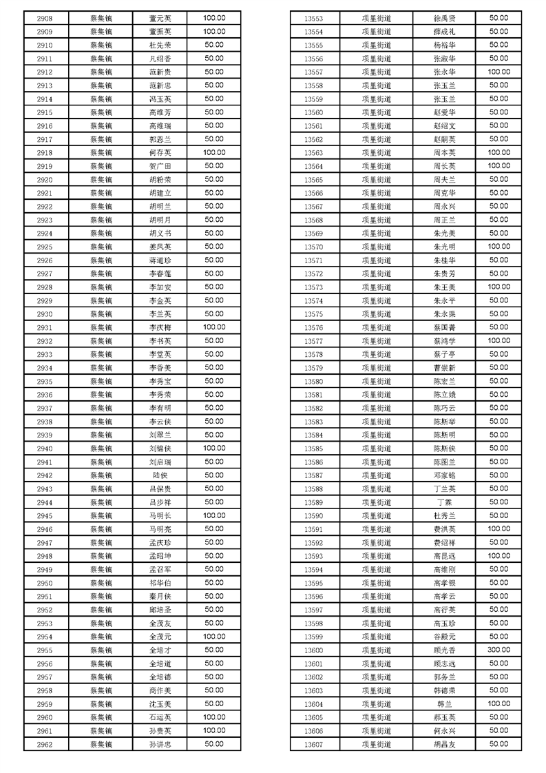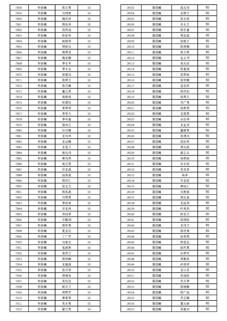 宿城區2025年9月80周歲及以上老年人尊老金長期公示