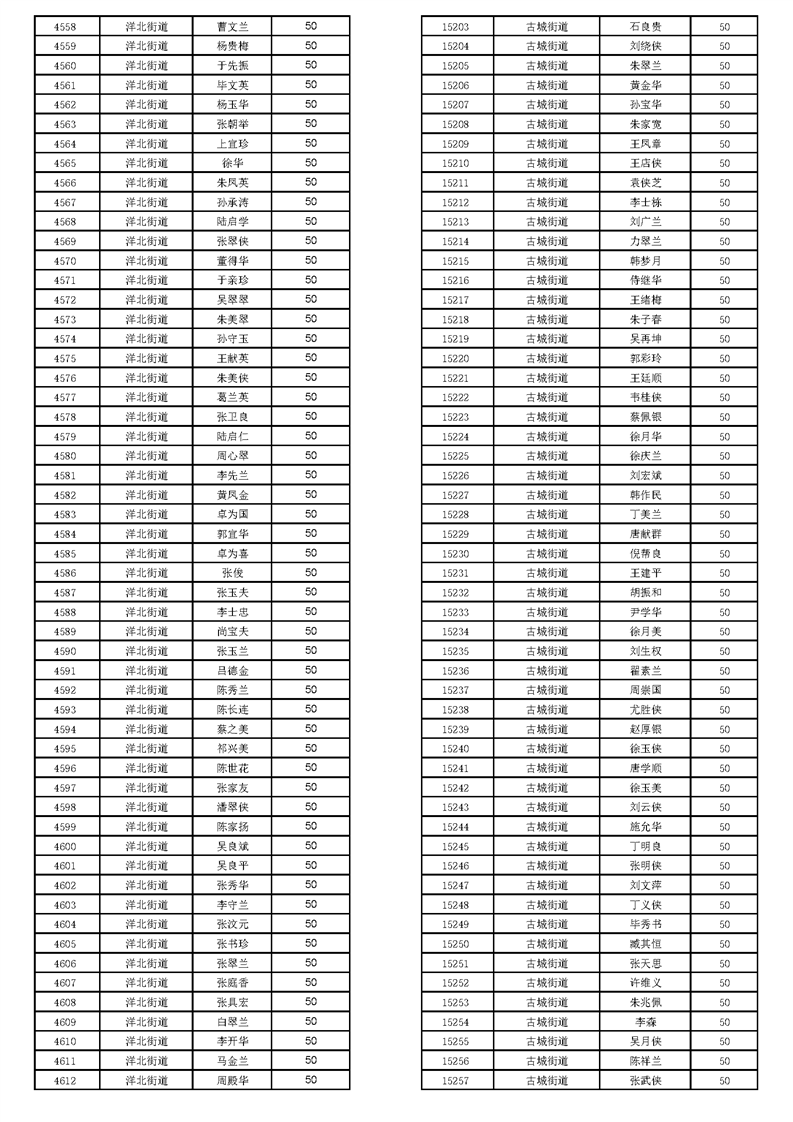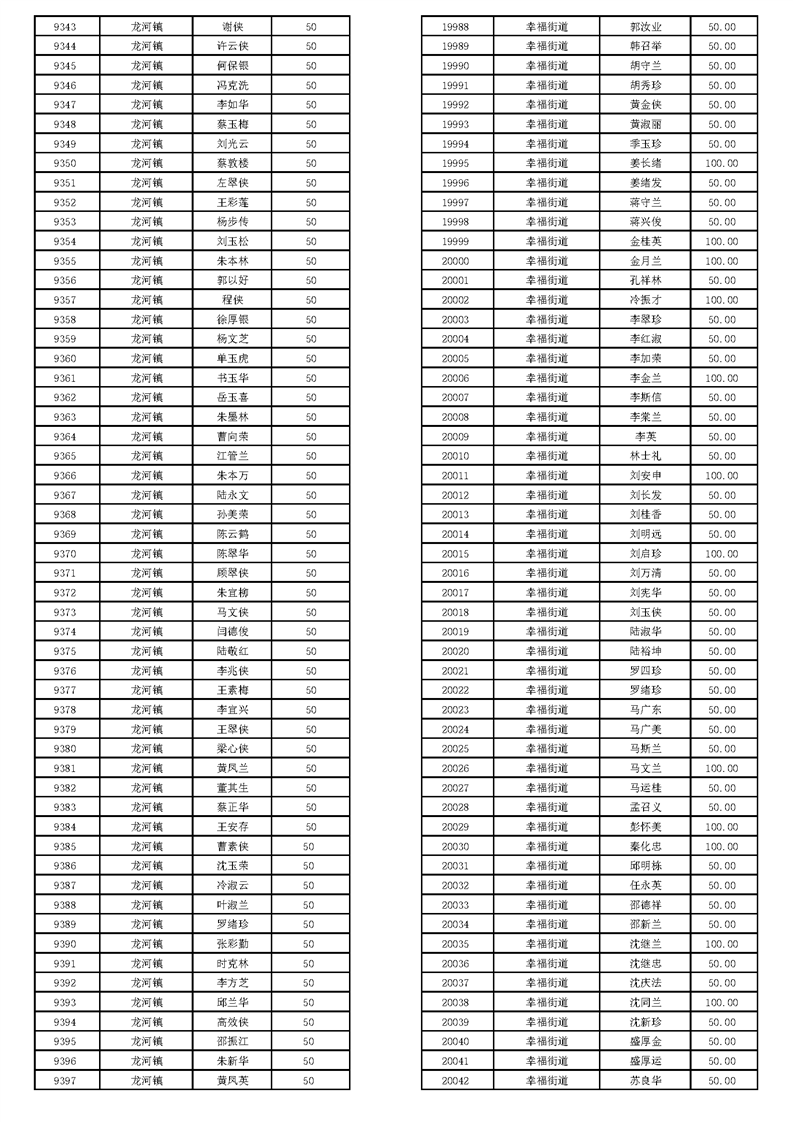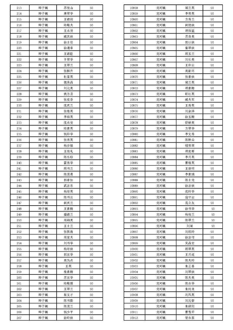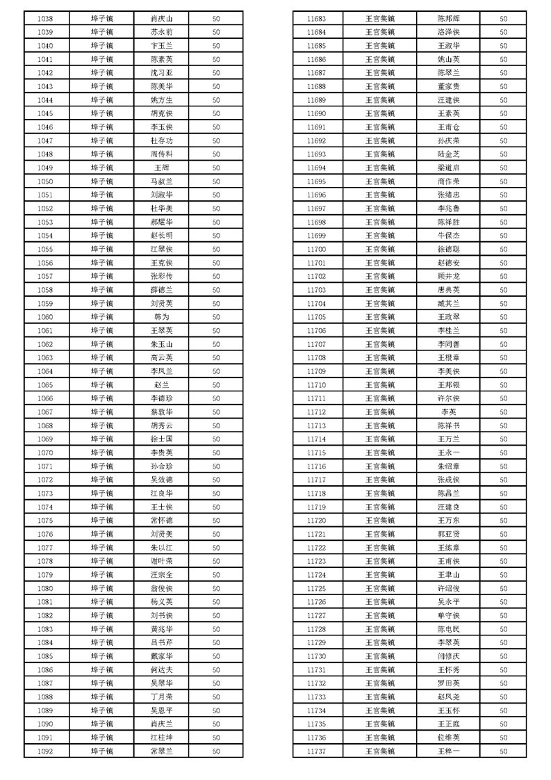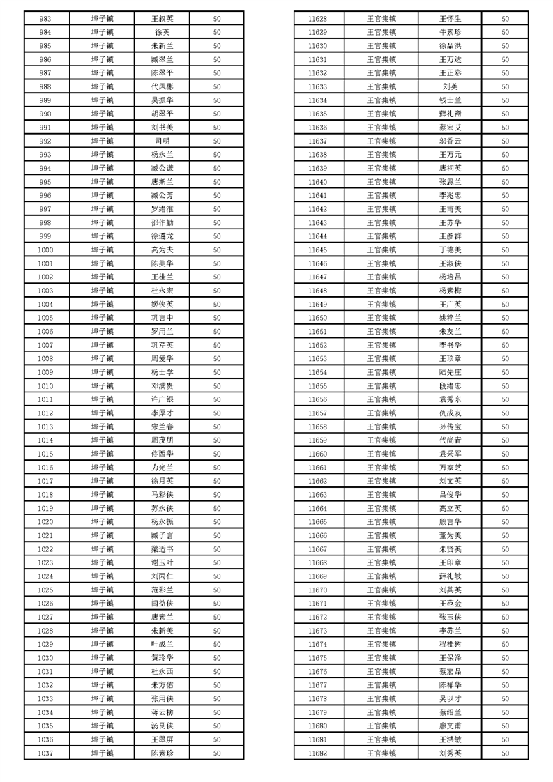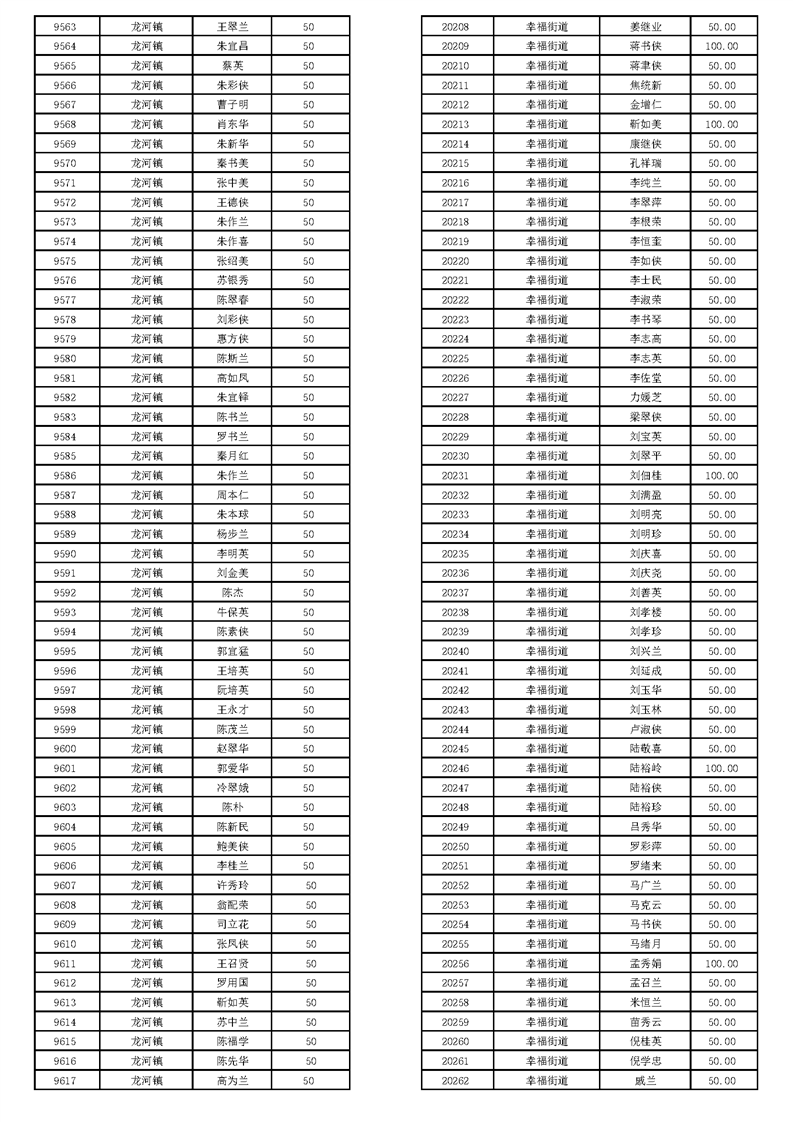 宿城區2025年9月80周歲及以上老年人尊老金長期公示