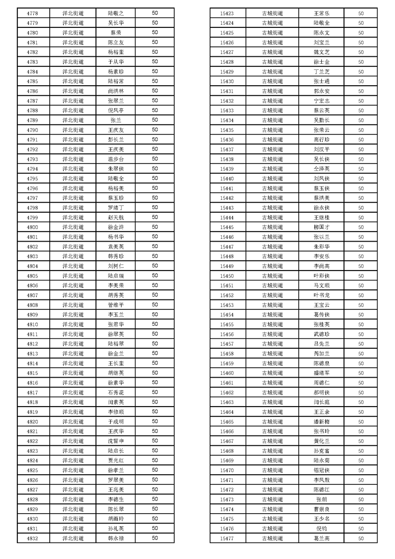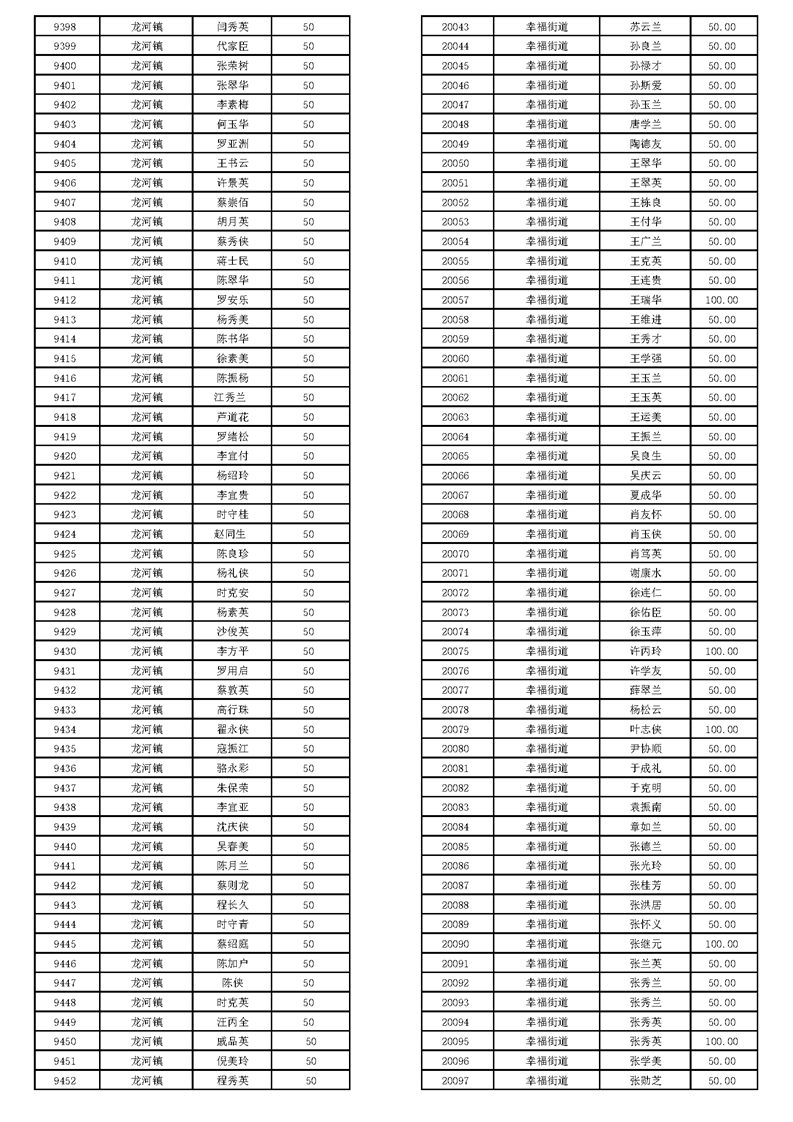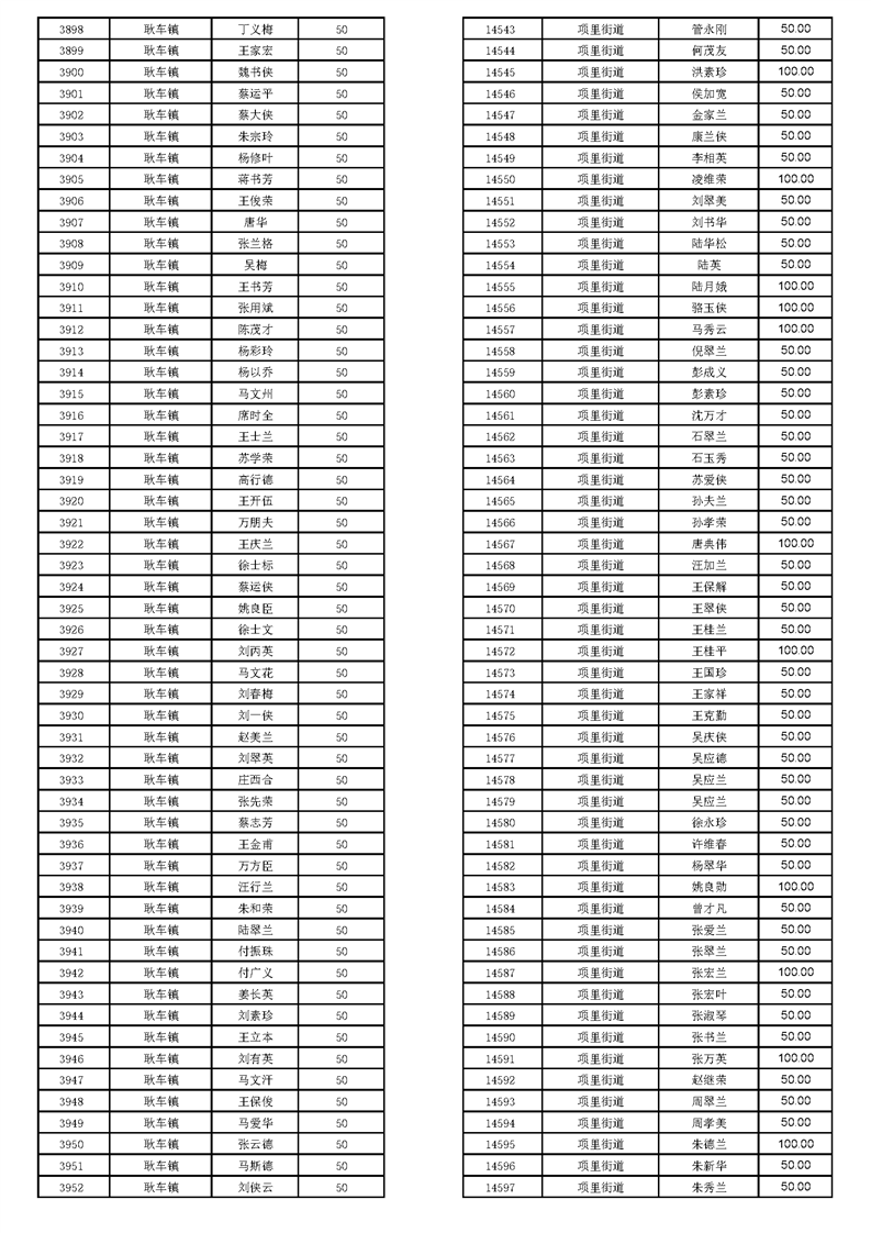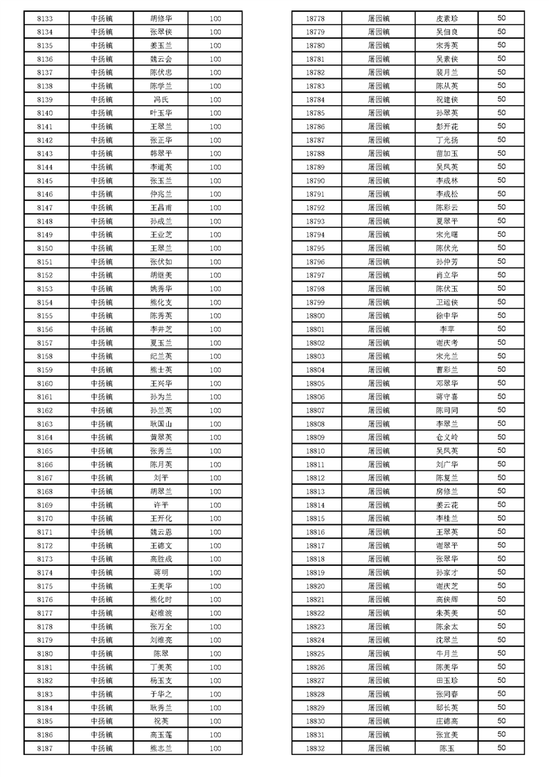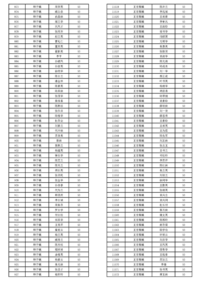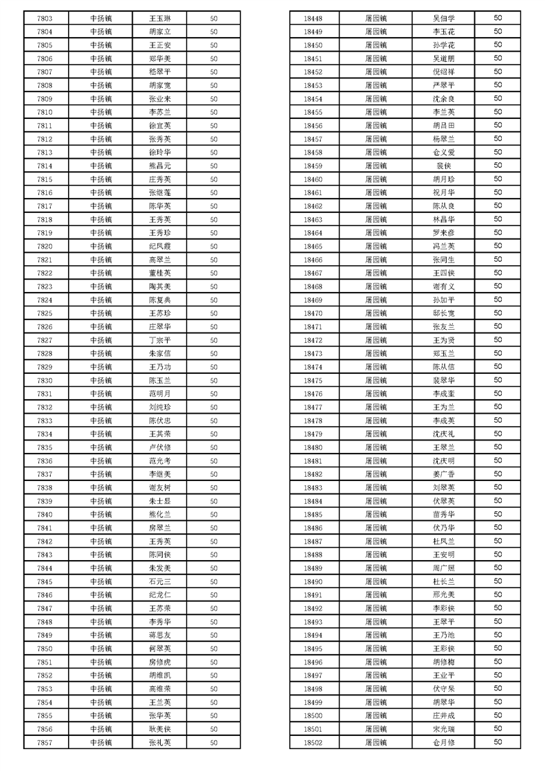宿城區2025年9月80周歲及以上老年人尊老金長期公示