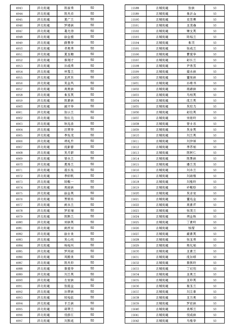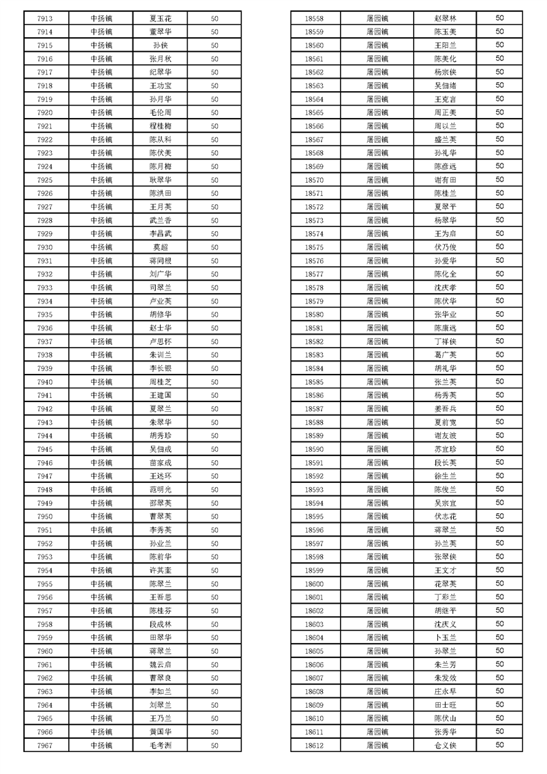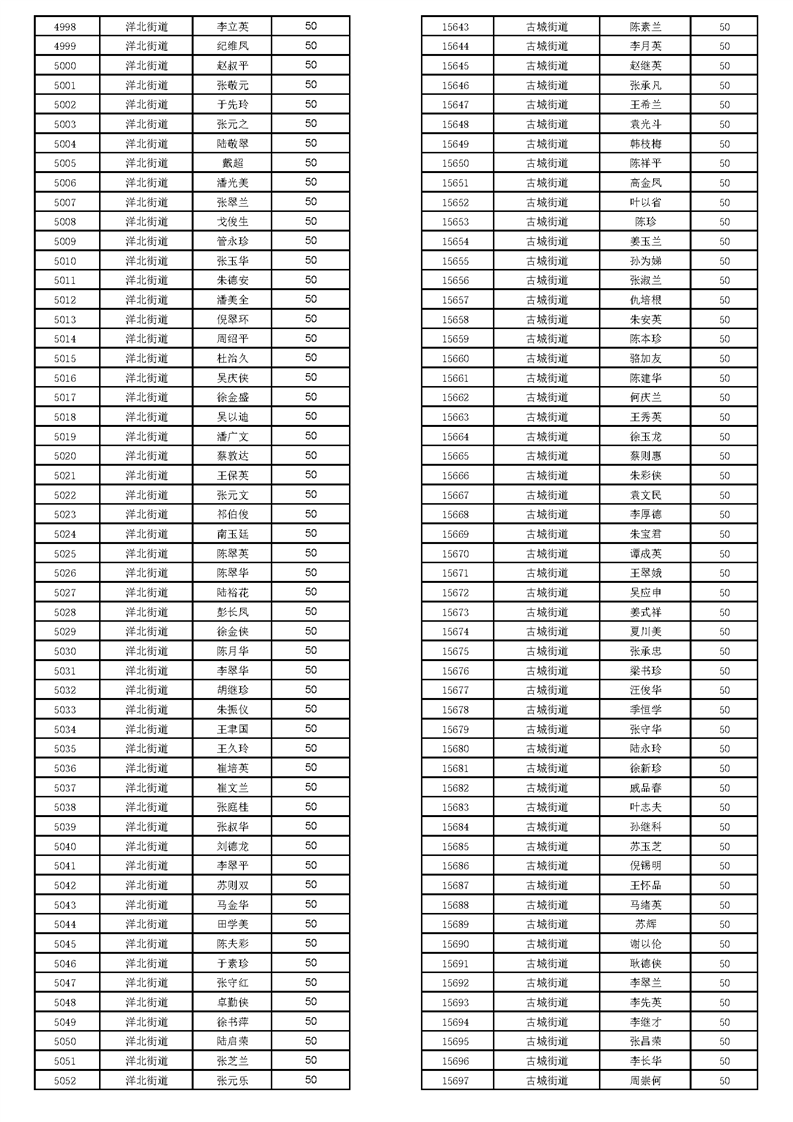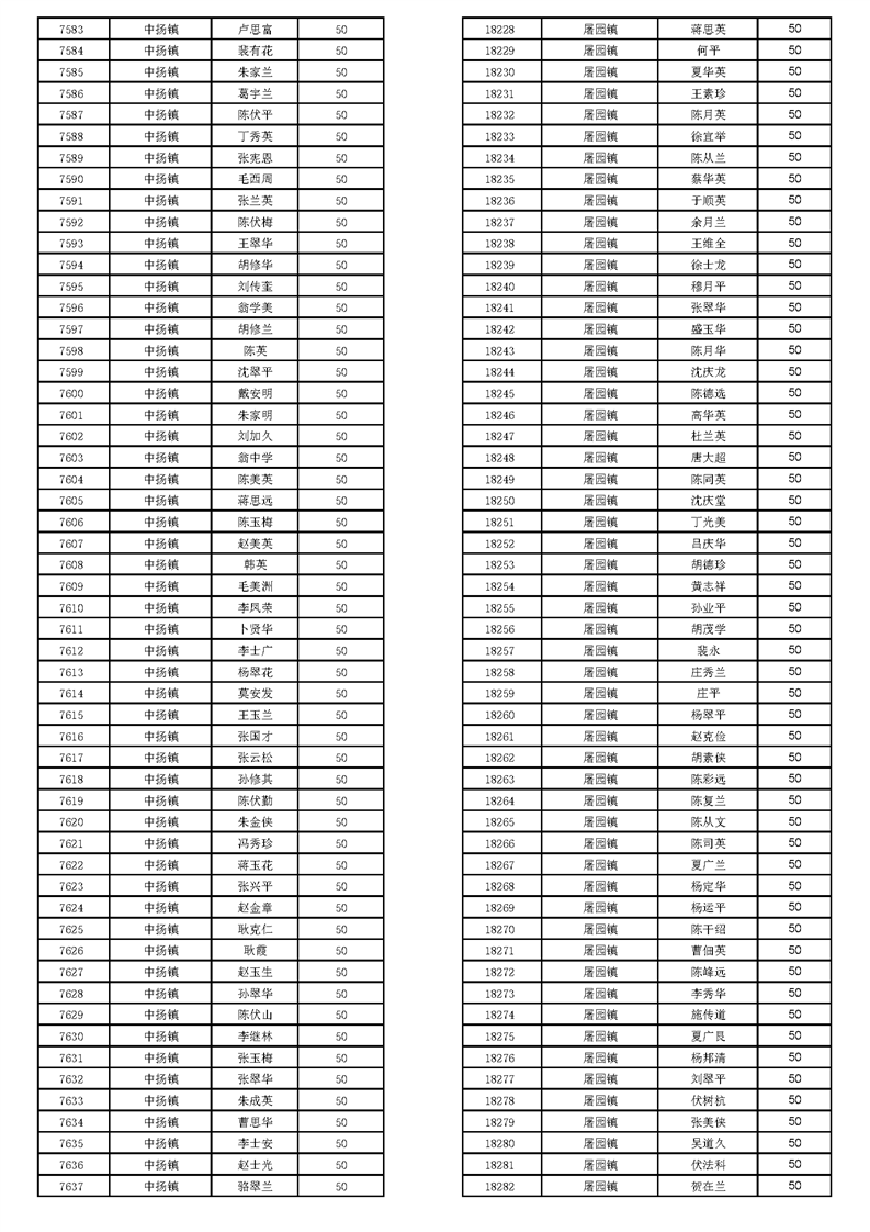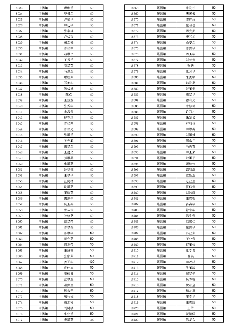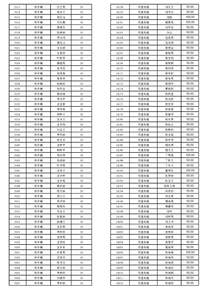 宿城區2025年9月80周歲及以上老年人尊老金長期公示