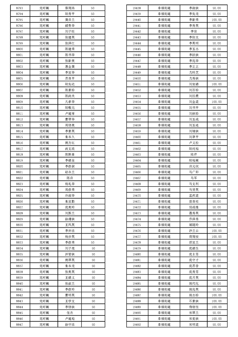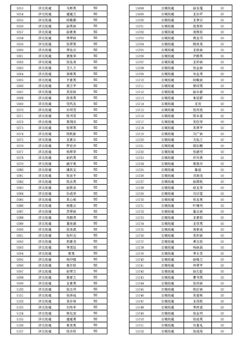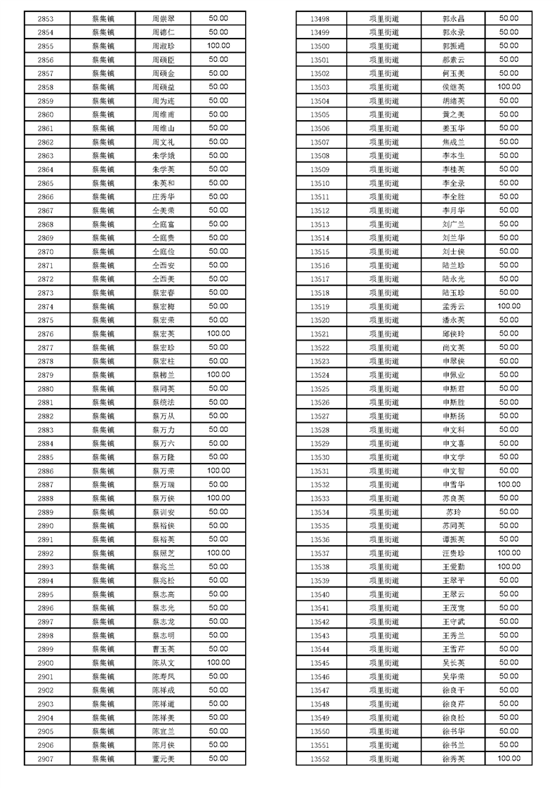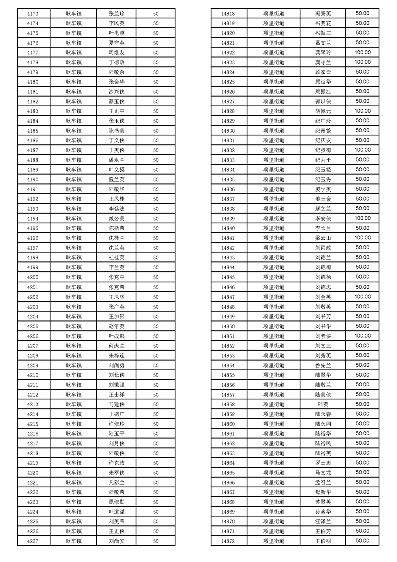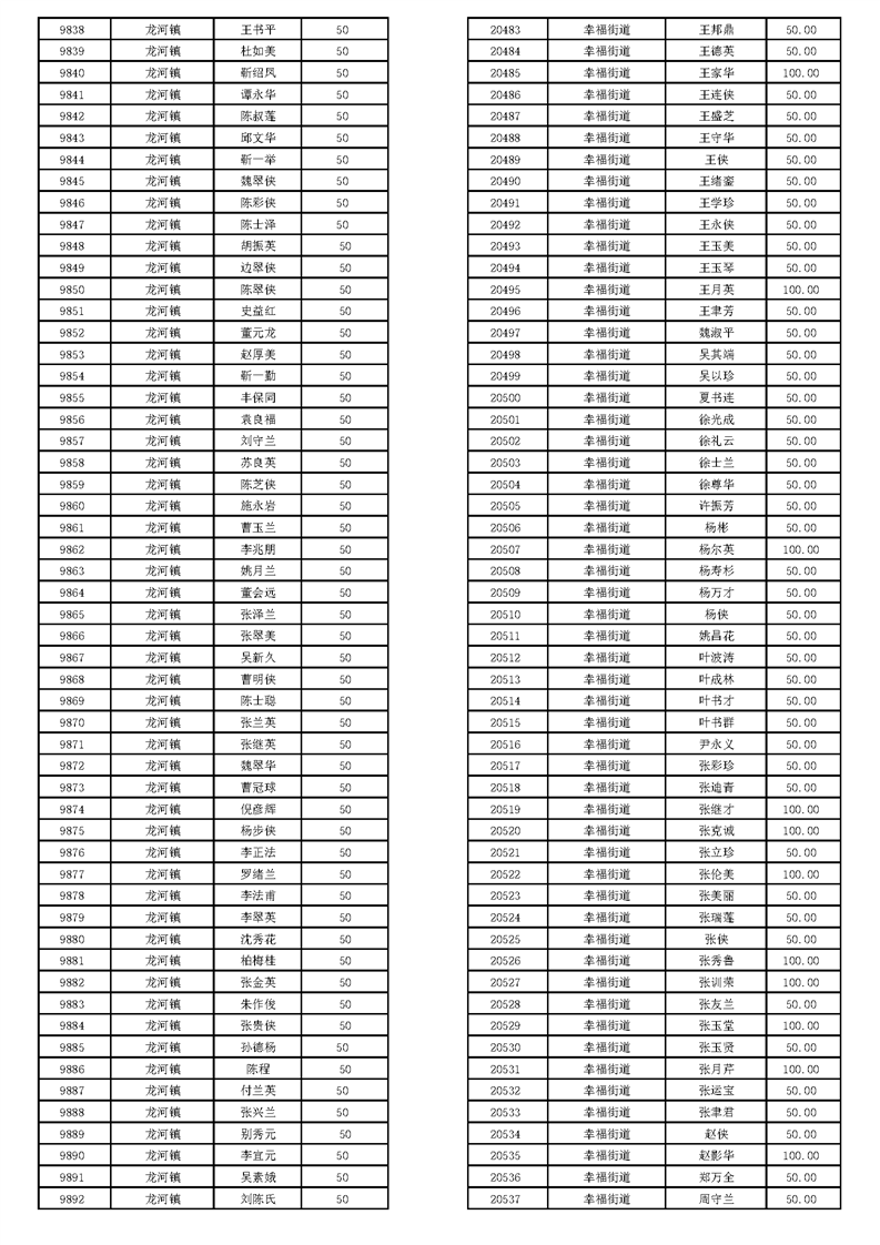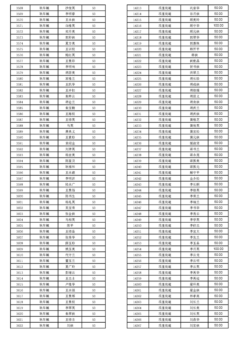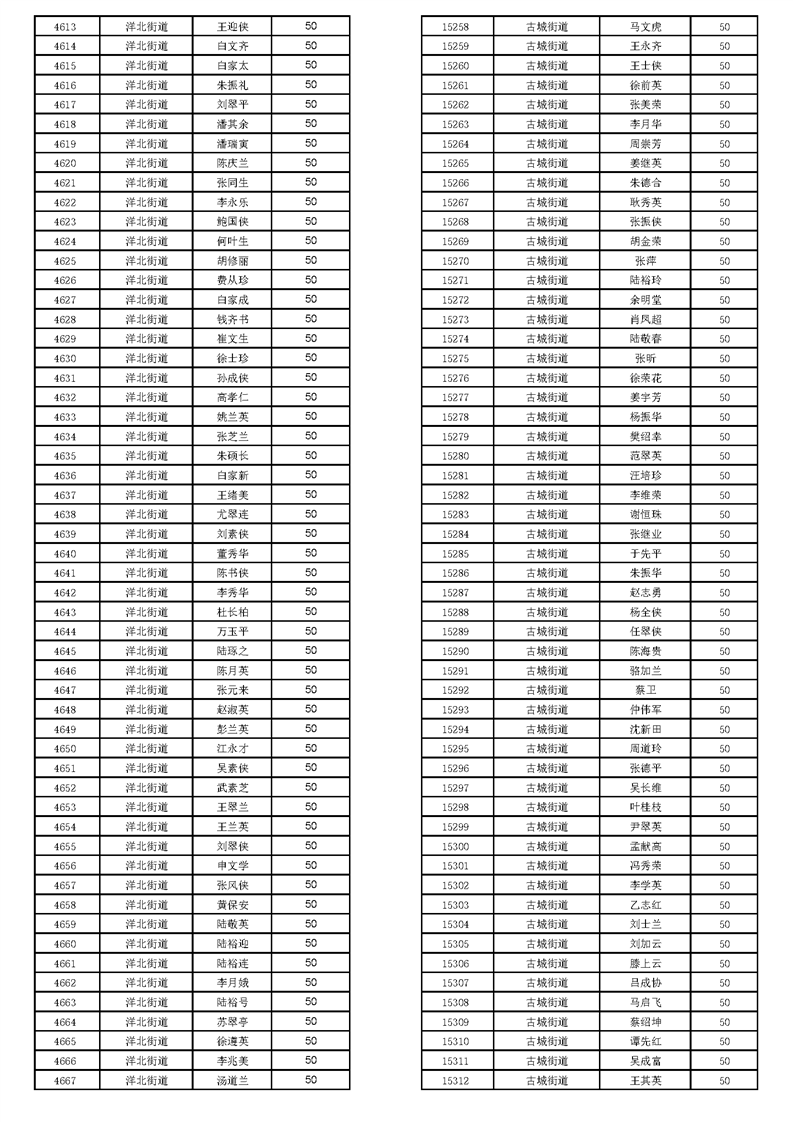 宿城區2025年9月80周歲及以上老年人尊老金長期公示