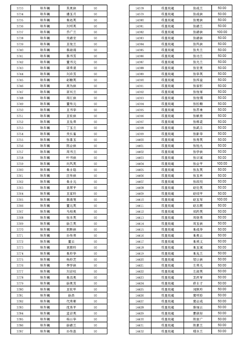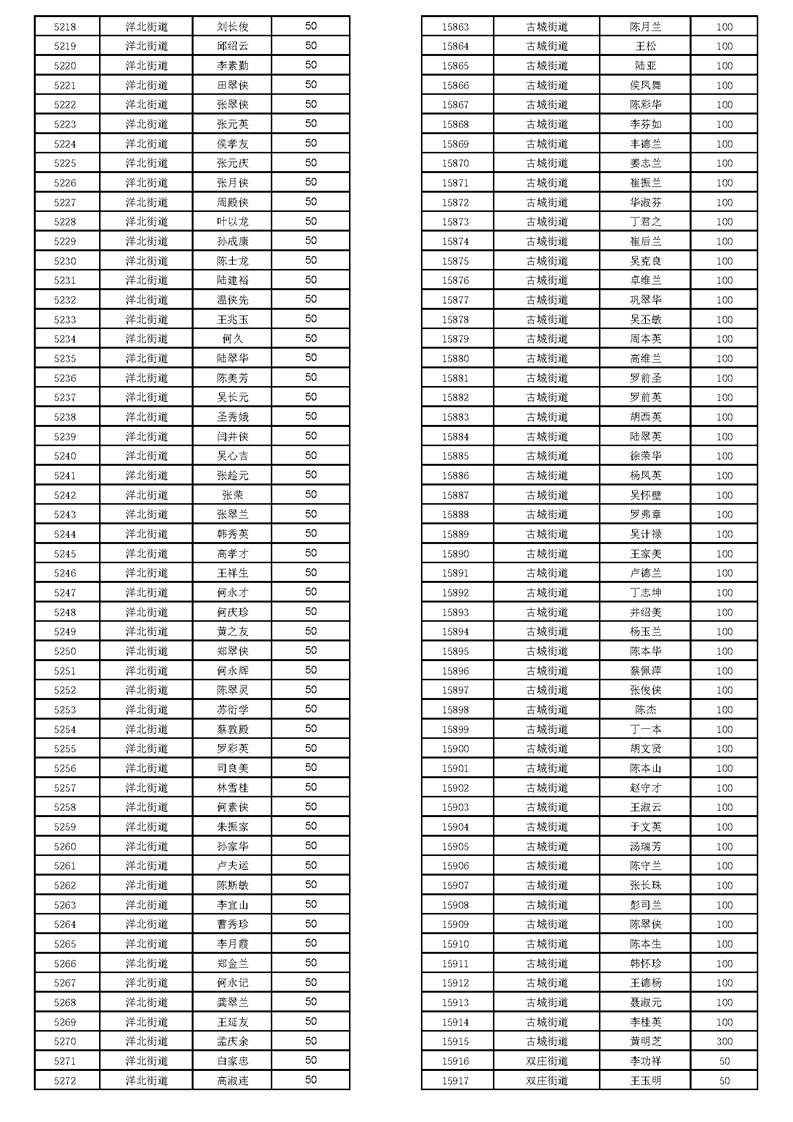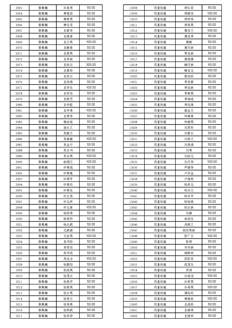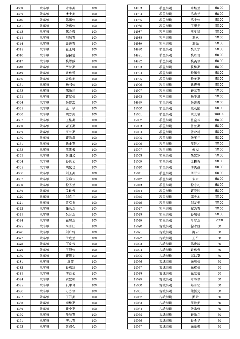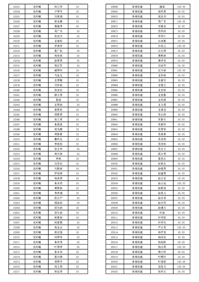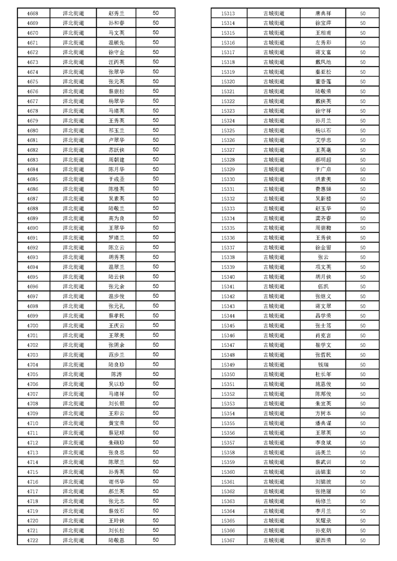 宿城區2025年9月80周歲及以上老年人尊老金長期公示