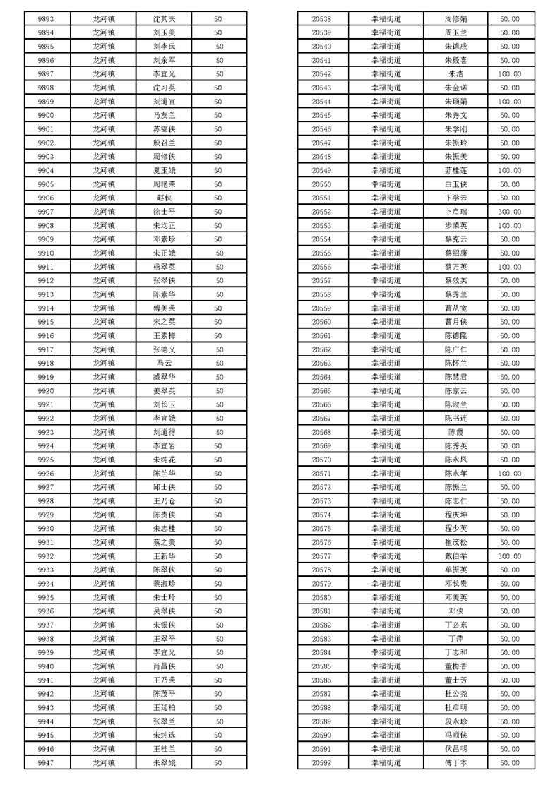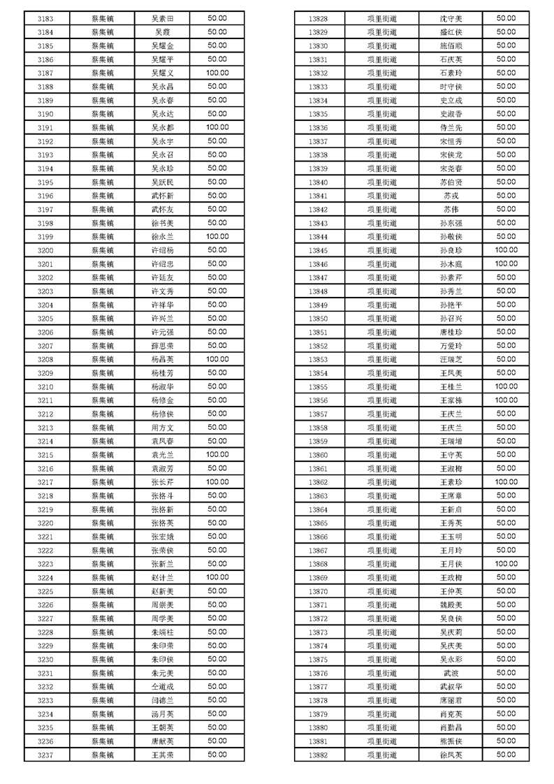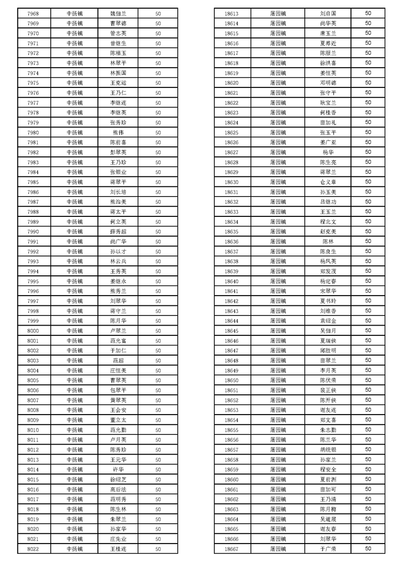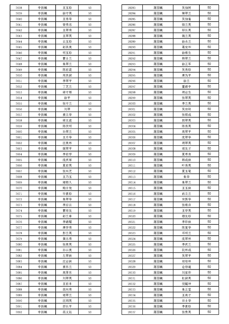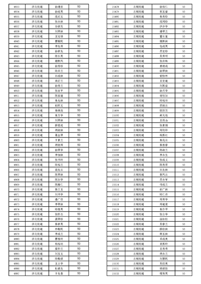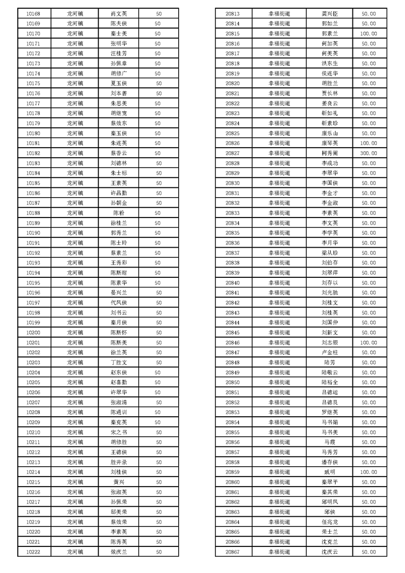 宿城區2025年9月80周歲及以上老年人尊老金長期公示