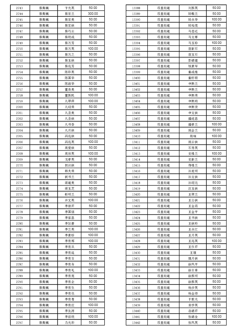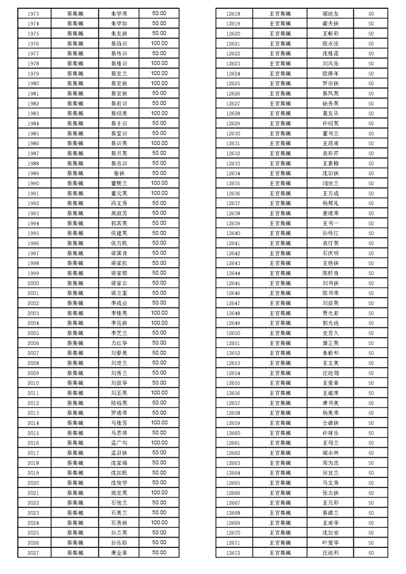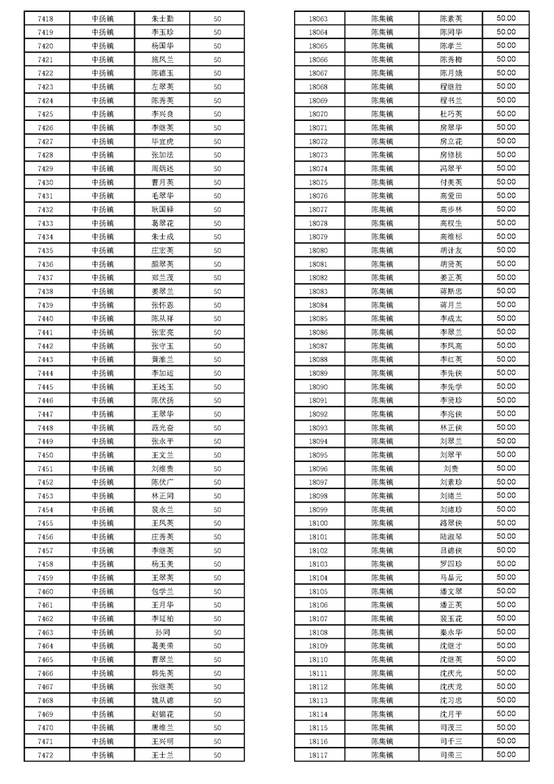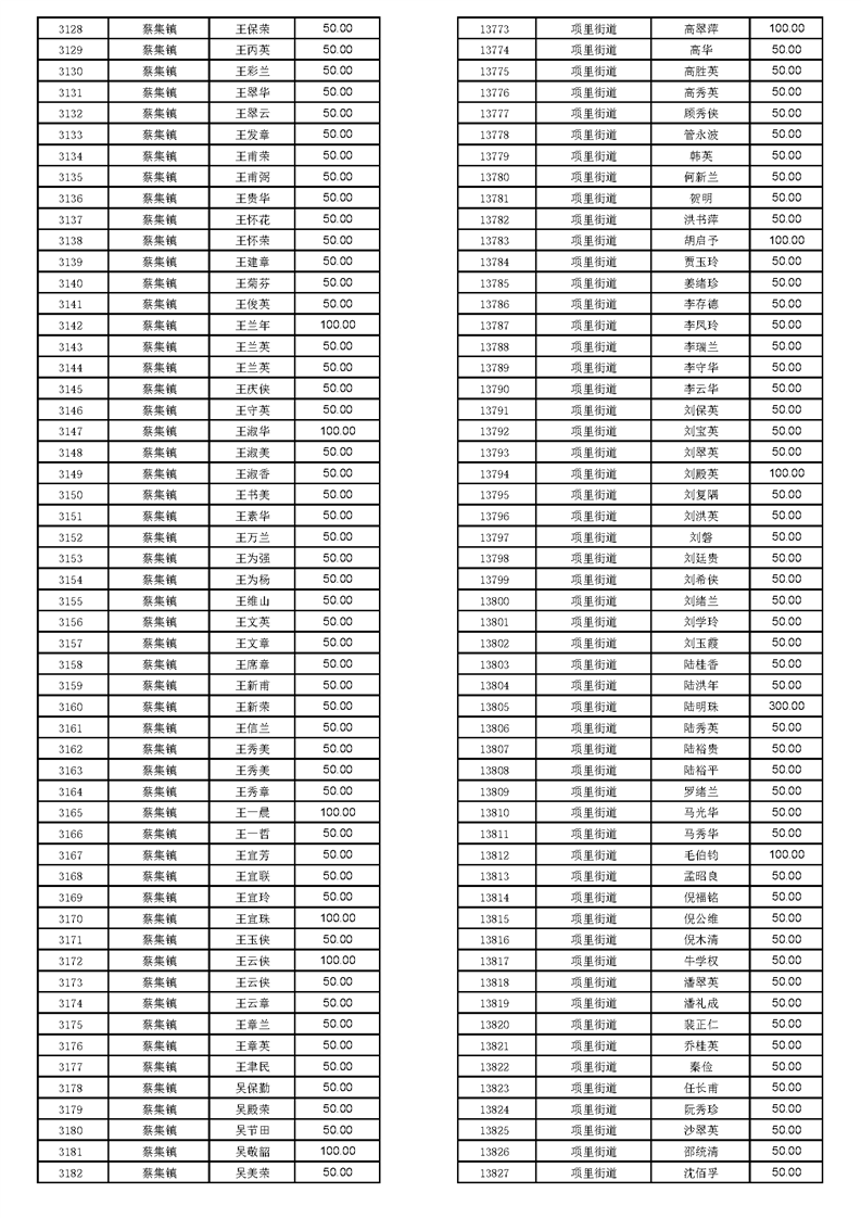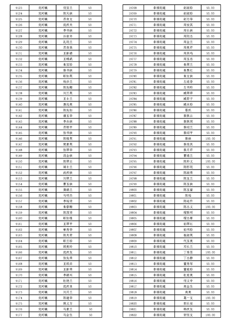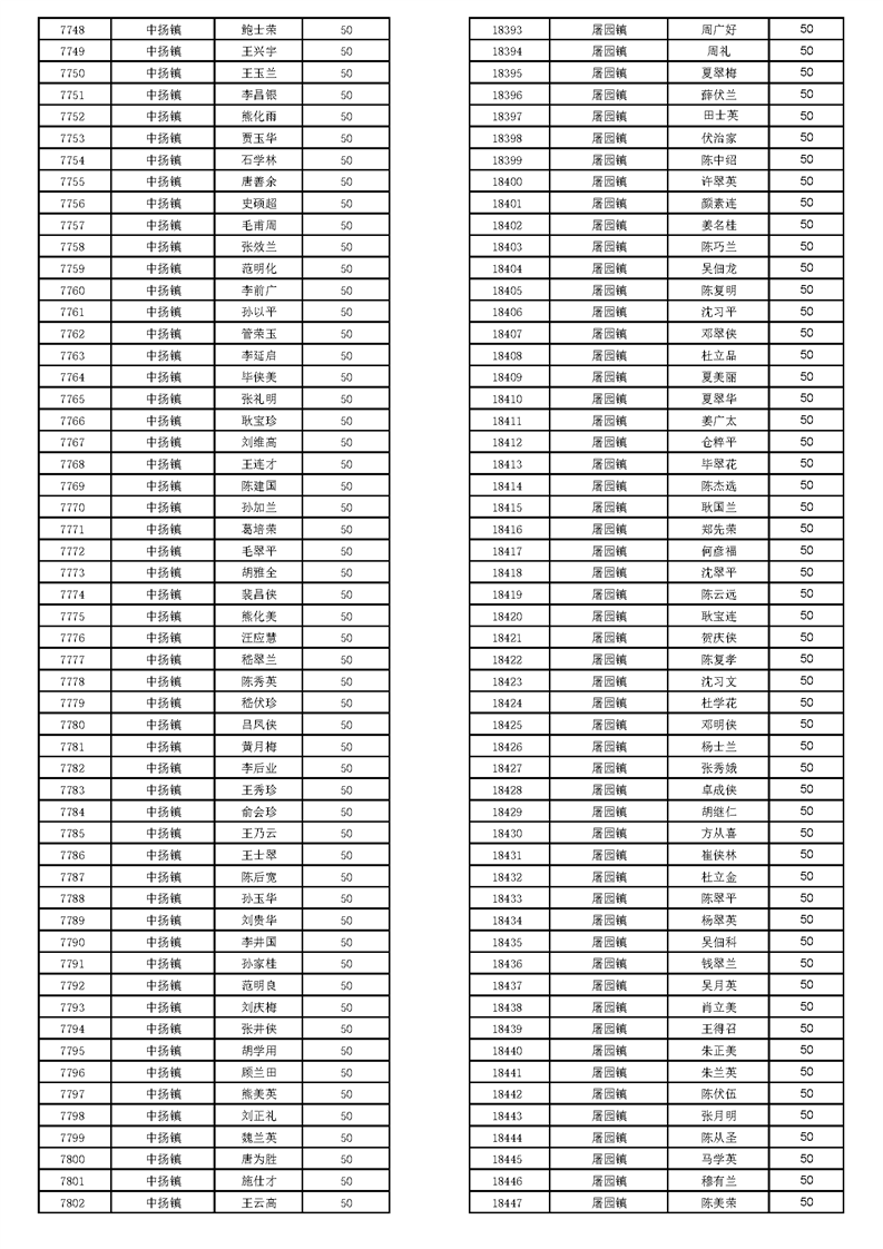 宿城區2025年9月80周歲及以上老年人尊老金長期公示