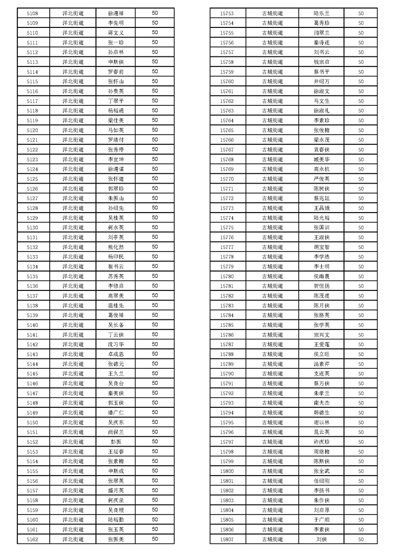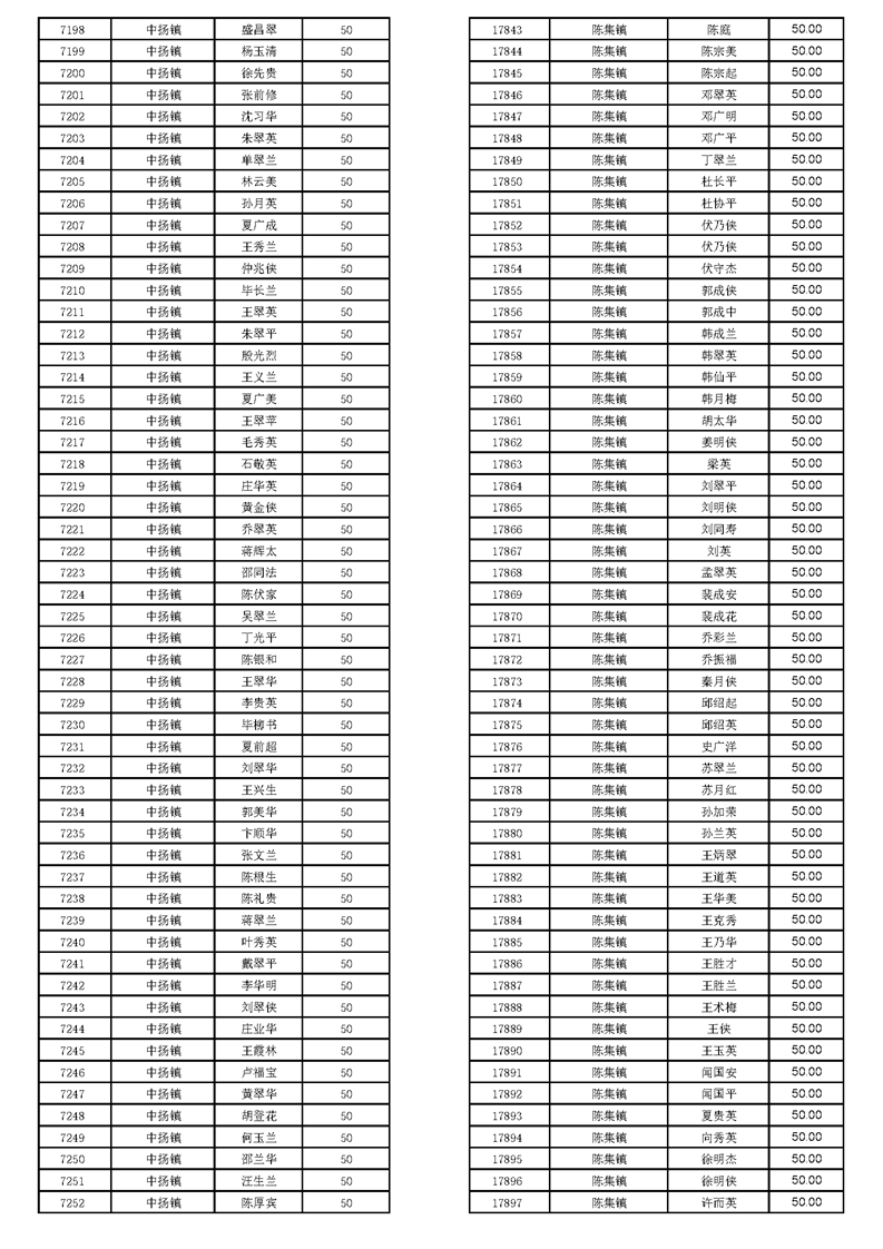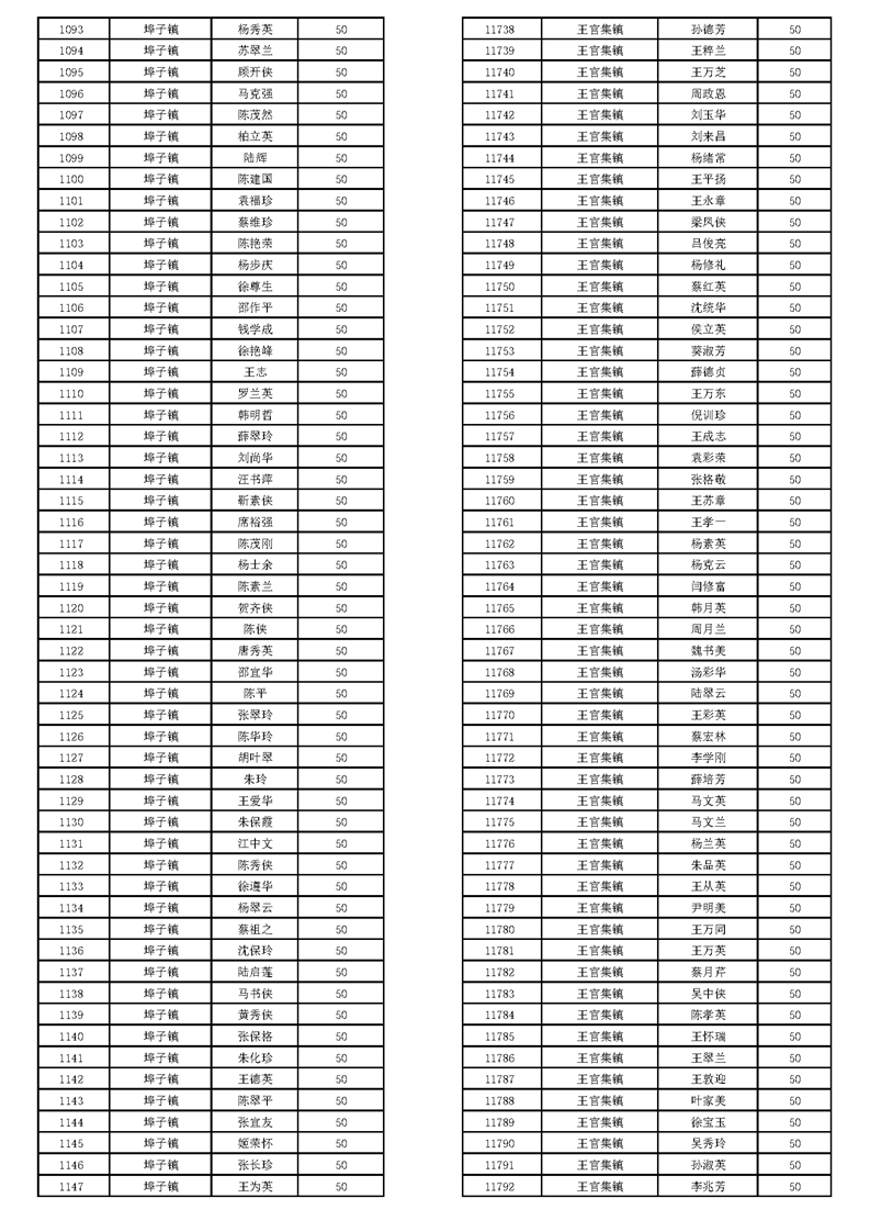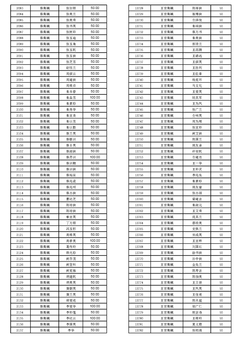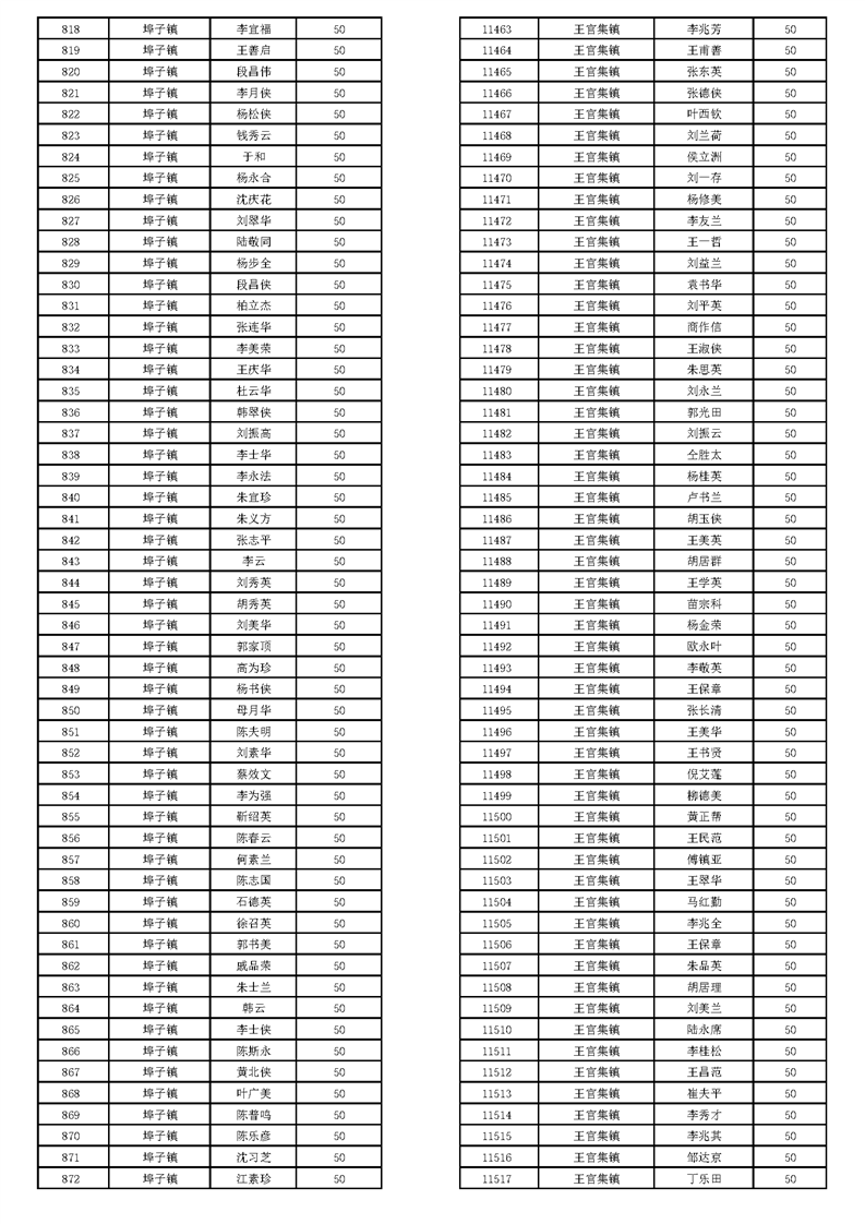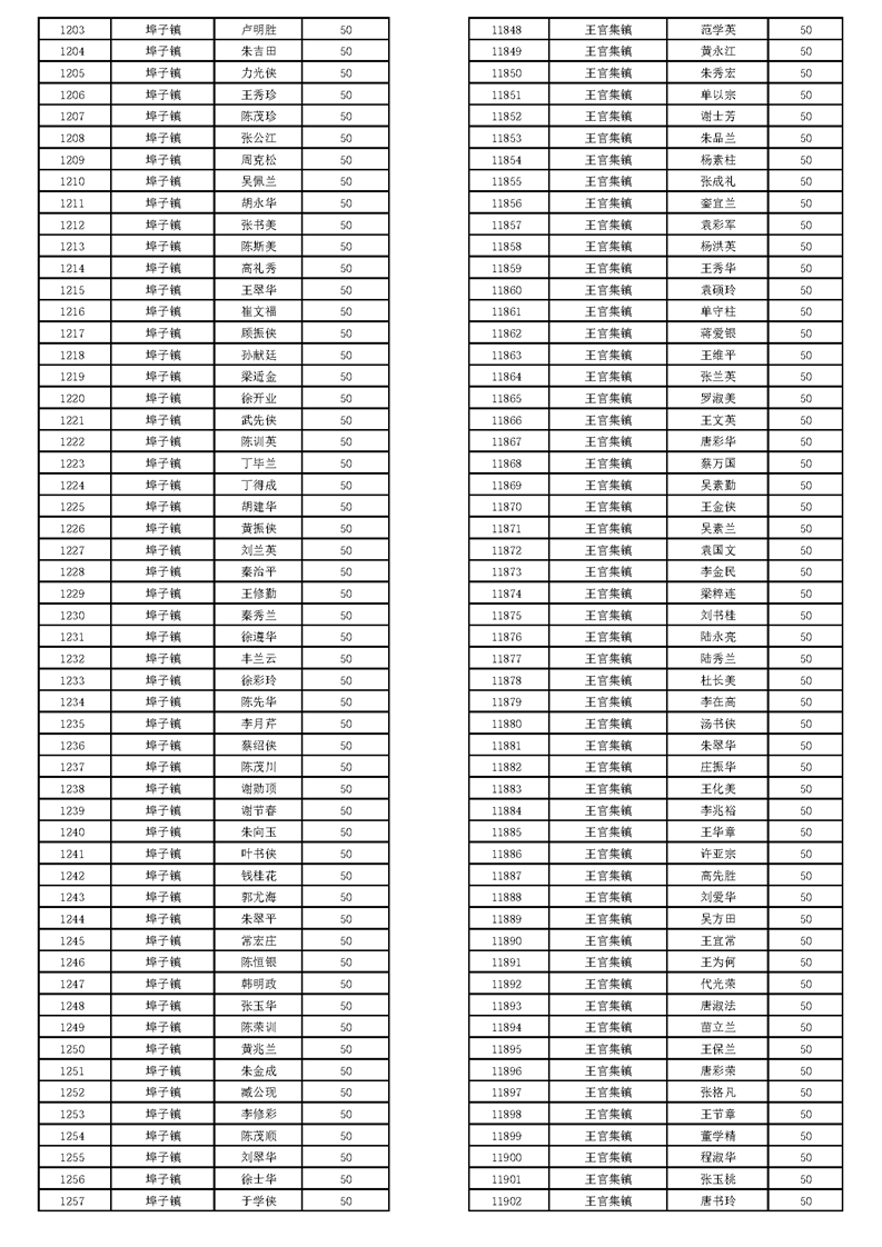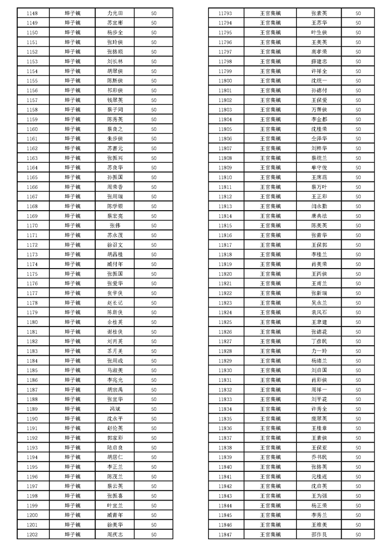 宿城區2025年9月80周歲及以上老年人尊老金長期公示