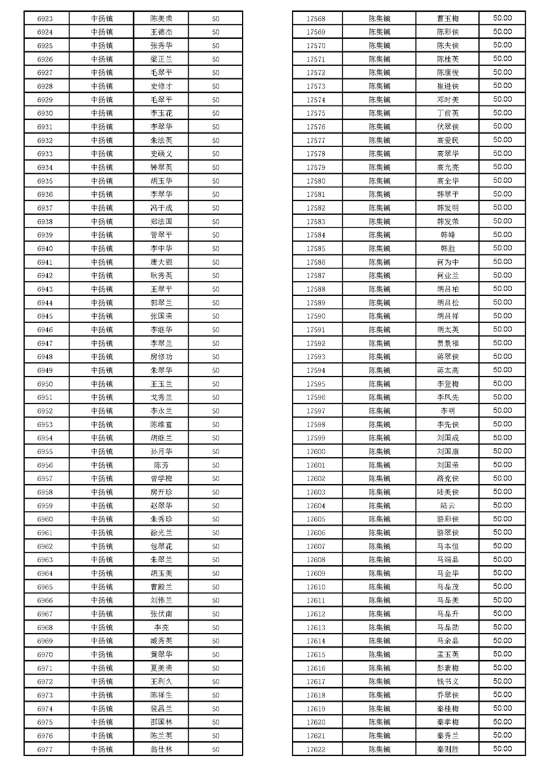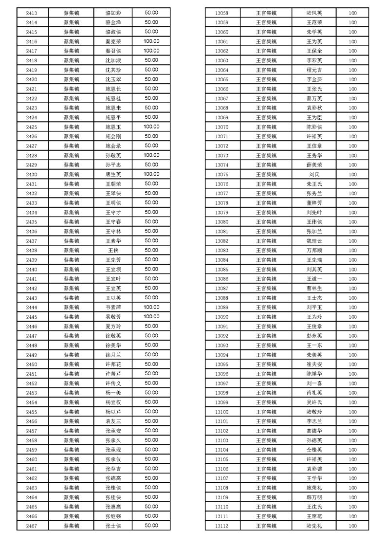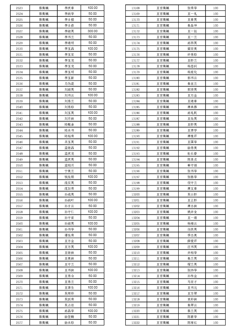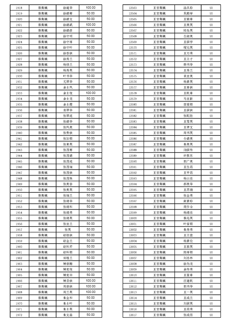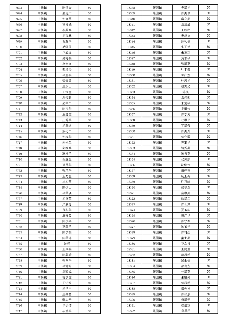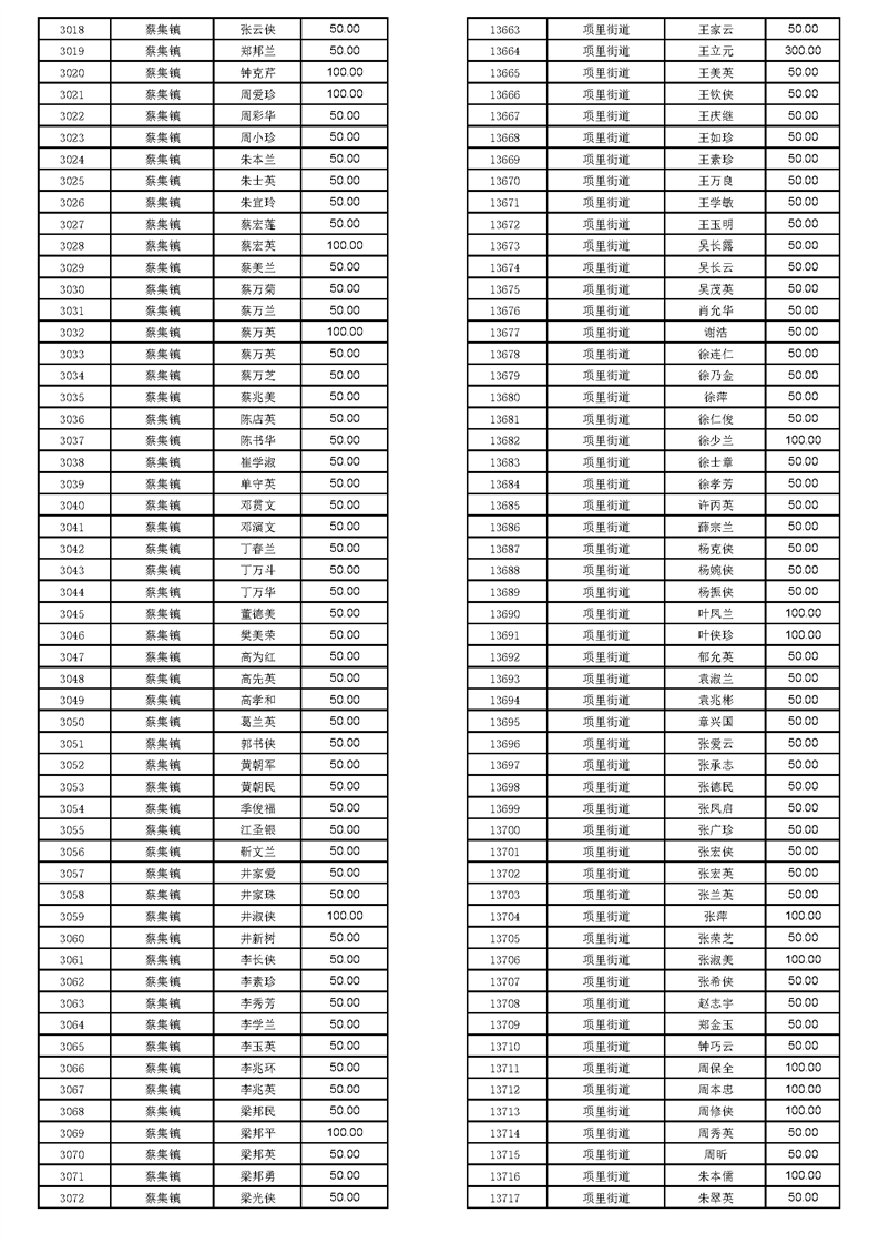 宿城區2025年9月80周歲及以上老年人尊老金長期公示