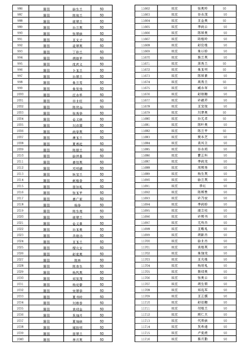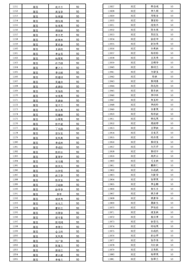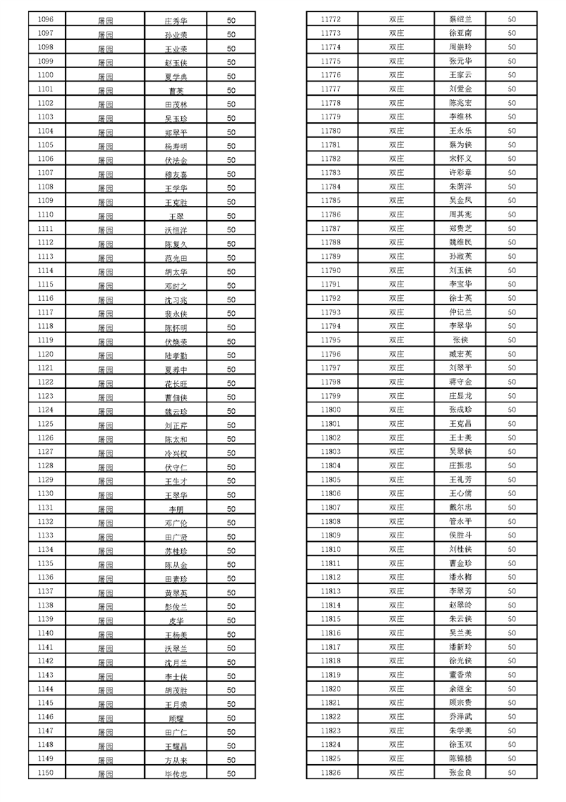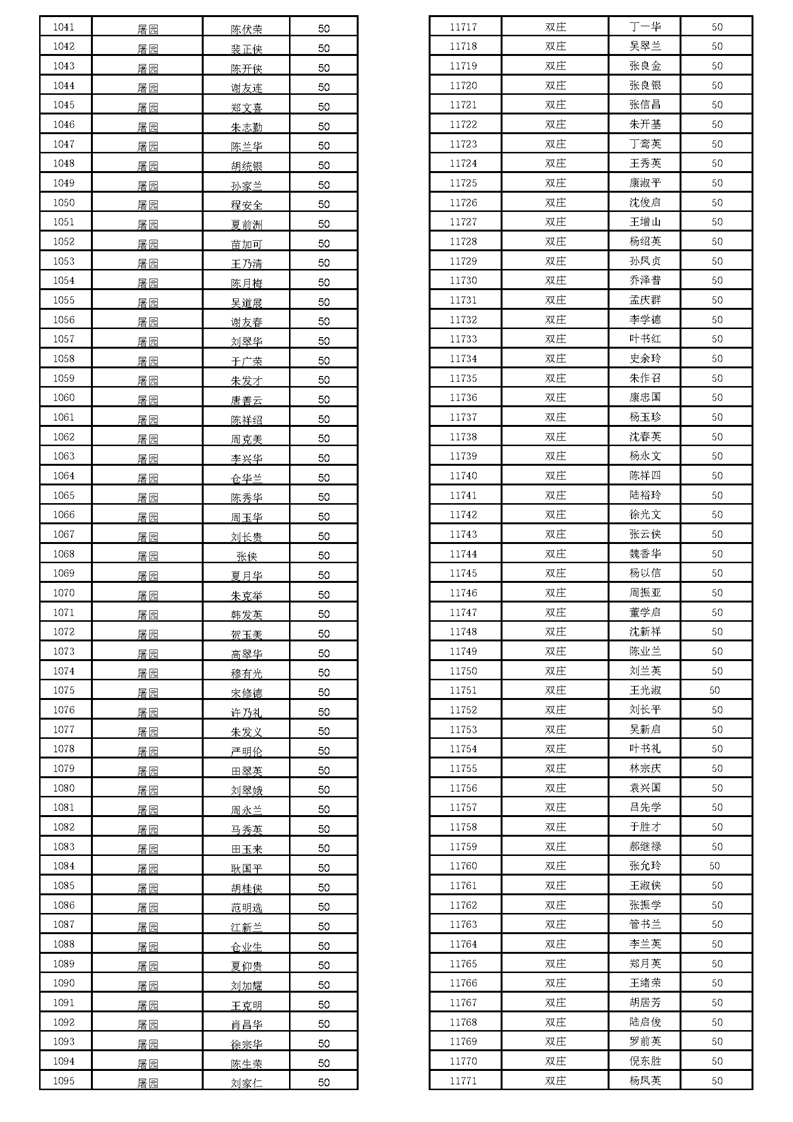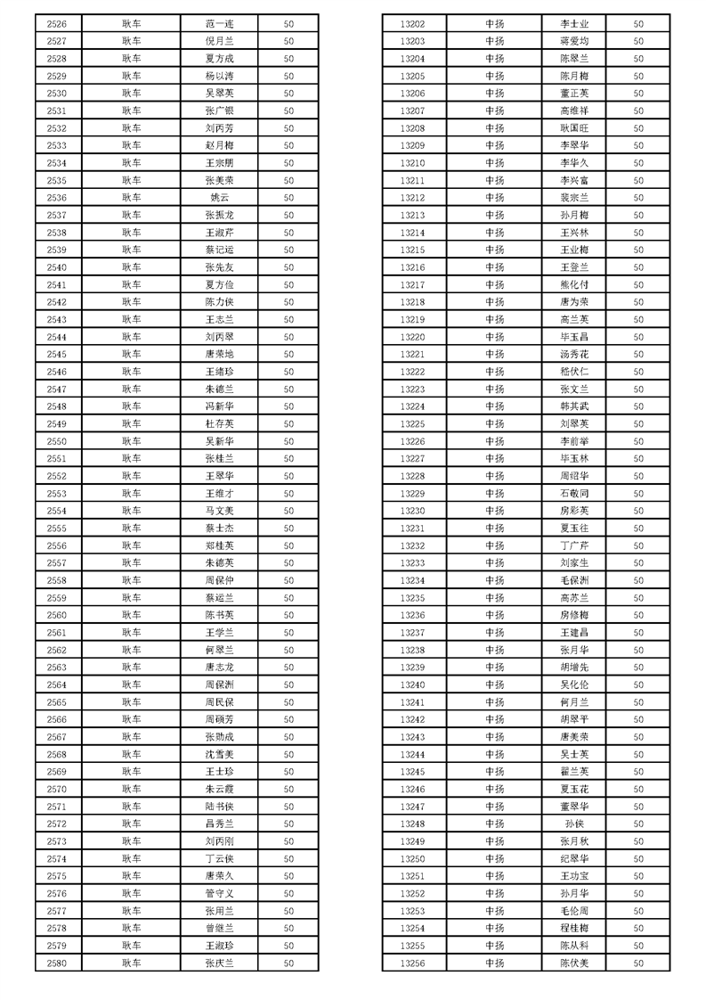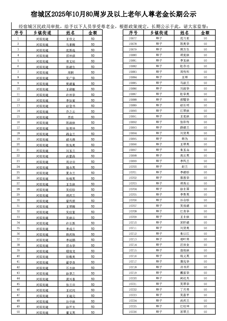 宿城區2025年10月80周歲及以上老年人尊老金長期公示
