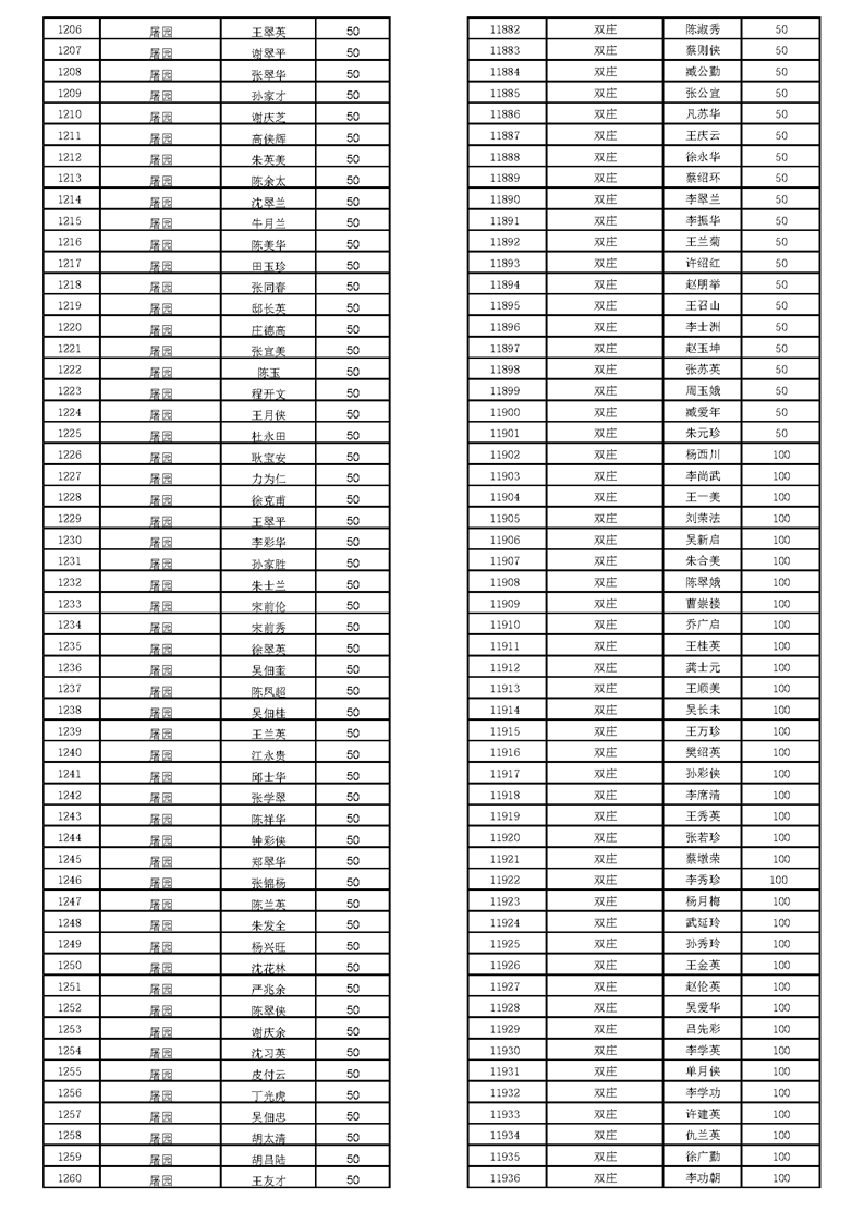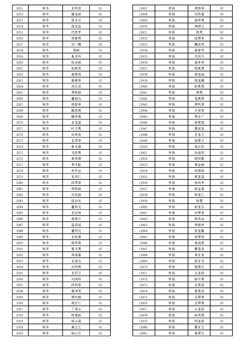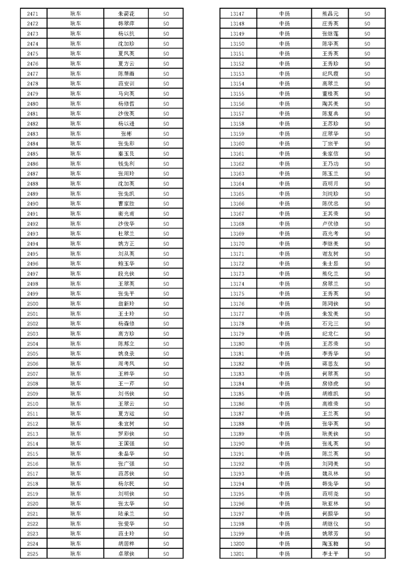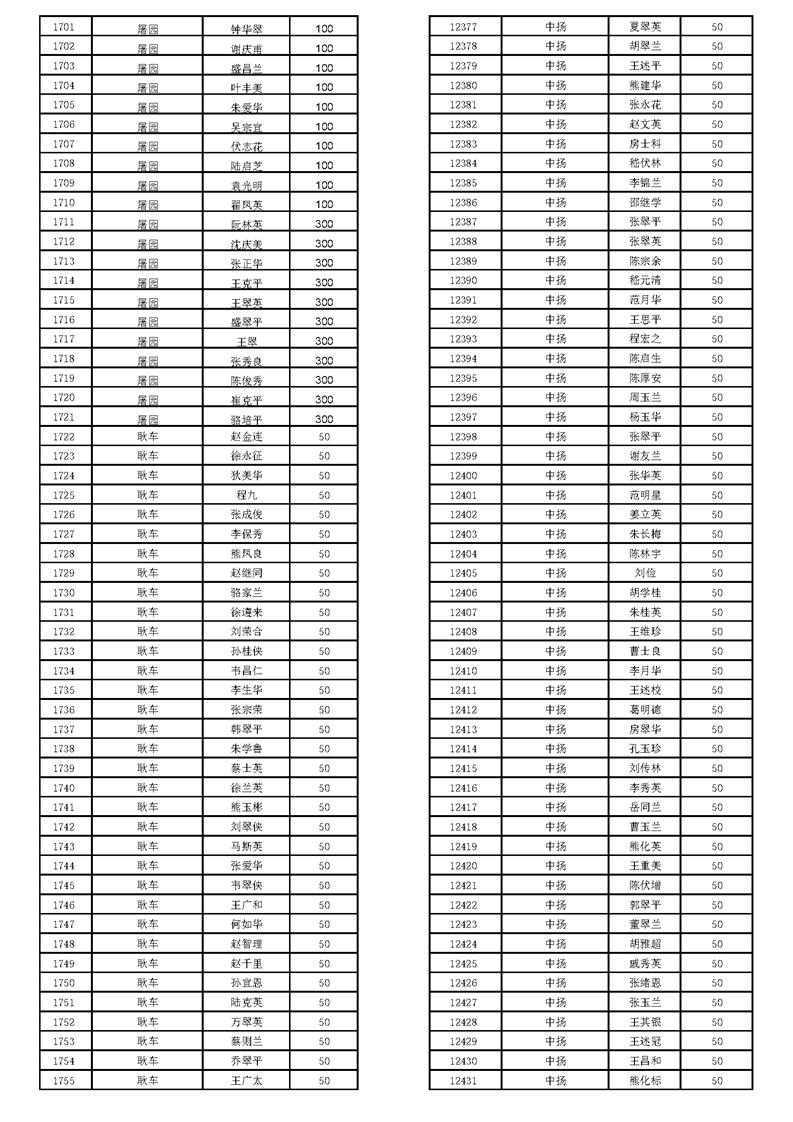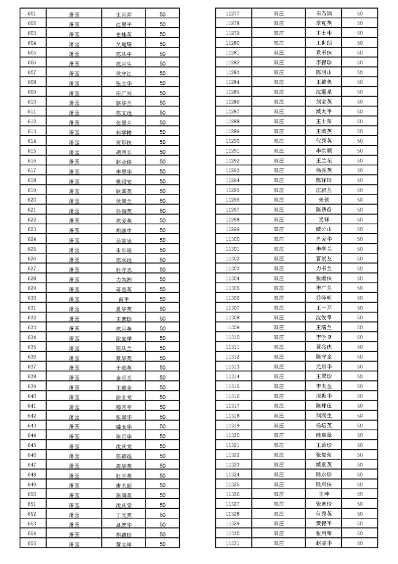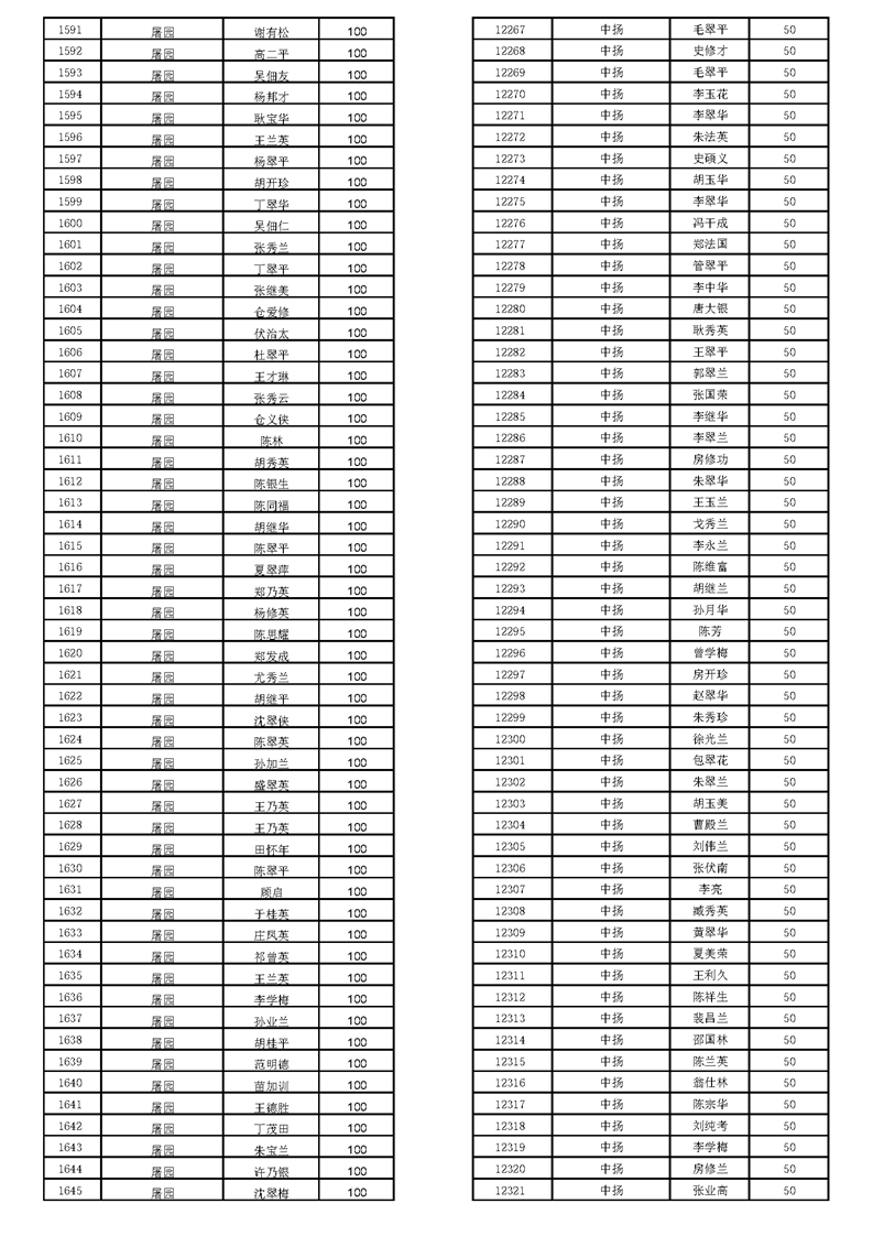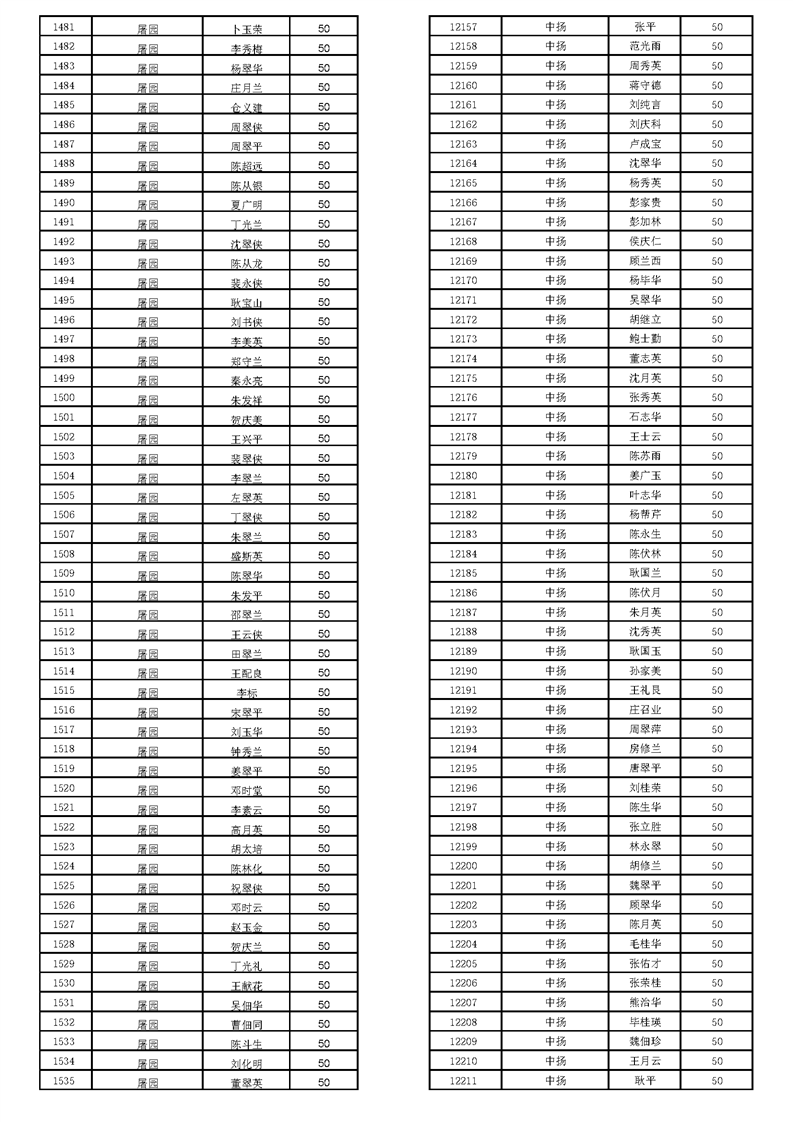 宿城區2025年10月80周歲及以上老年人尊老金長期公示