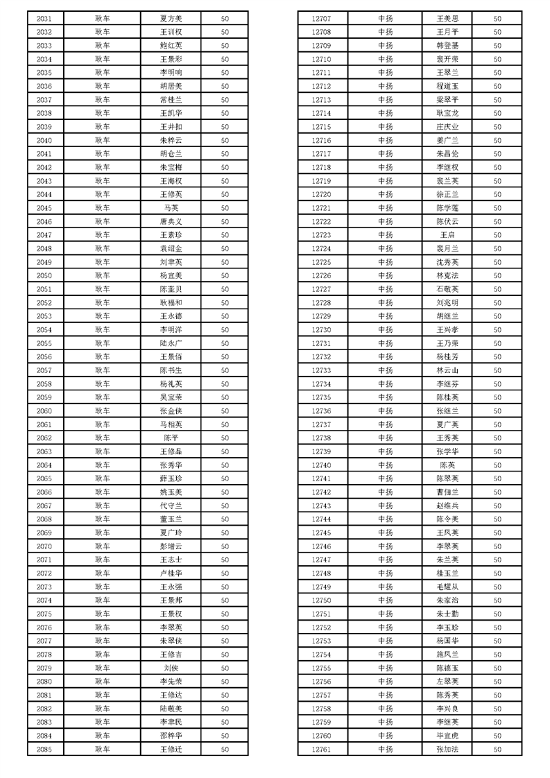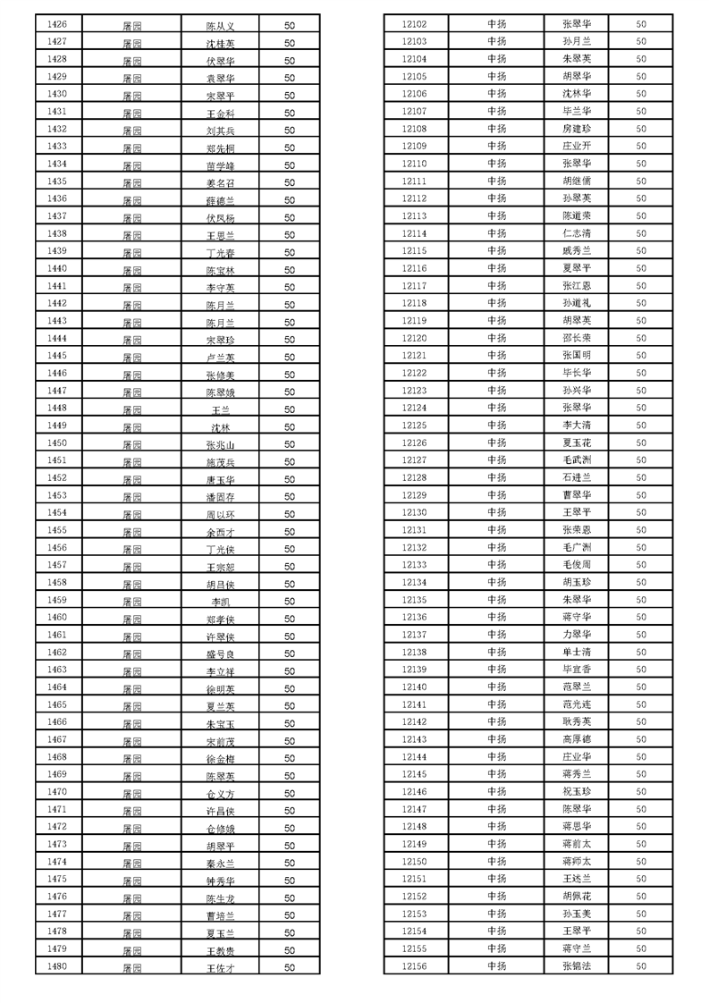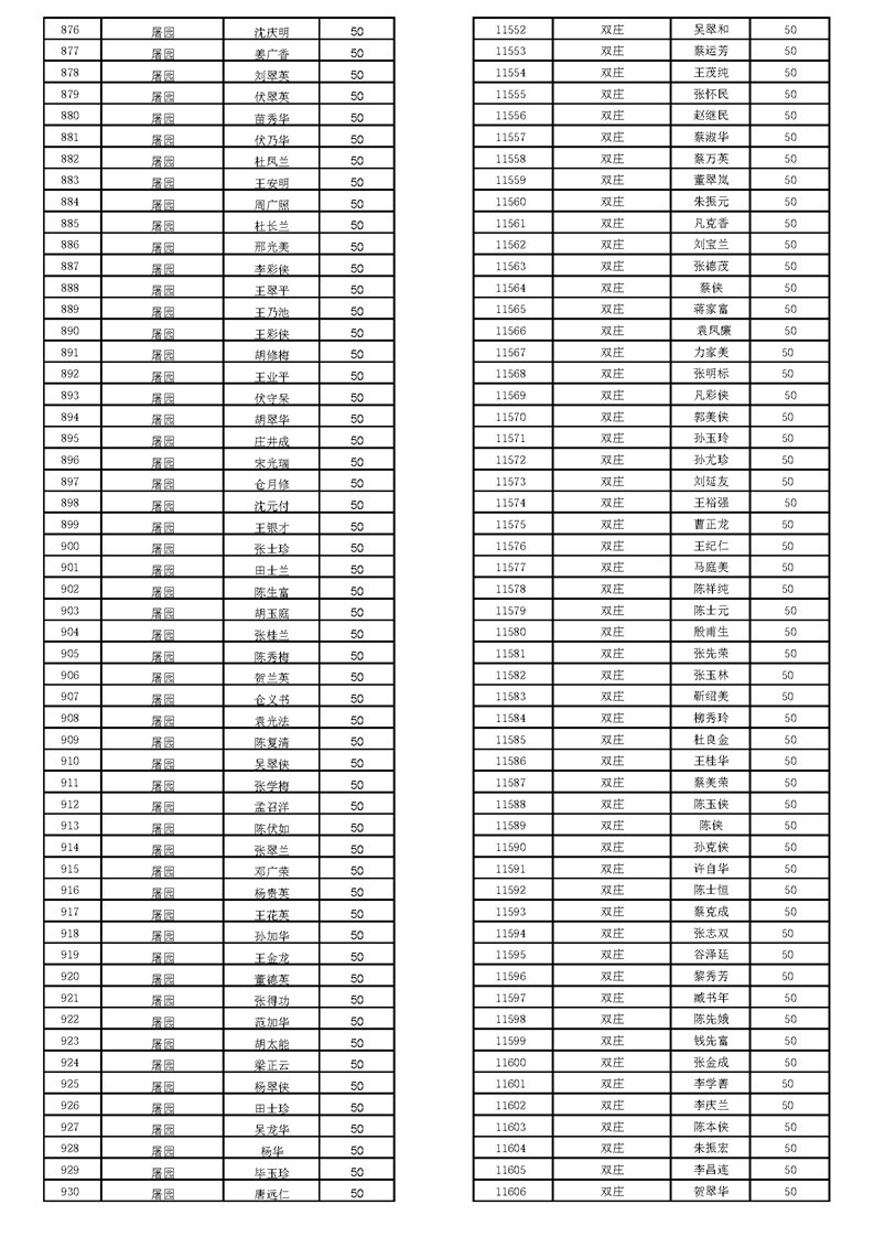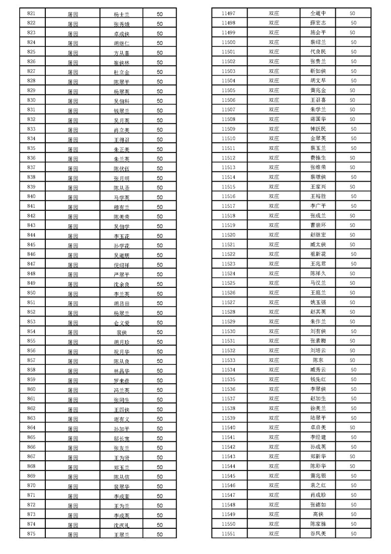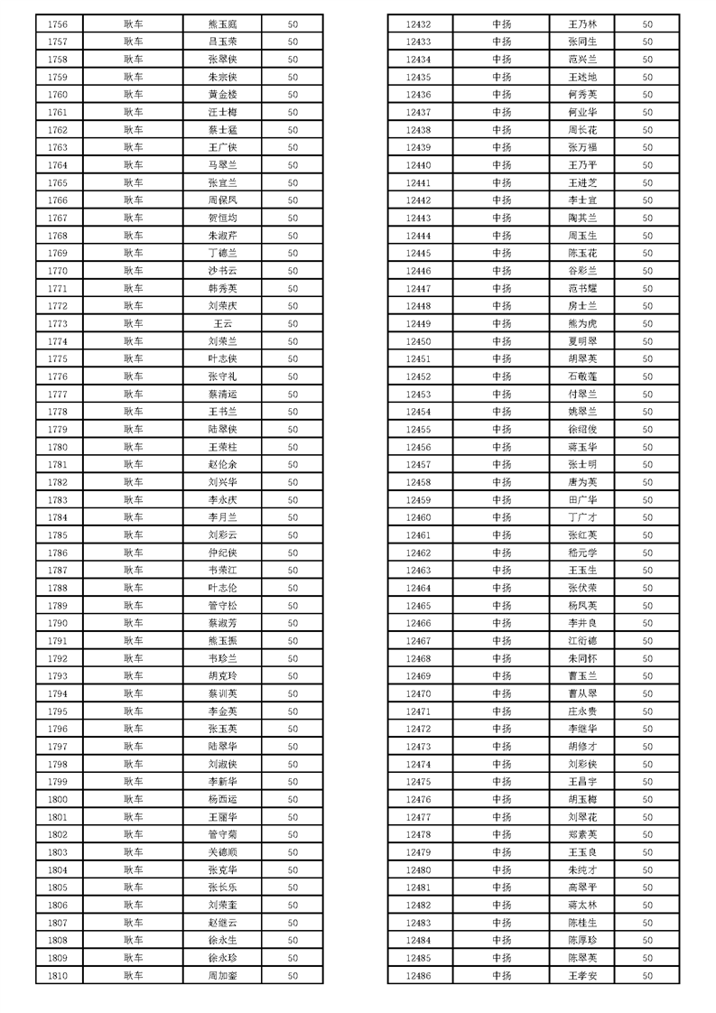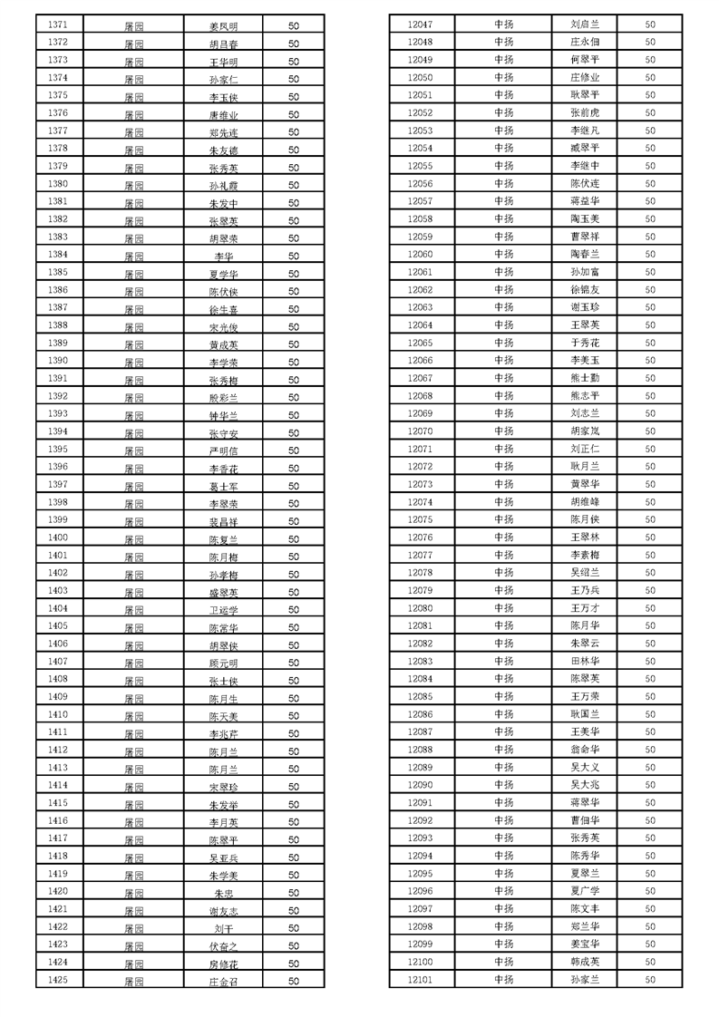 宿城區2025年10月80周歲及以上老年人尊老金長期公示