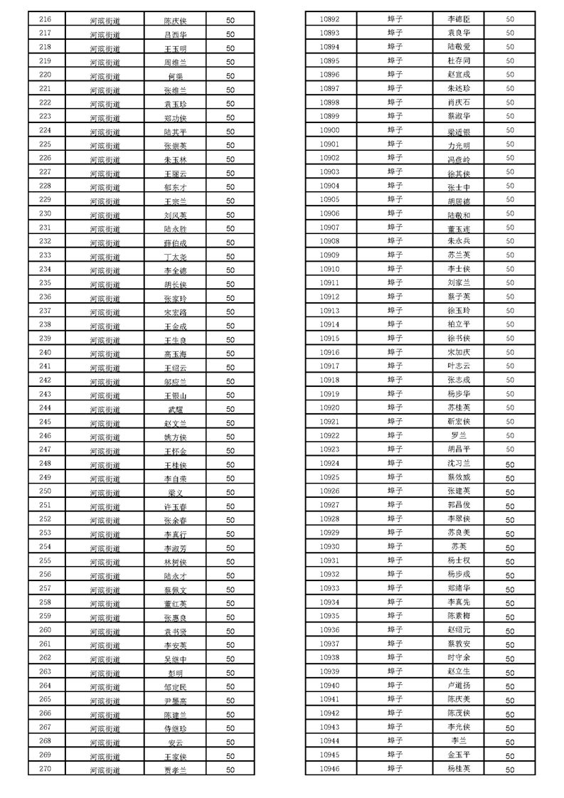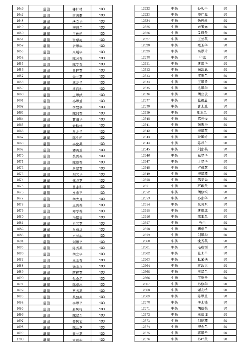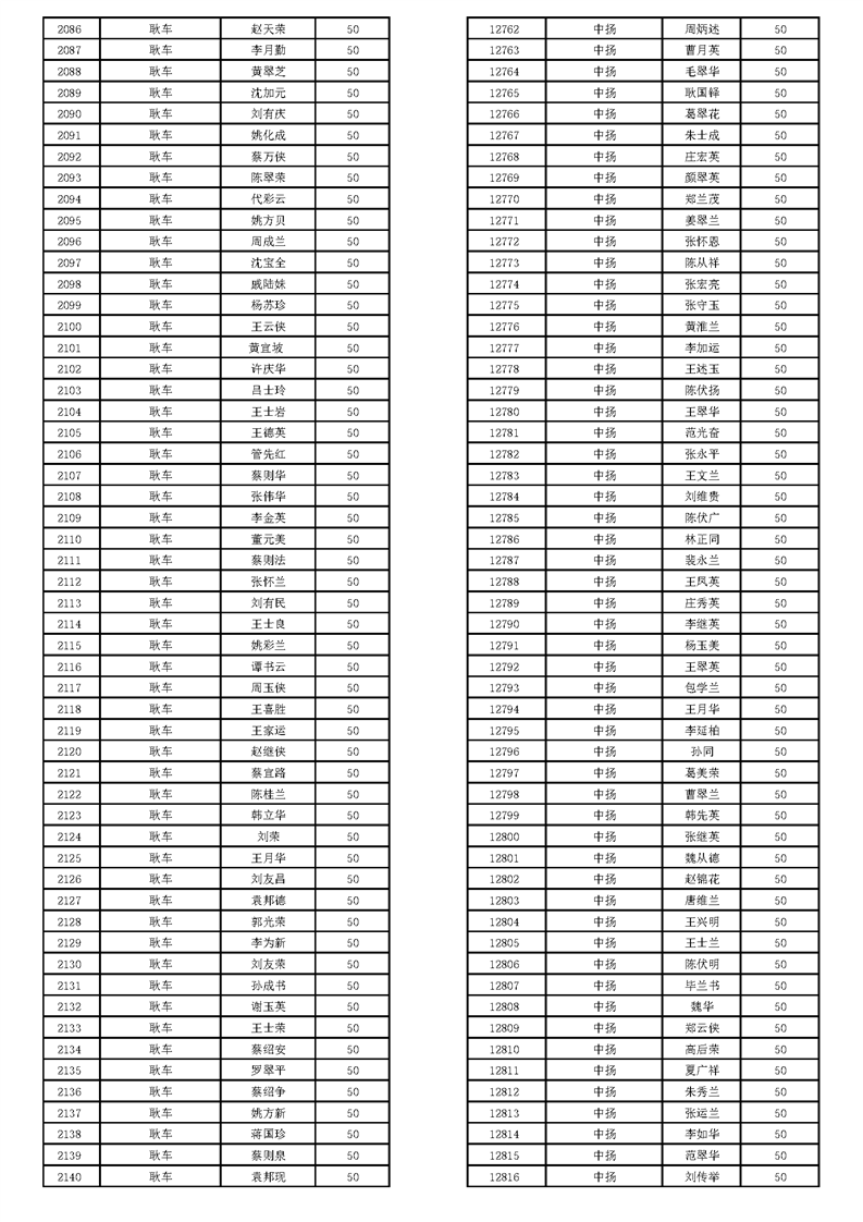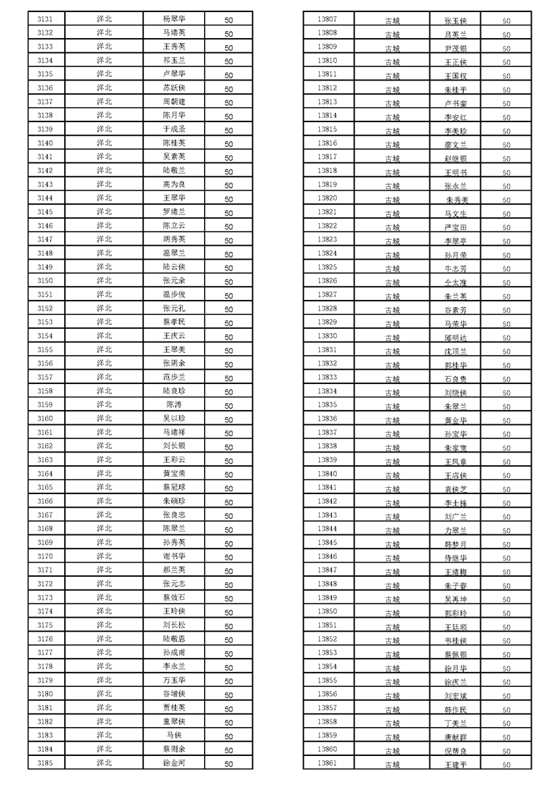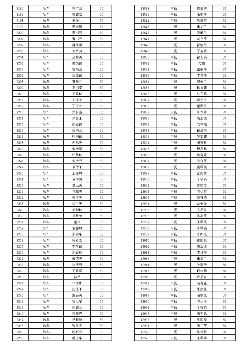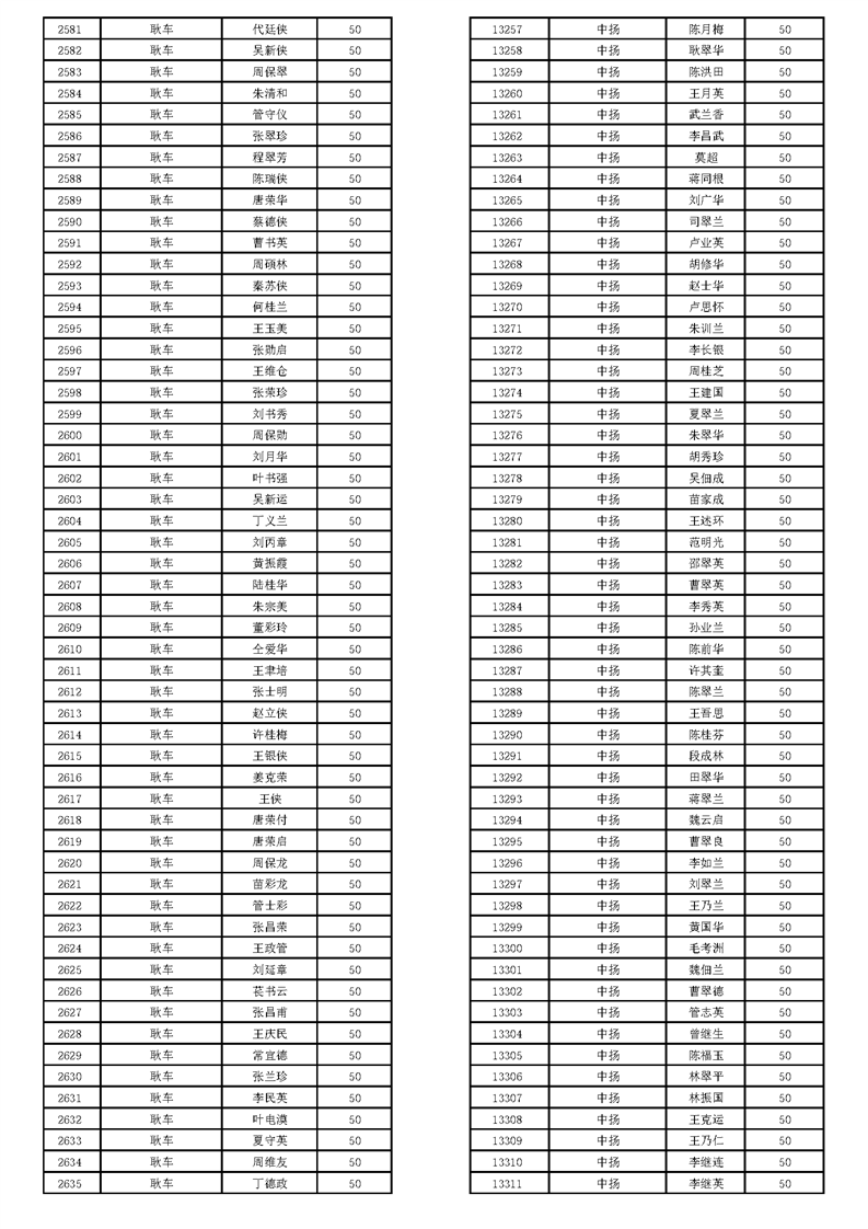 宿城區2025年10月80周歲及以上老年人尊老金長期公示