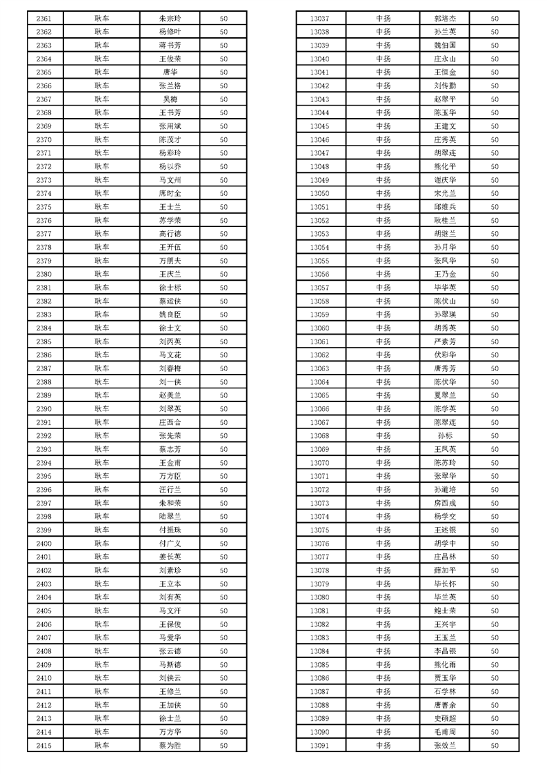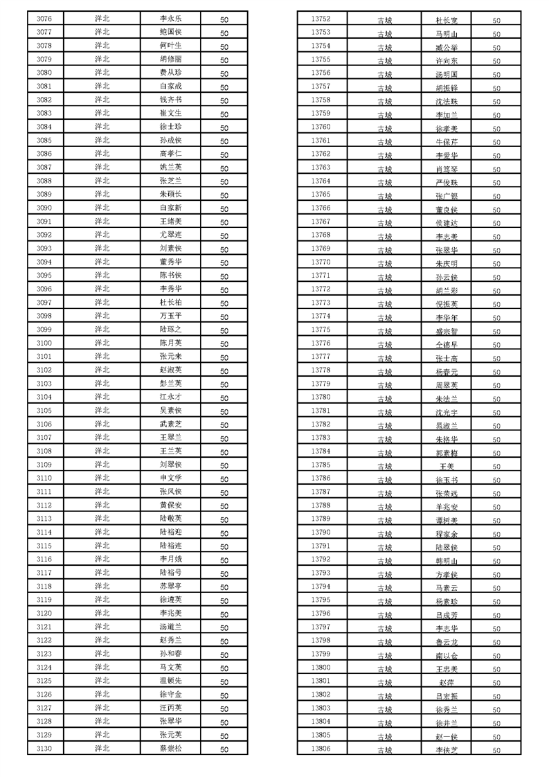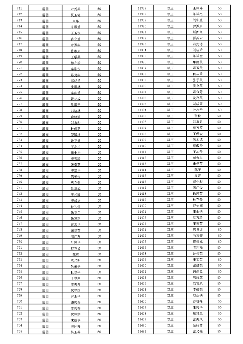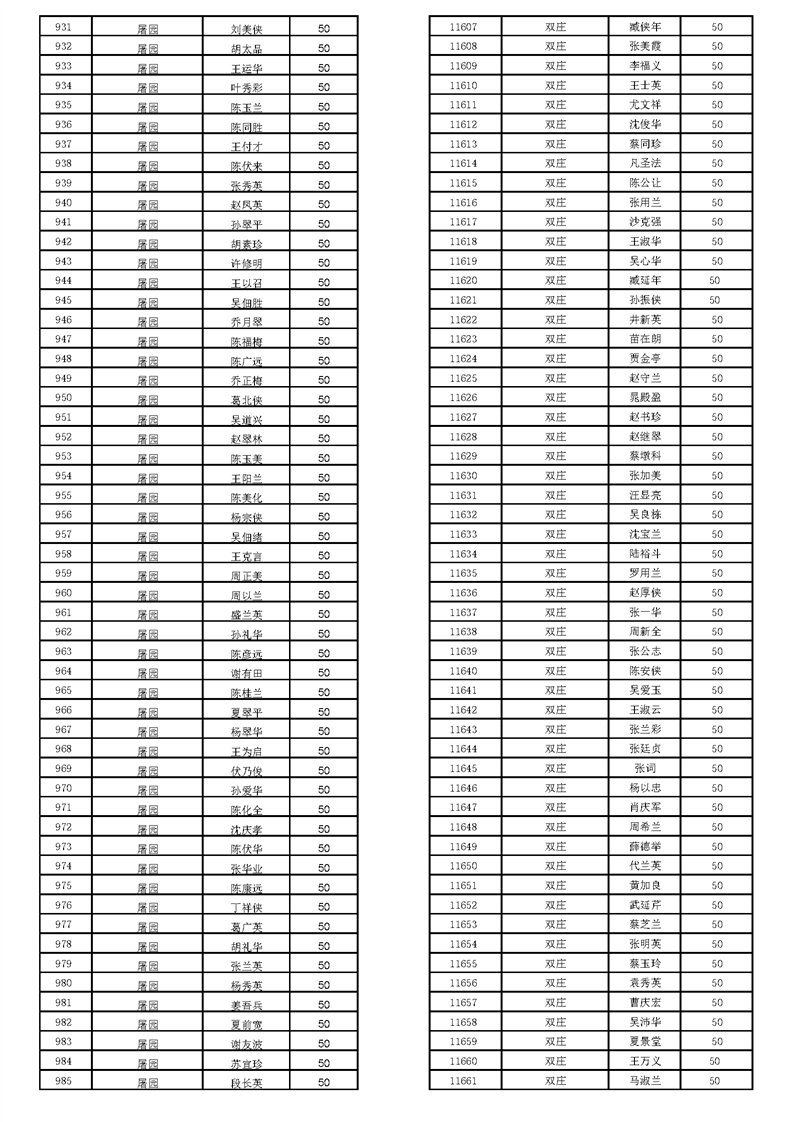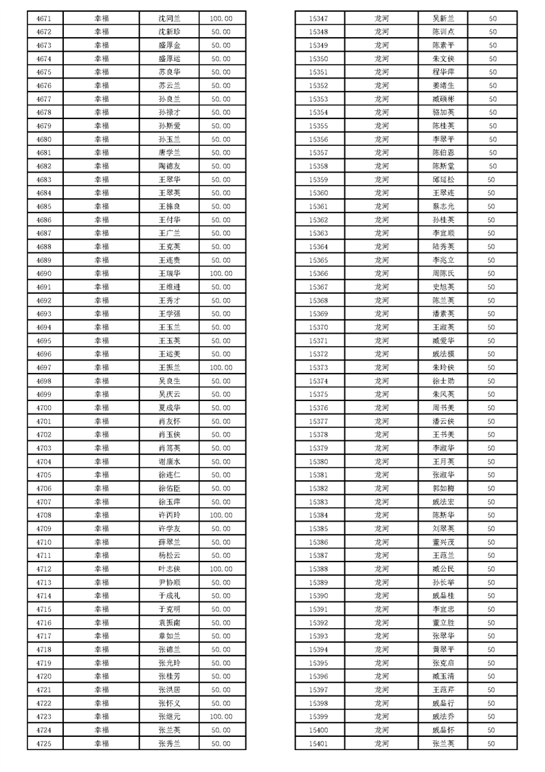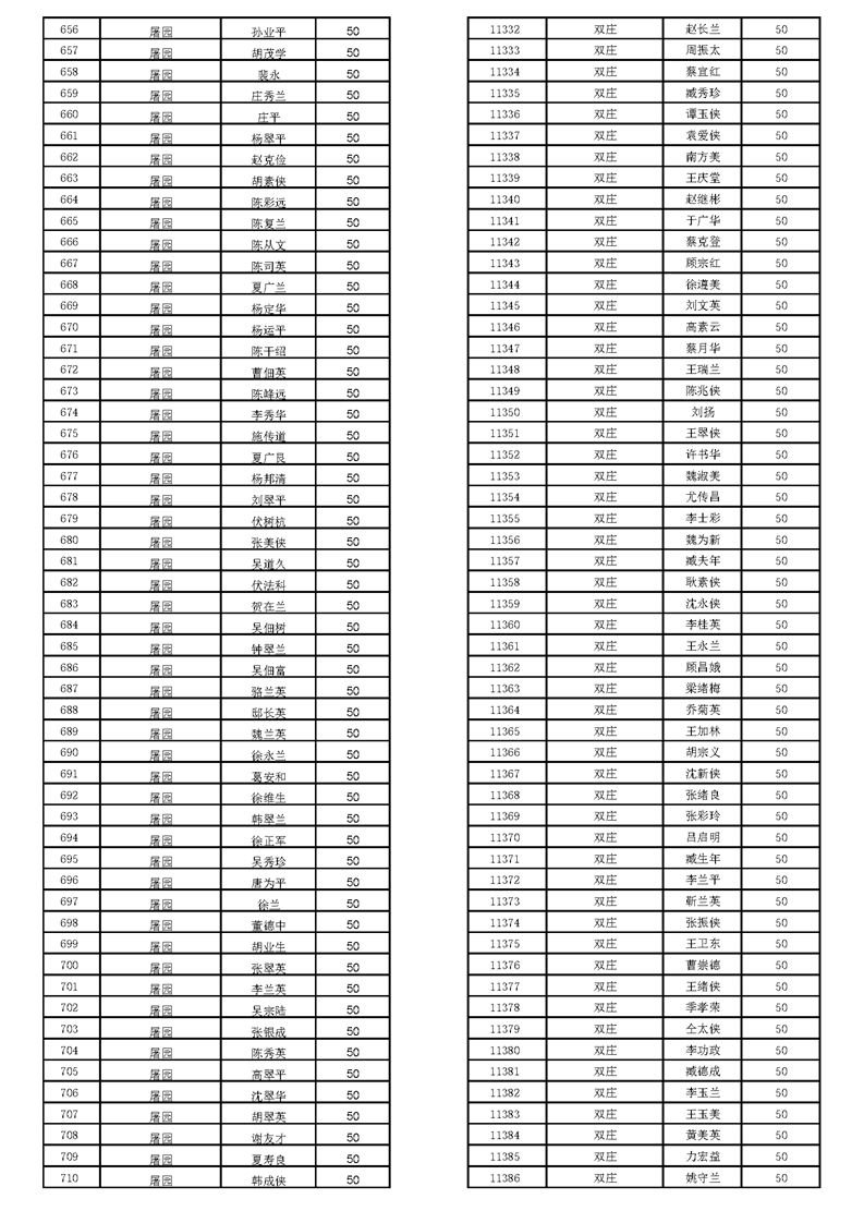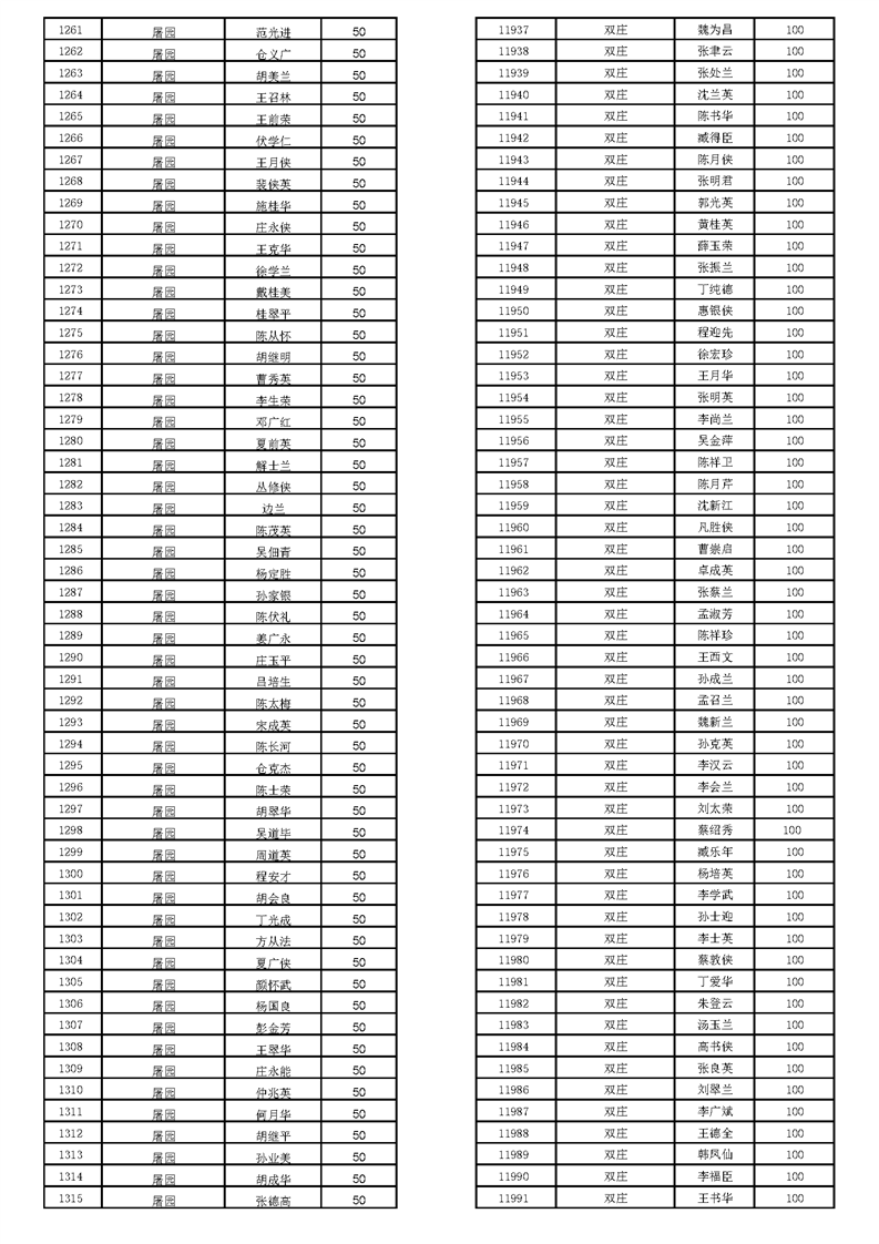 宿城區2025年10月80周歲及以上老年人尊老金長期公示