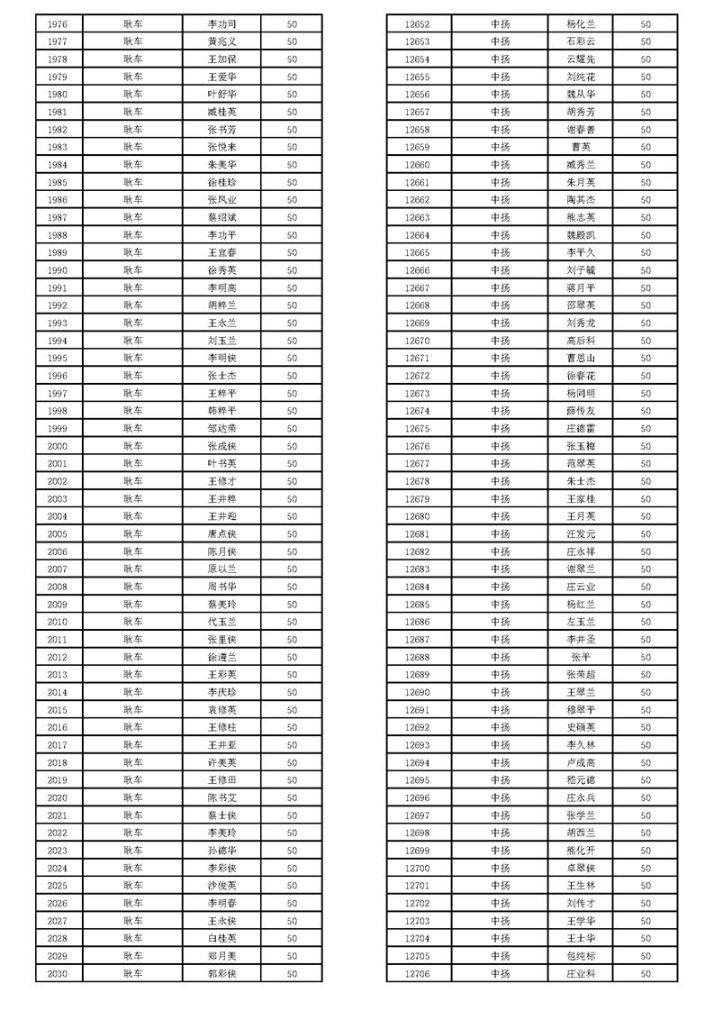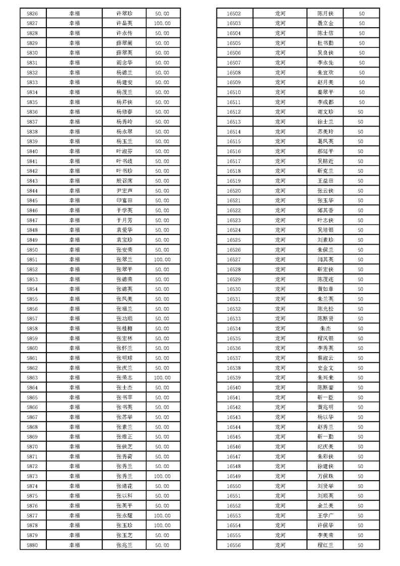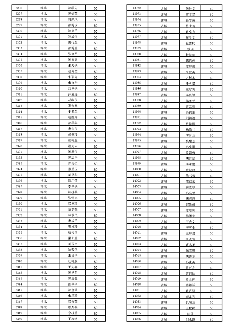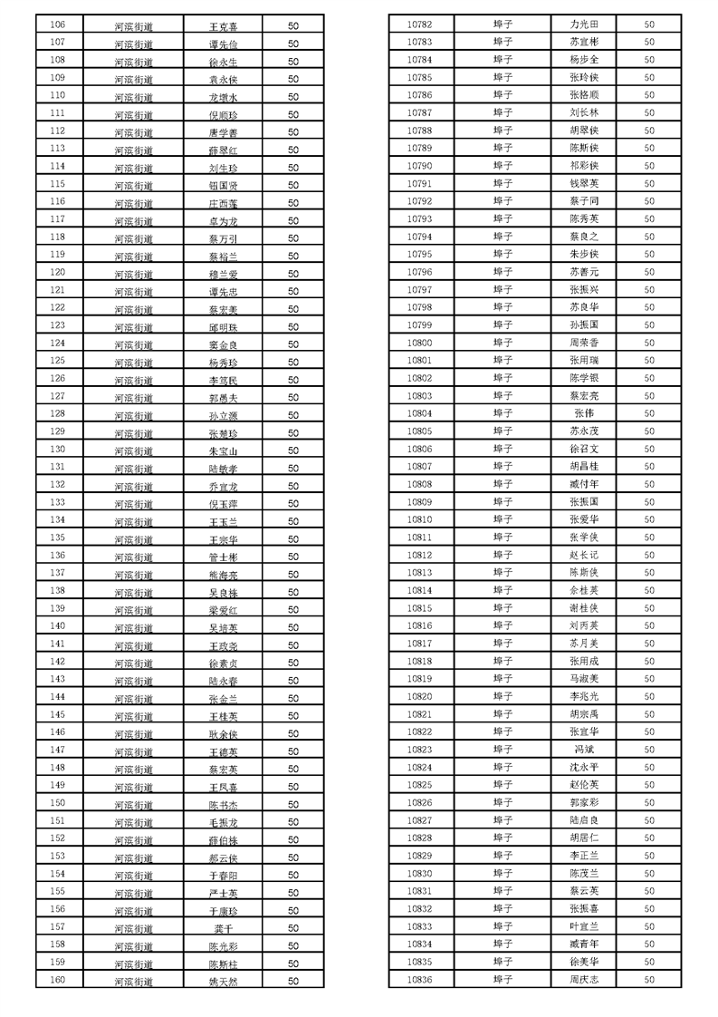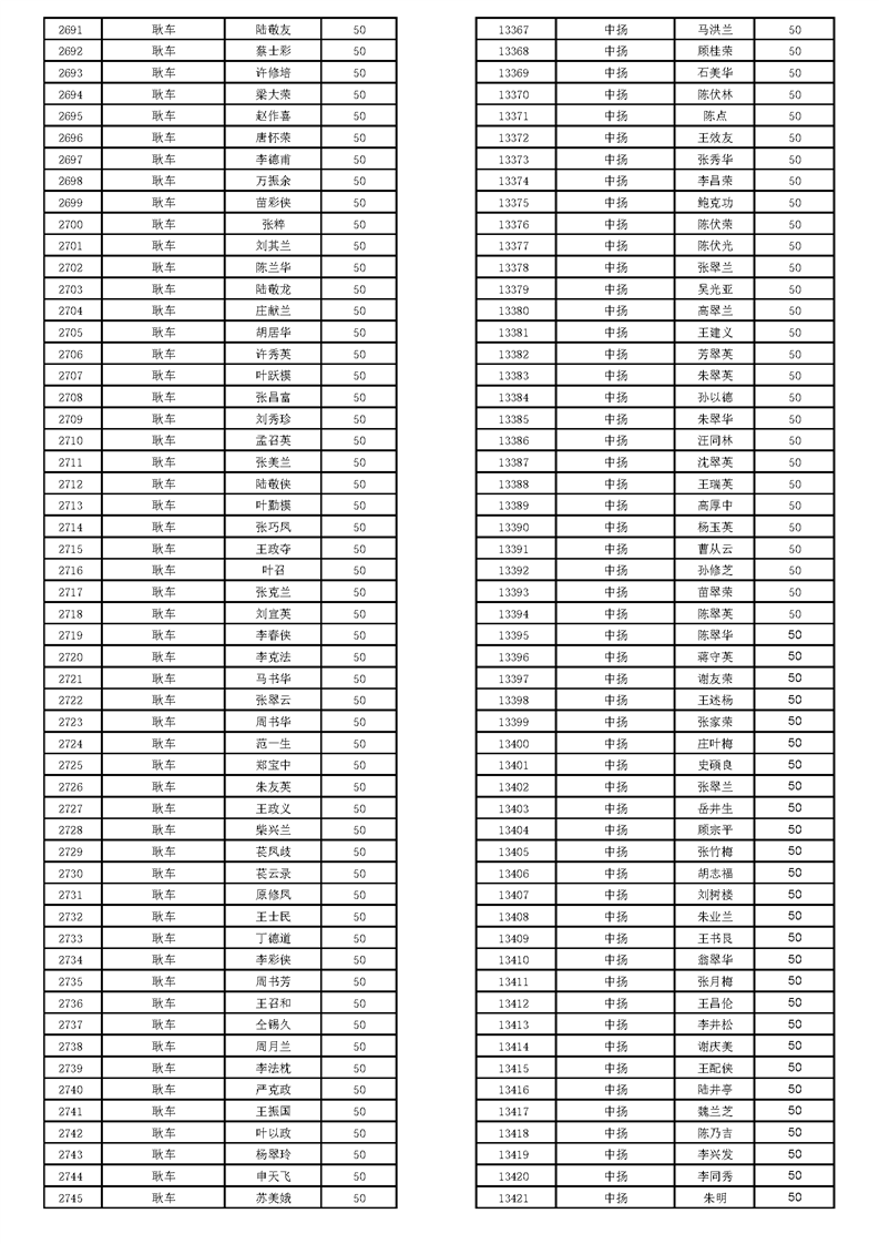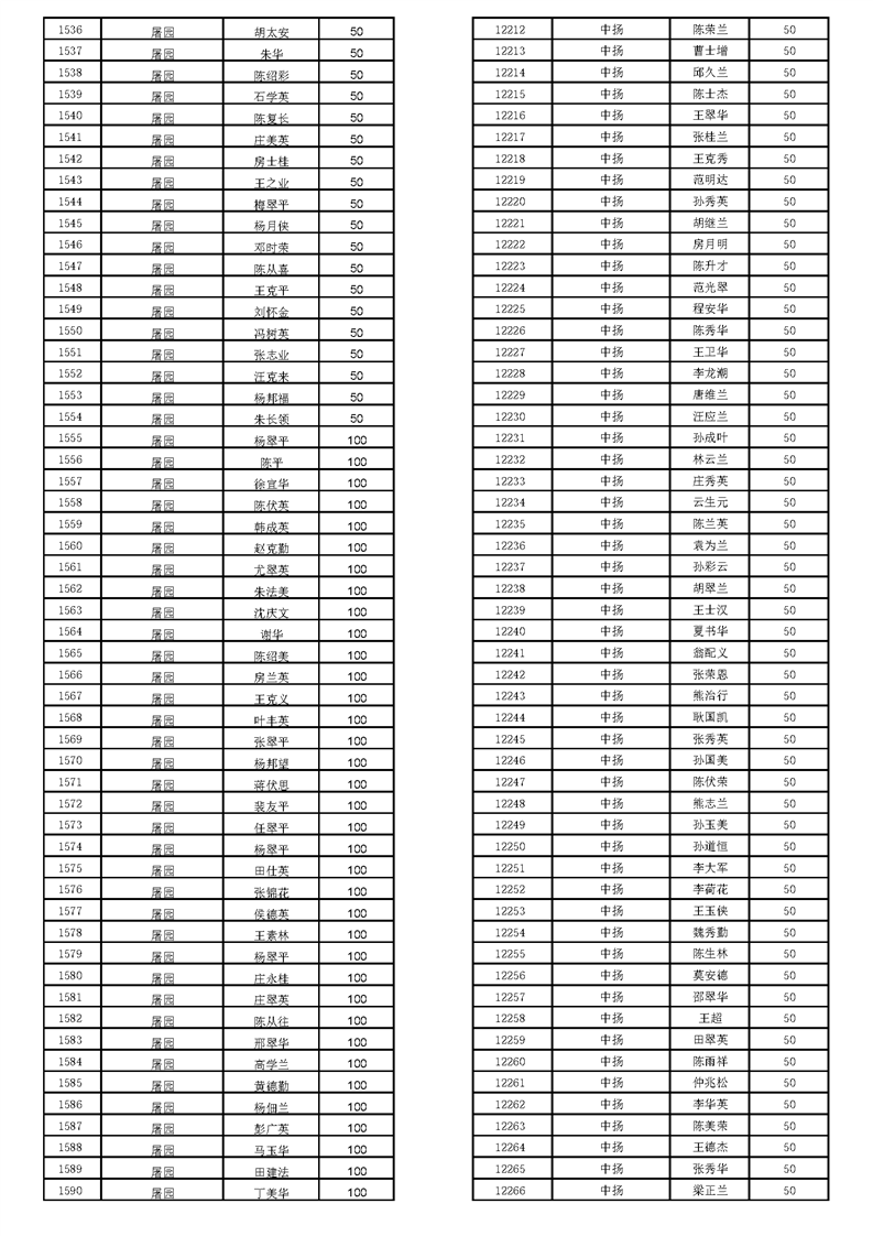 宿城區2025年10月80周歲及以上老年人尊老金長期公示