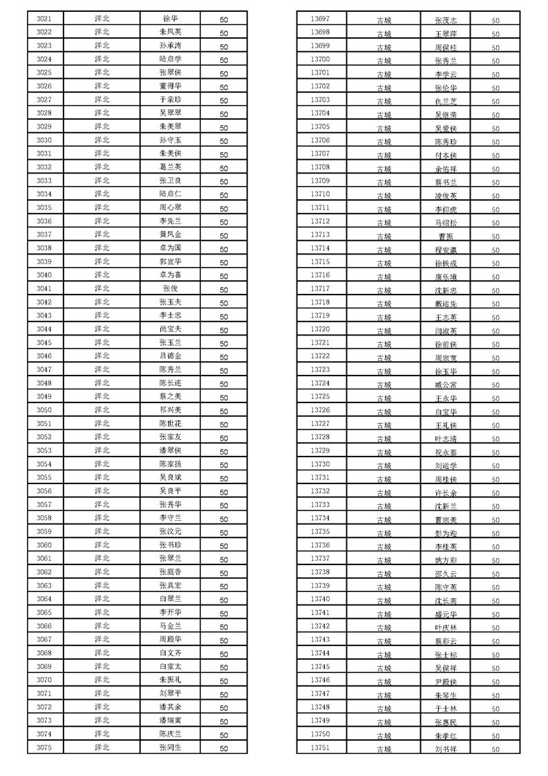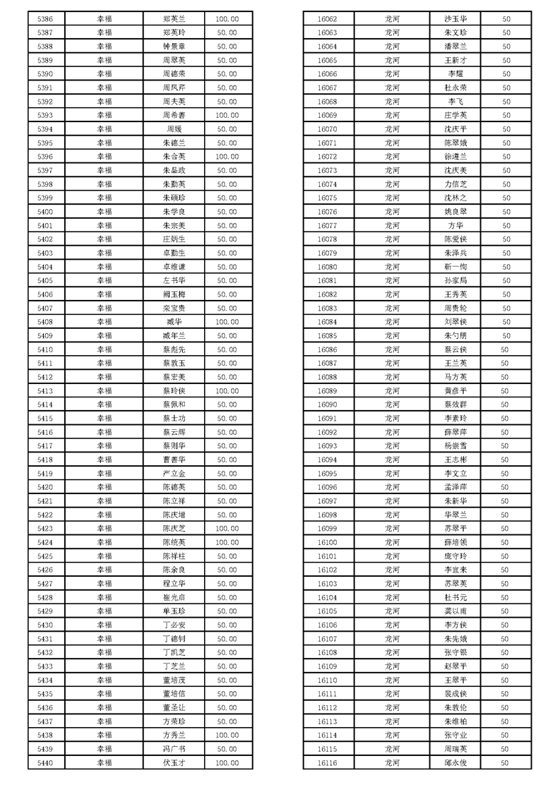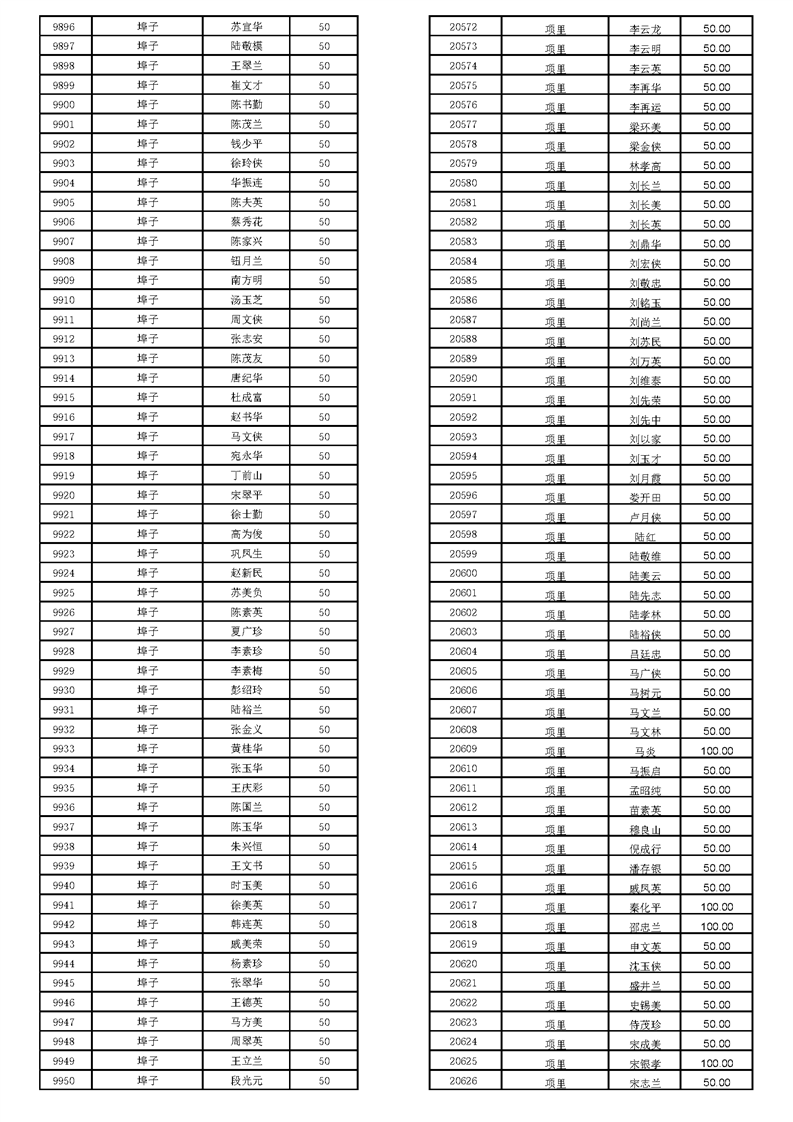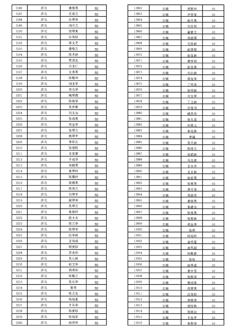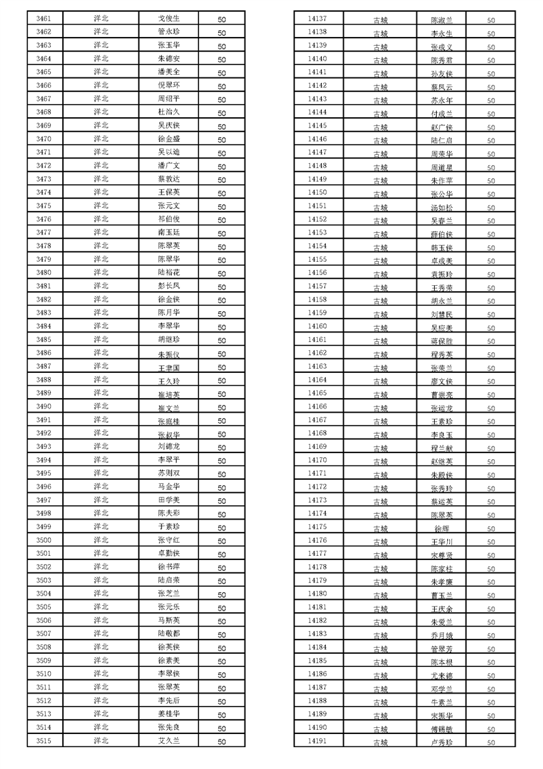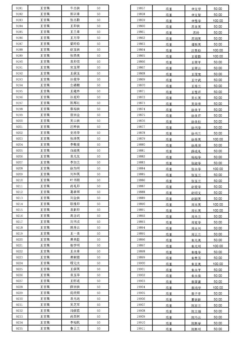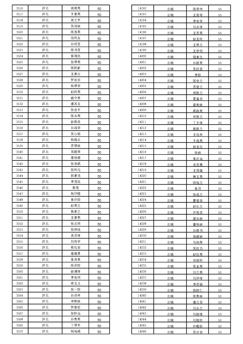 宿城區2025年10月80周歲及以上老年人尊老金長期公示