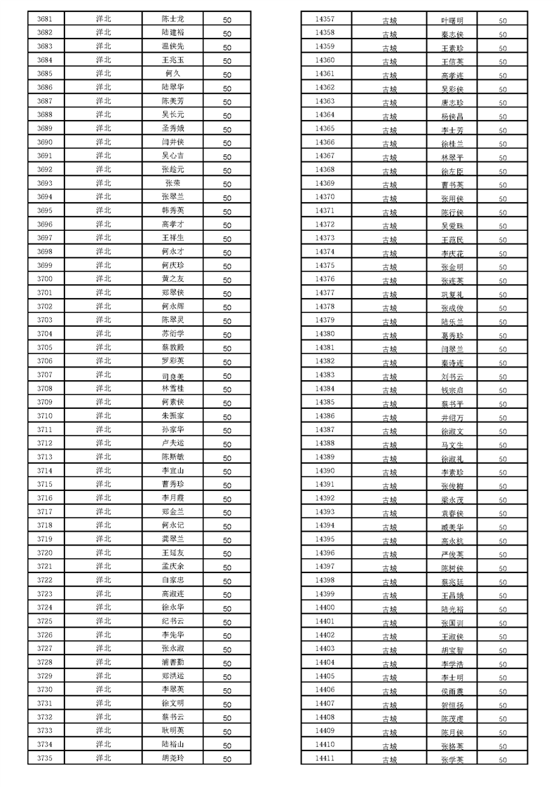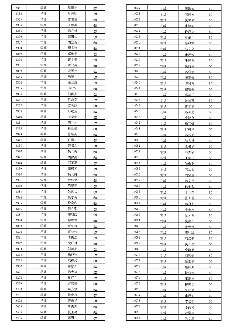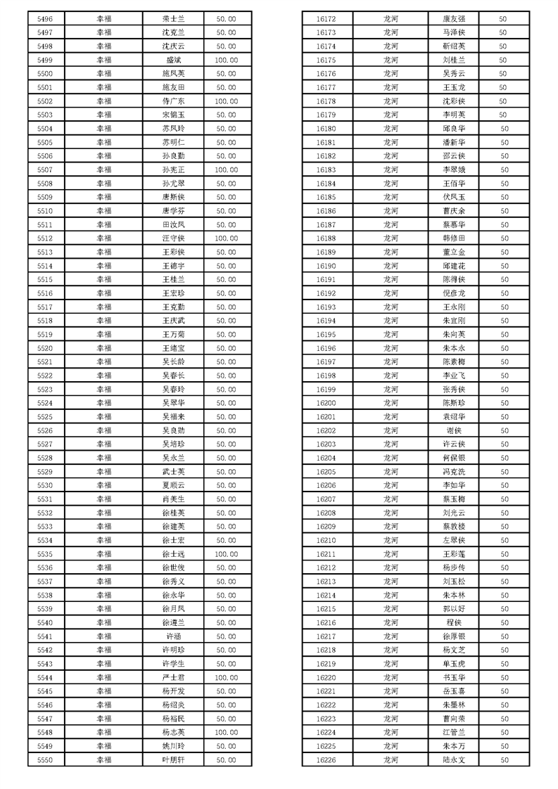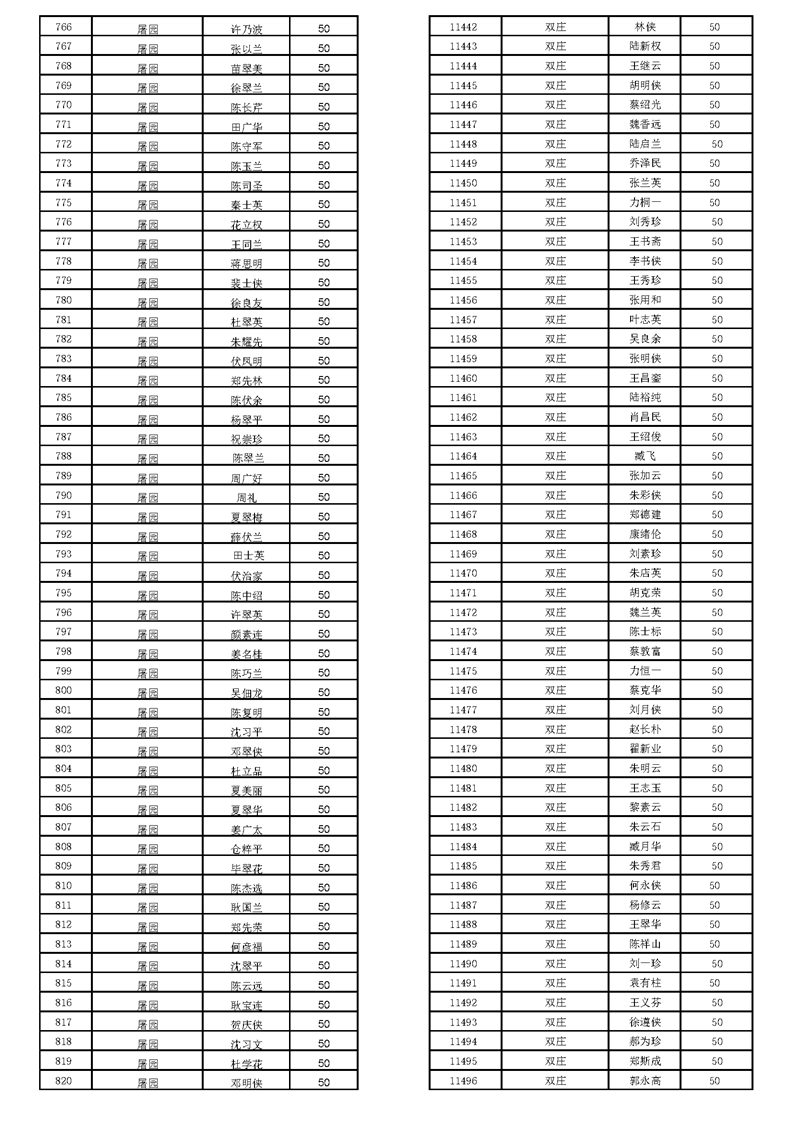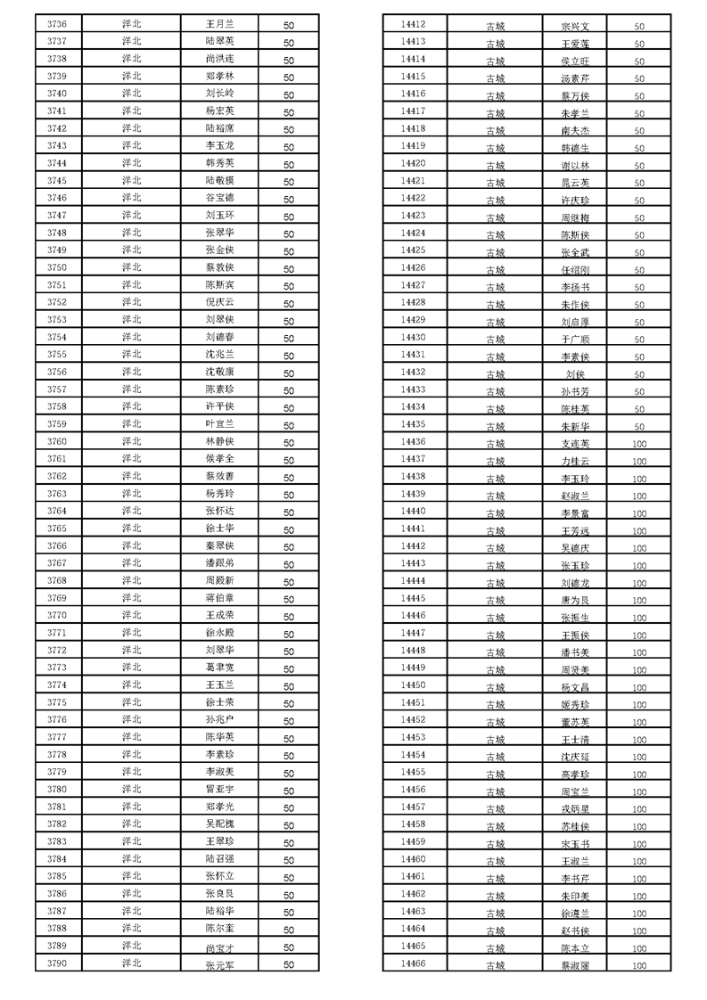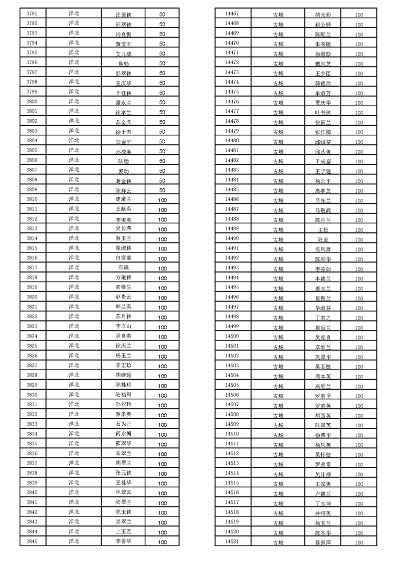 宿城區2025年10月80周歲及以上老年人尊老金長期公示