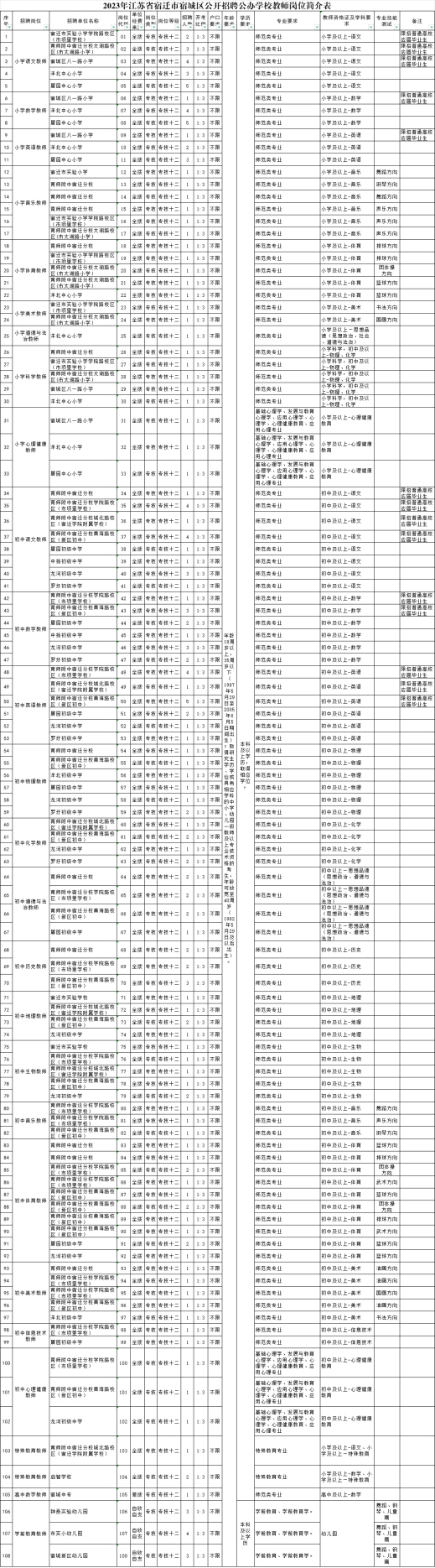 2024年江蘇省宿遷市宿城區(qū)第二批公開(kāi)招聘公辦學(xué)校教師崗位簡(jiǎn)介表