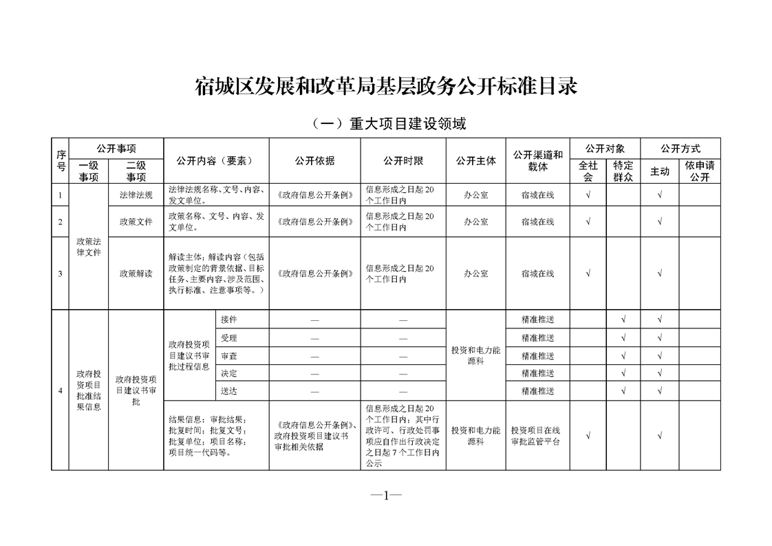 宿城區發展和改革局基層政務公開標準目錄2024版(重大項目建設領域)
