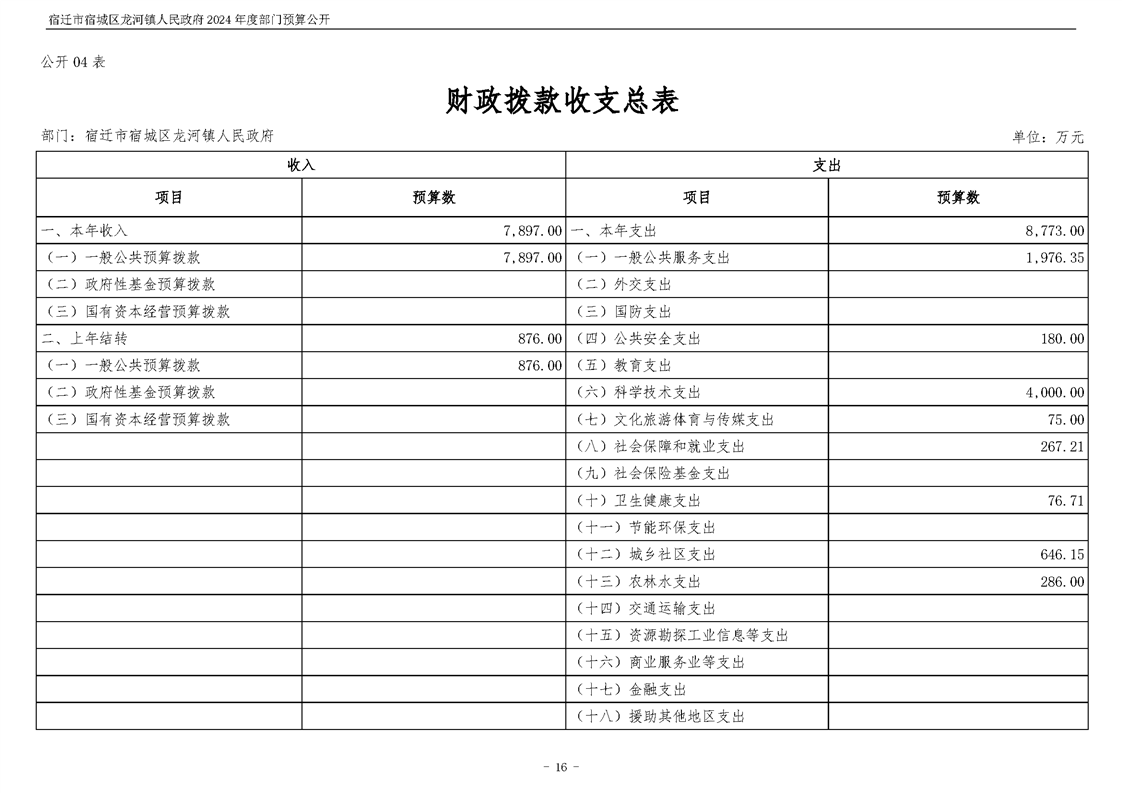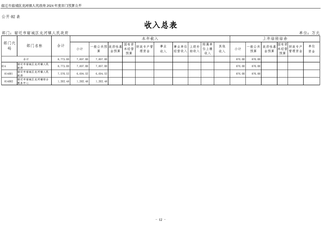 宿遷市宿城區(qū)龍河鎮(zhèn)人民政府2024年度部門預(yù)算公開