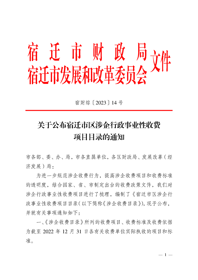關于轉發(fā)《宿遷市區(qū)涉企行政事業(yè)性收費項目目錄》的通知