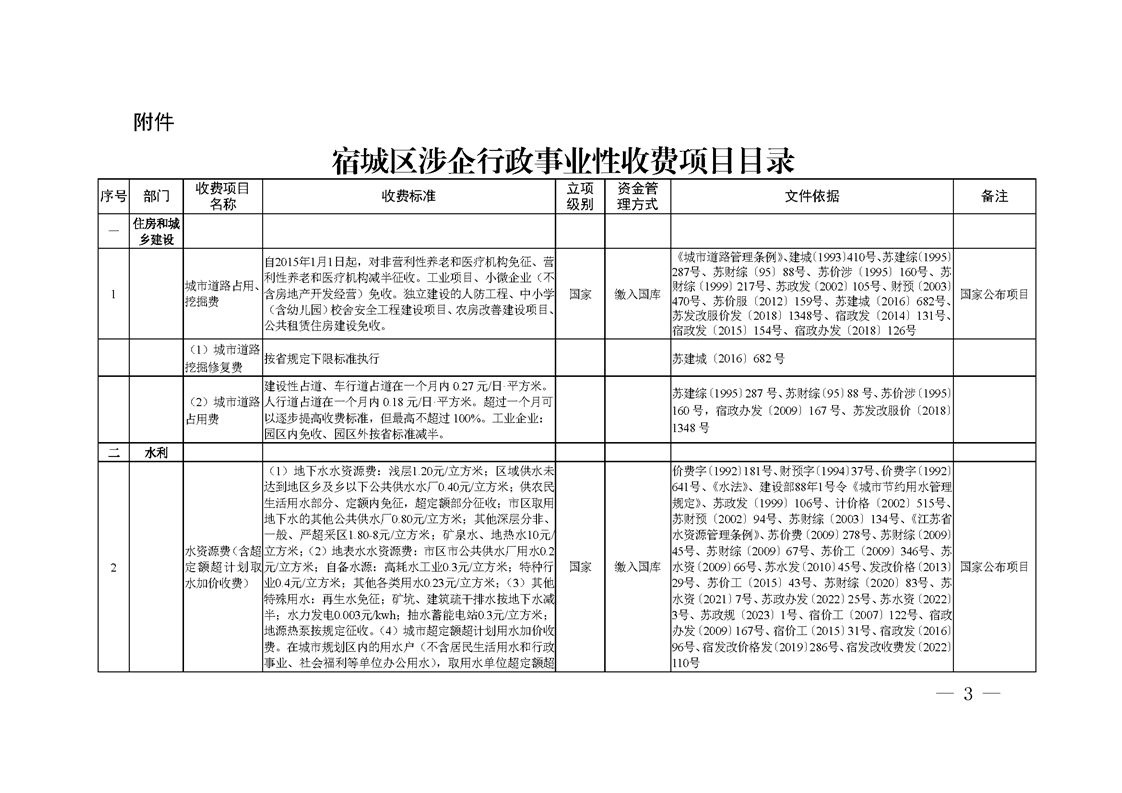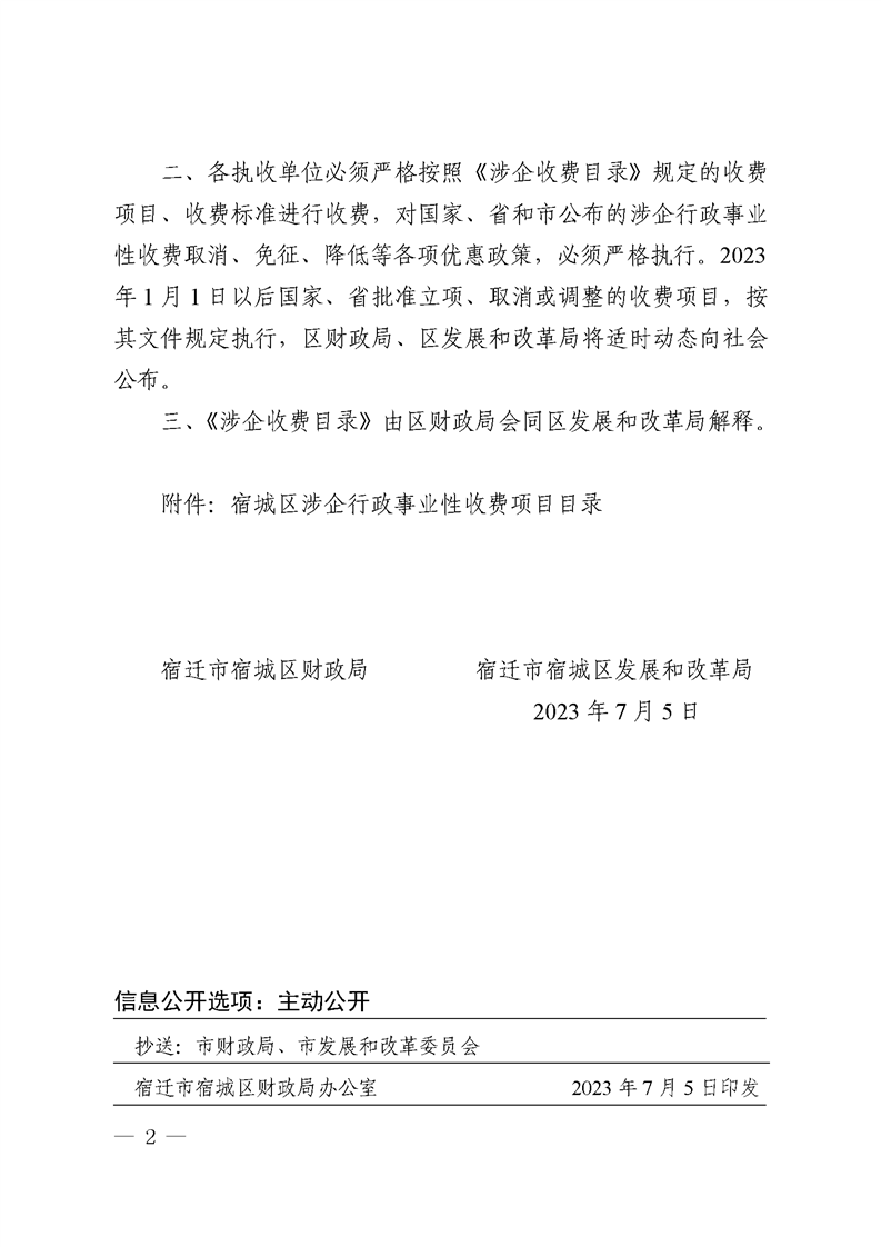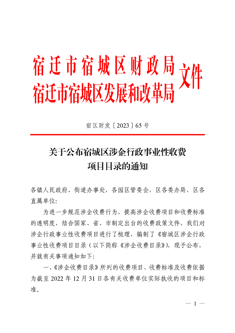 關于公布宿城區涉企行政事業性收費項目目錄的通知