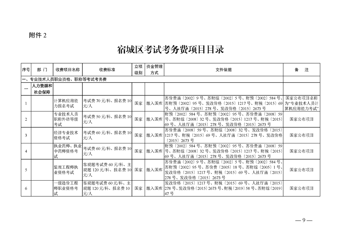 名稱(chēng) 關(guān)于公布宿城區(qū)行政事業(yè)性收費(fèi)項(xiàng)目目錄的通知
