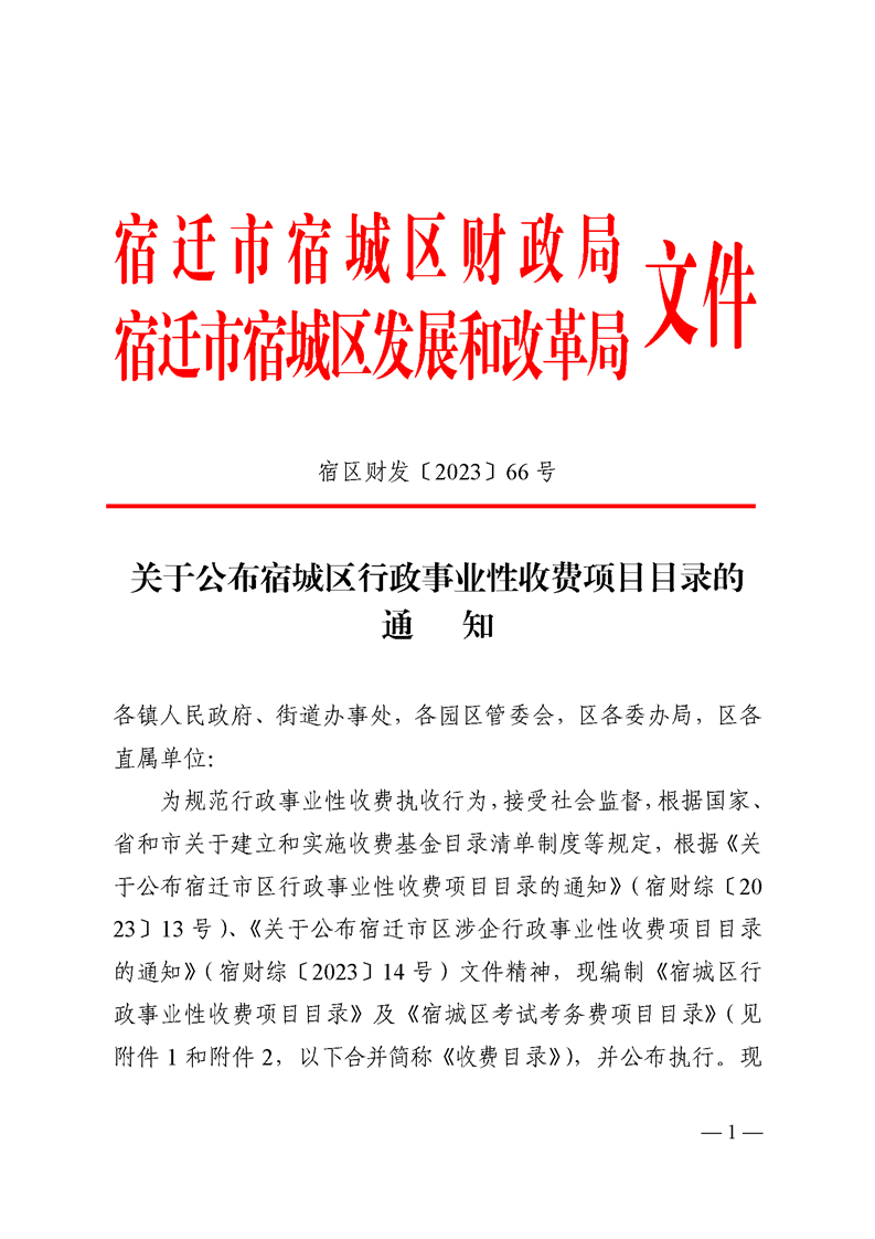關(guān)于公布宿城區(qū)行政事業(yè)性收費(fèi)項(xiàng)目目錄的通知