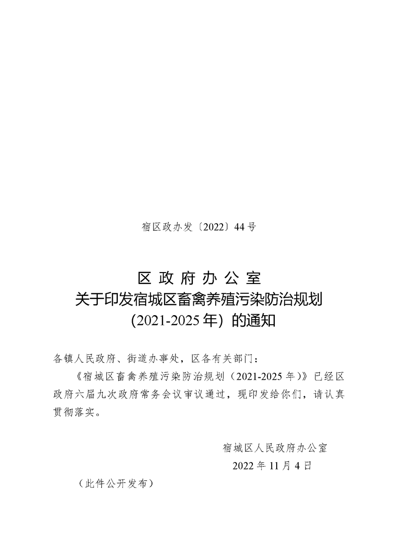 區政府辦公室關于印發宿城區畜禽養殖污染防治規劃(2021-2025年)的通知